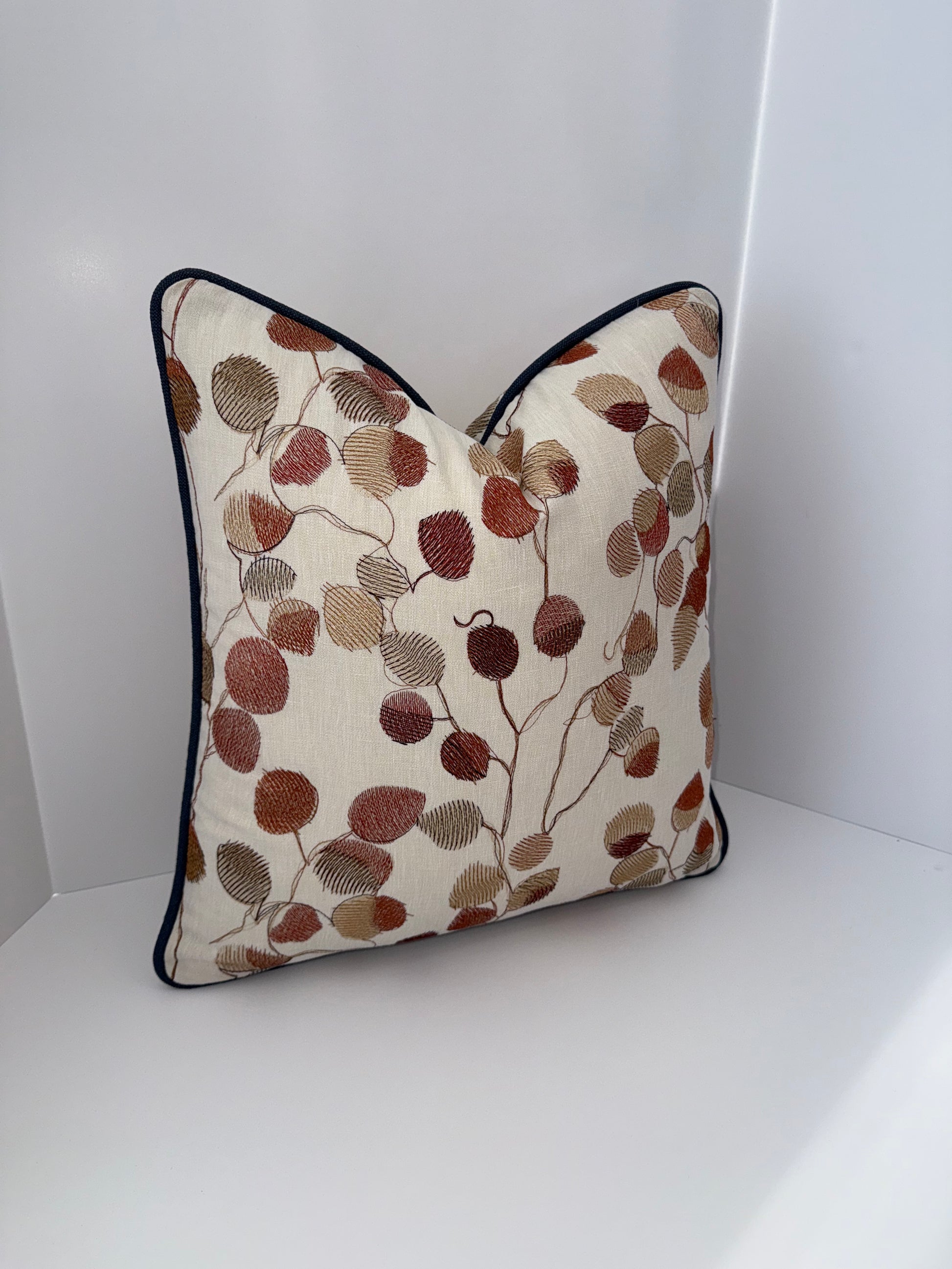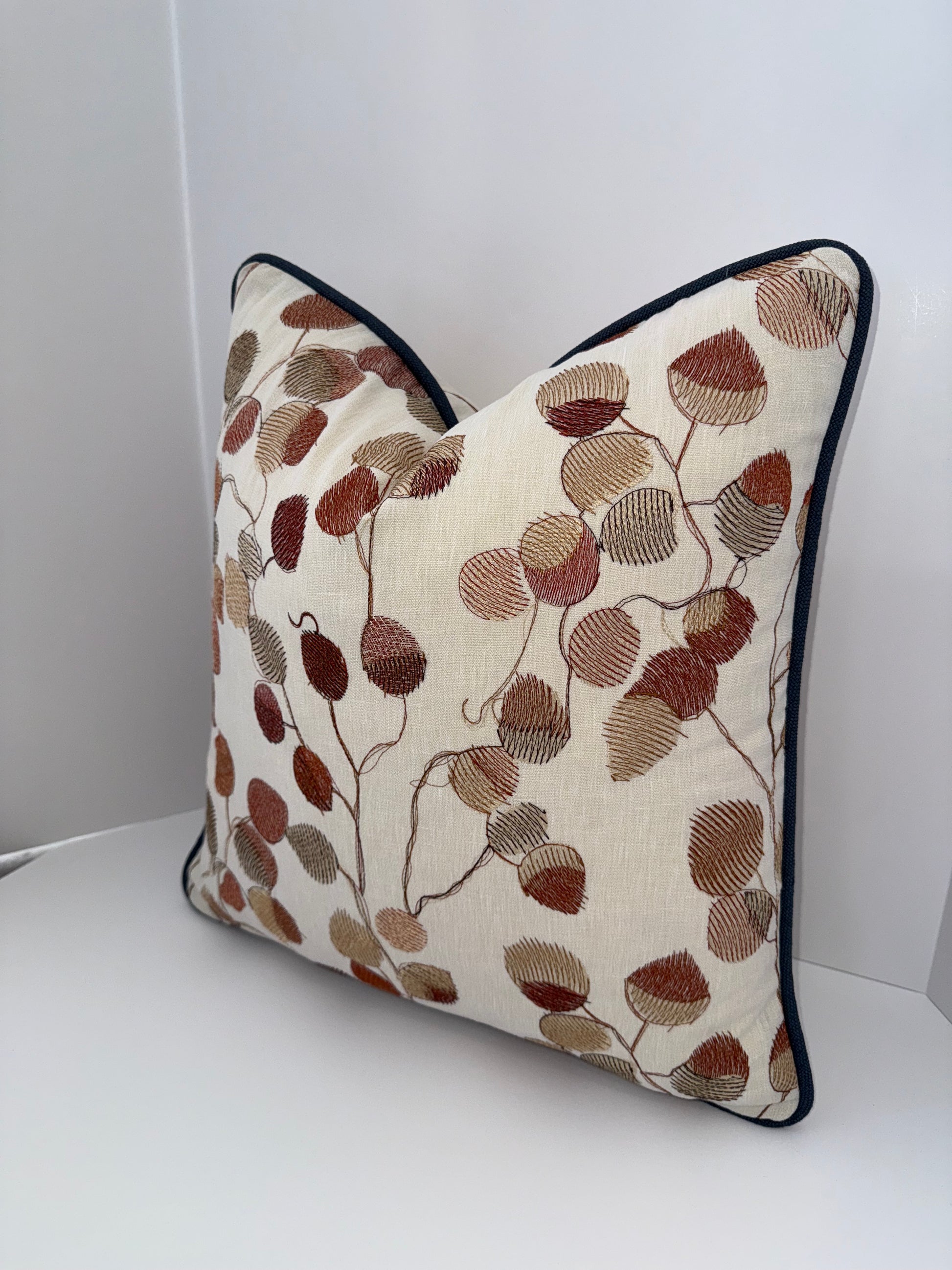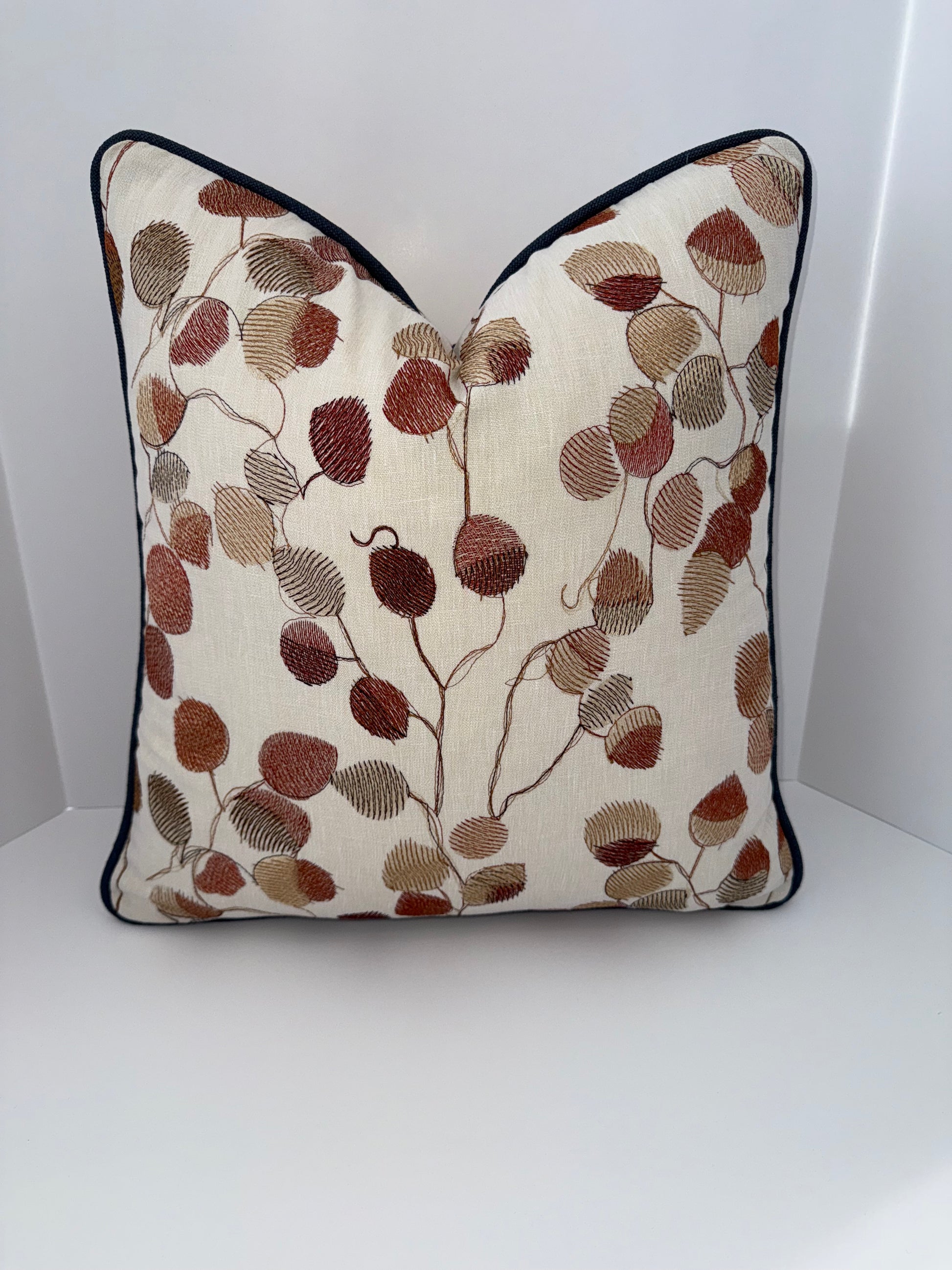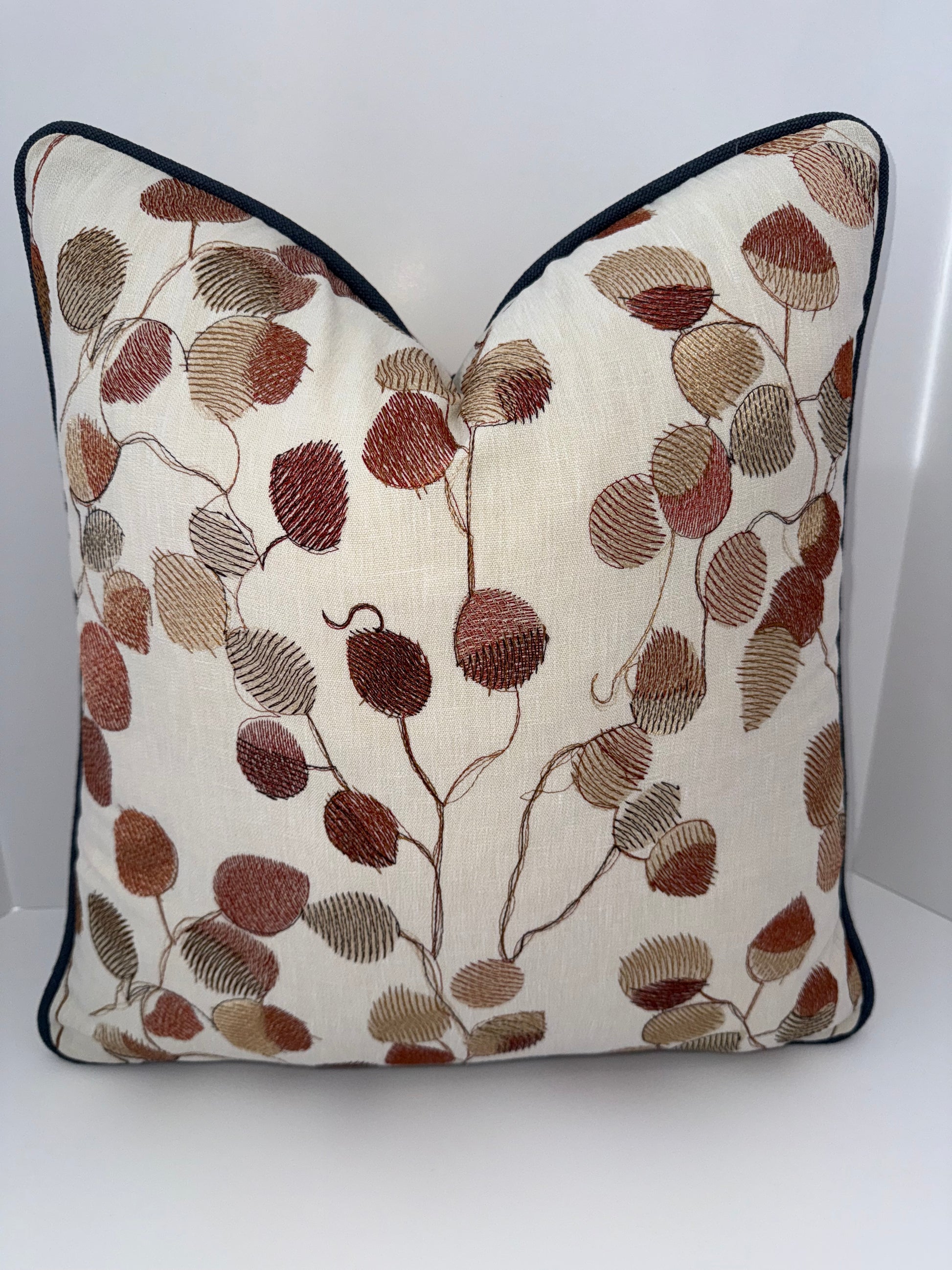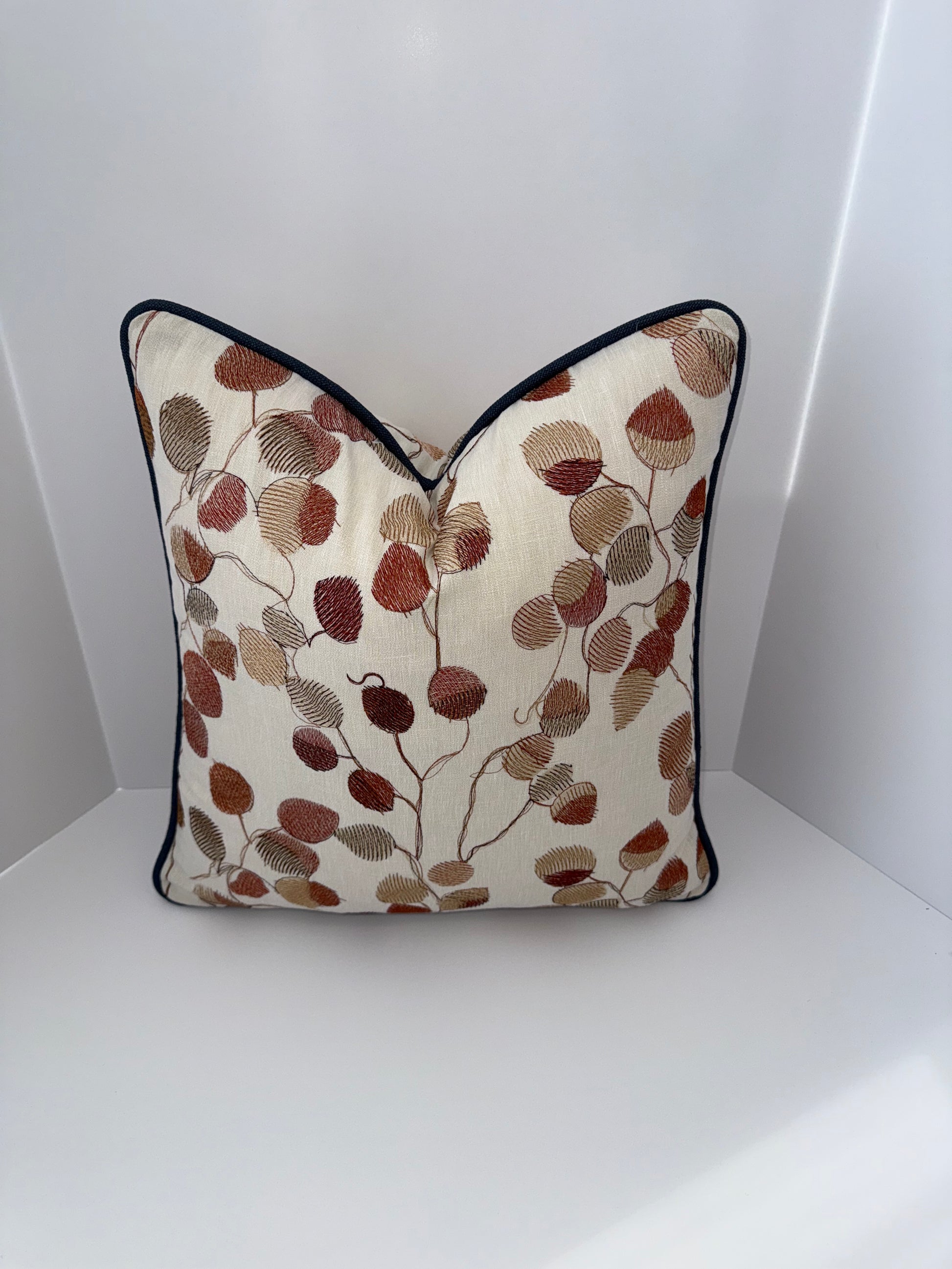 One 20x20 Beige, Red, and Gold Embroidered Decorative Pillow