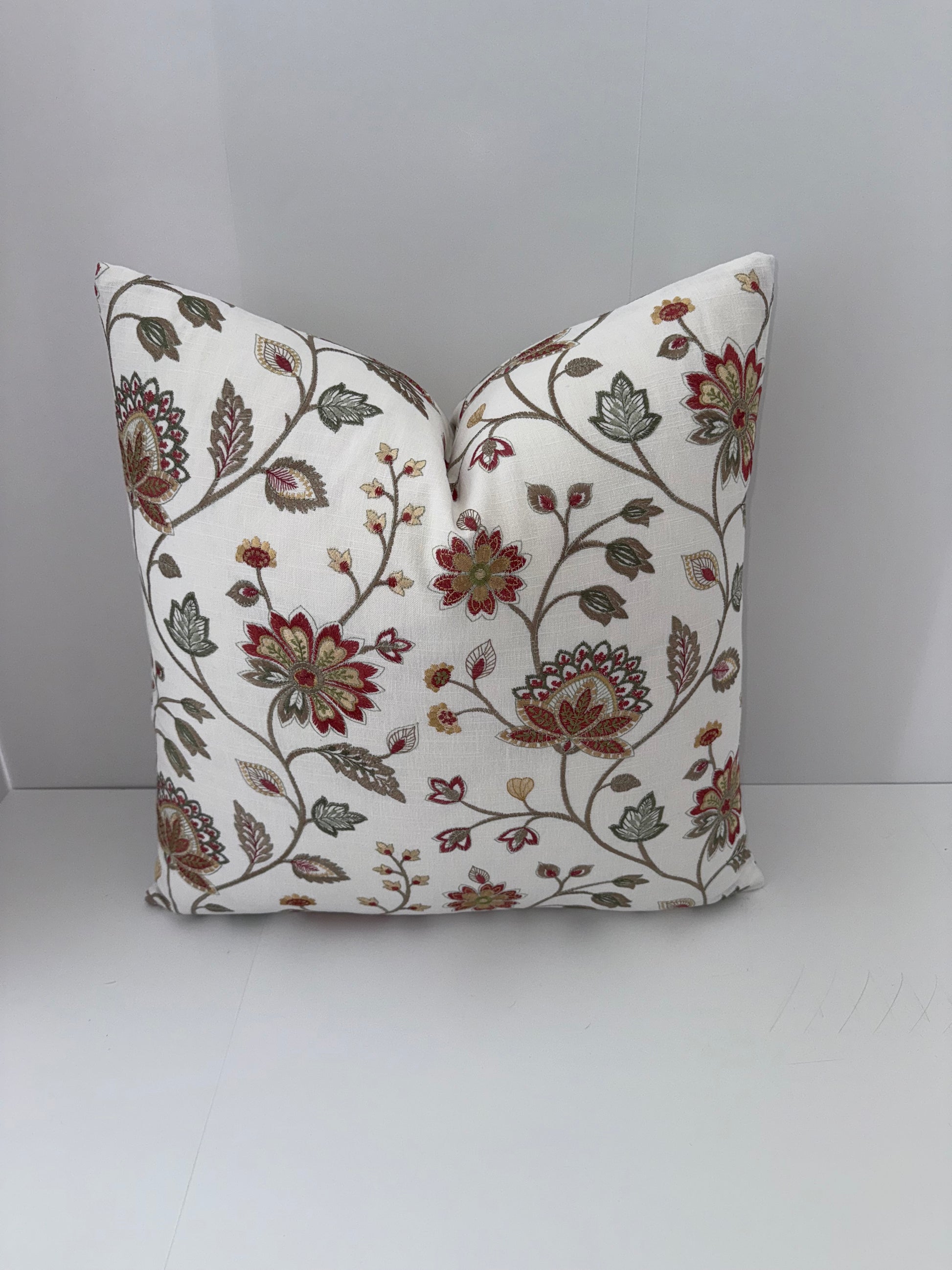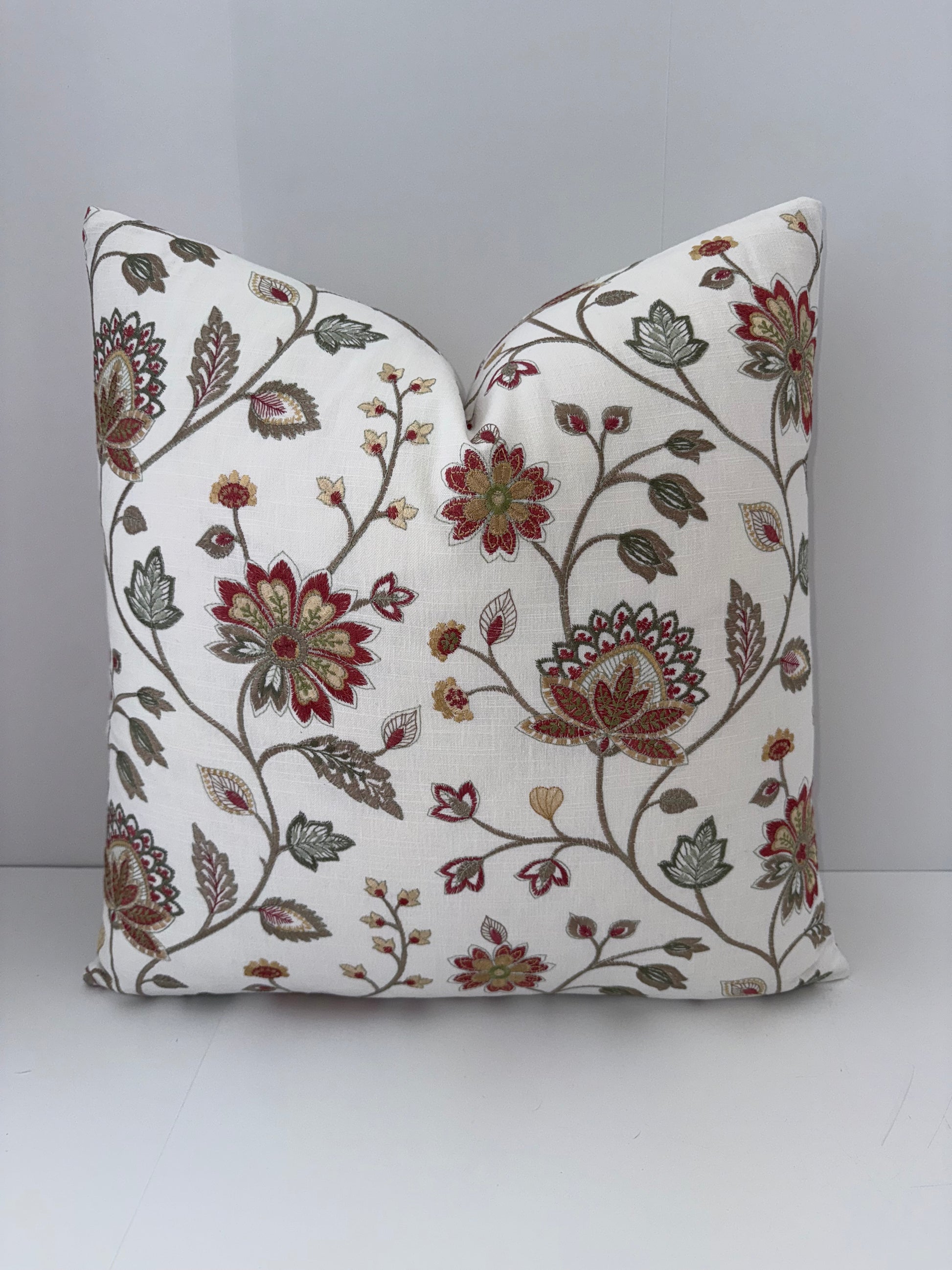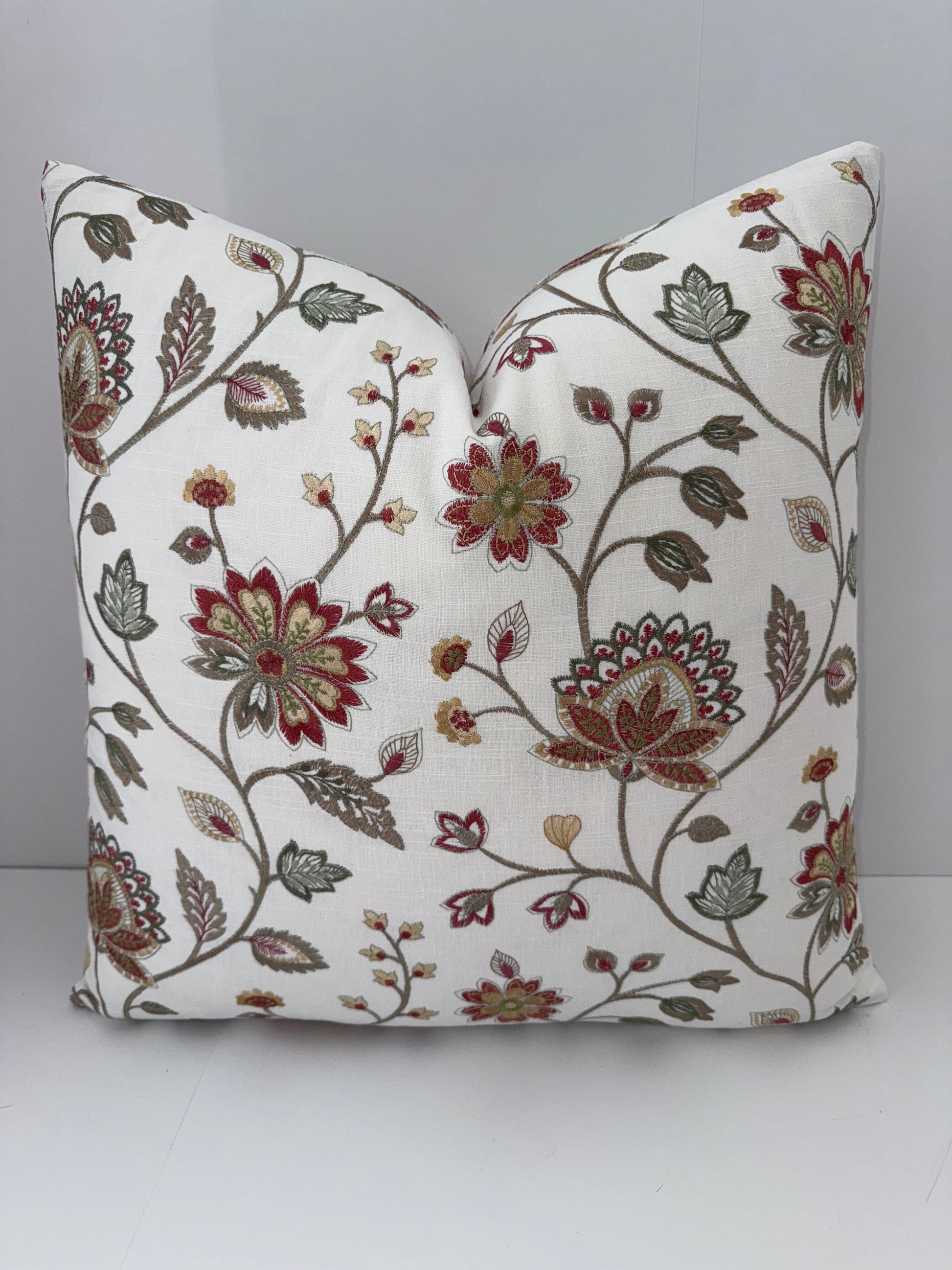 One 22x22 White, Green, Red, and Yellow Embroidered Decorative Pillow