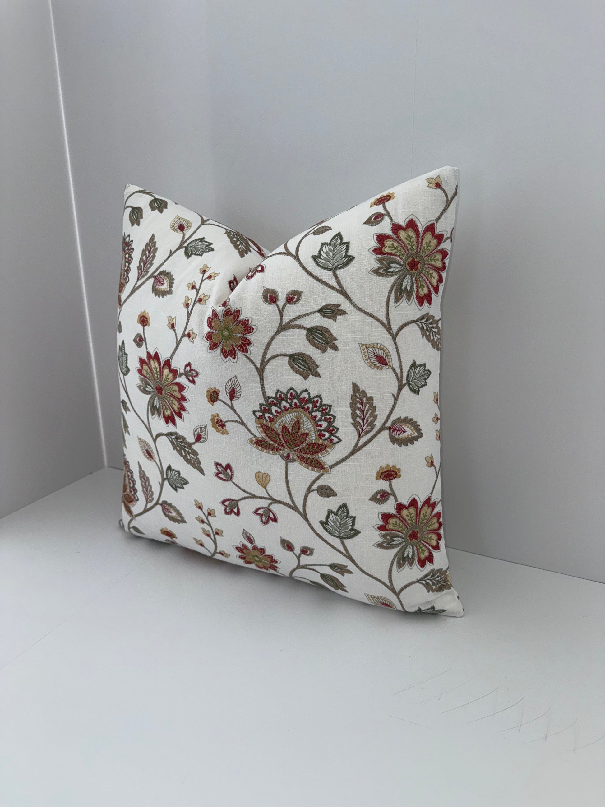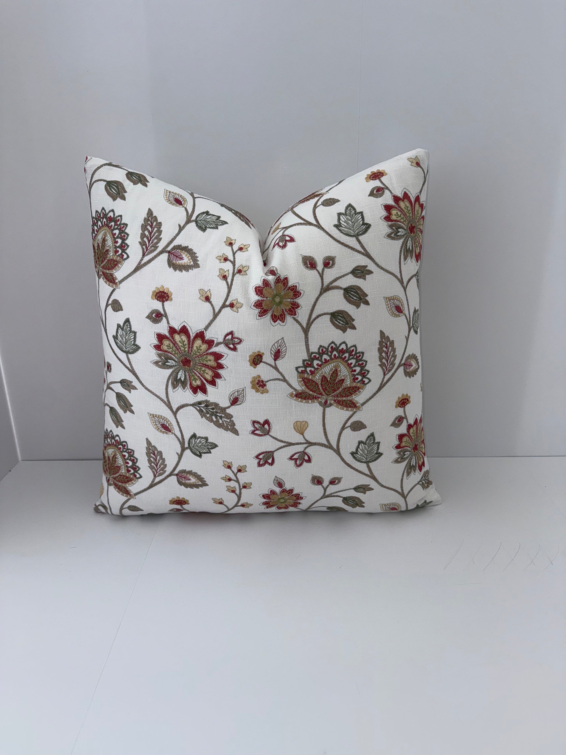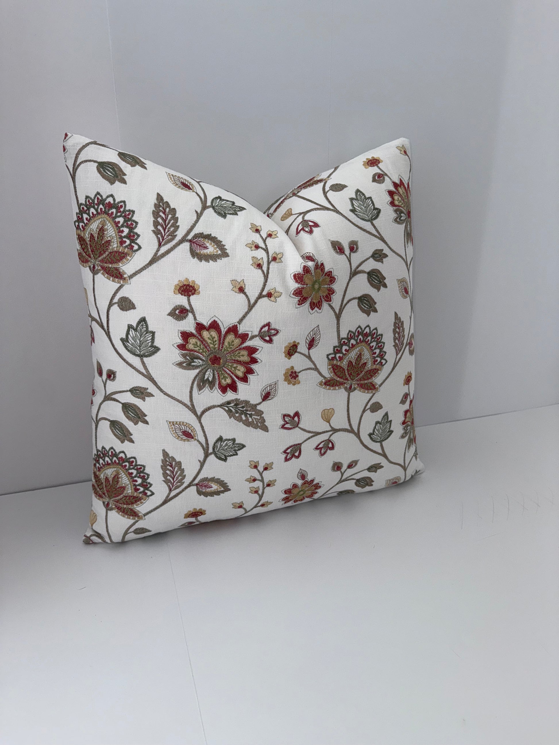 One 22x22 White, Green, Red, and Yellow Embroidered Decorative Pillow