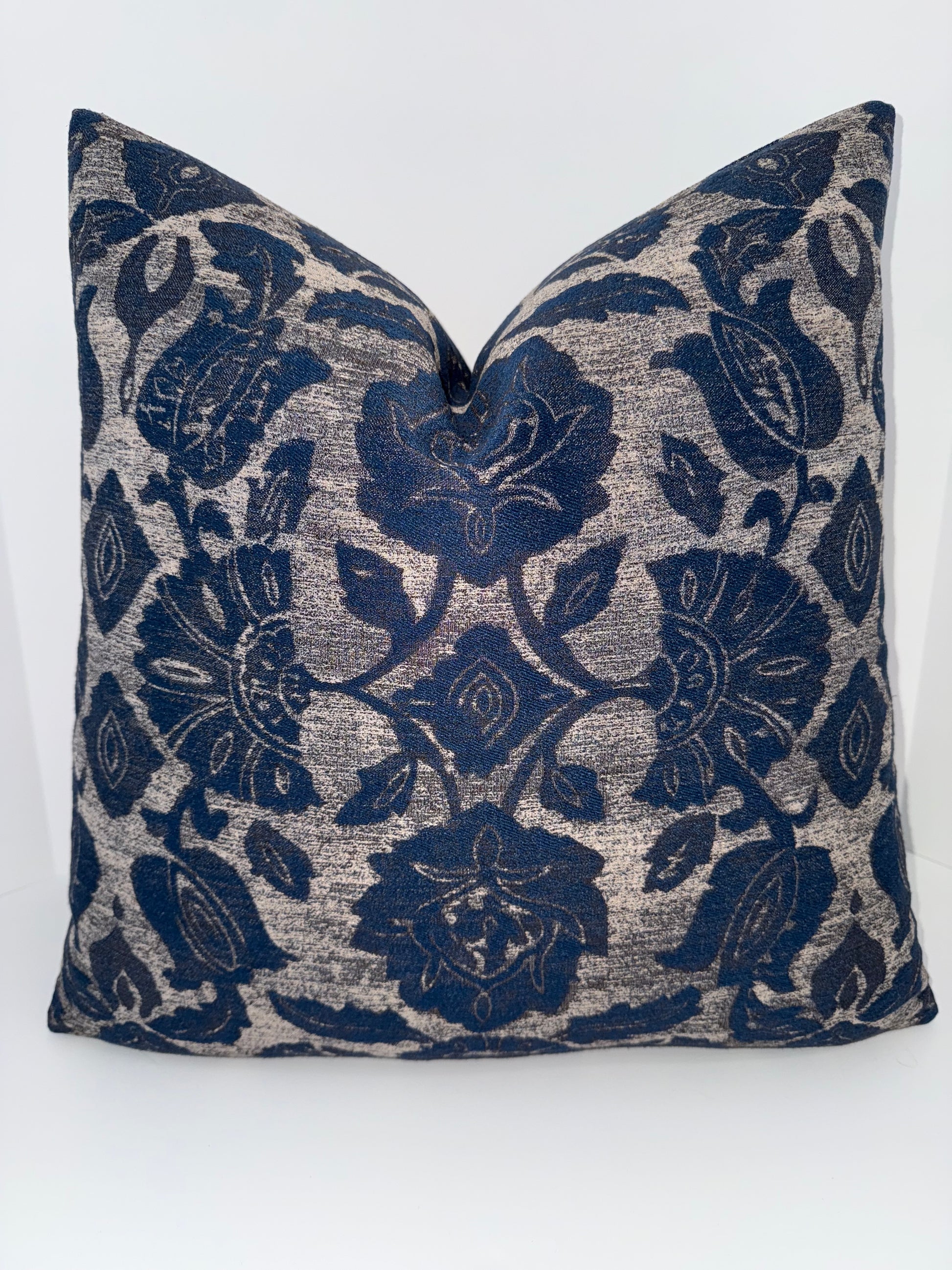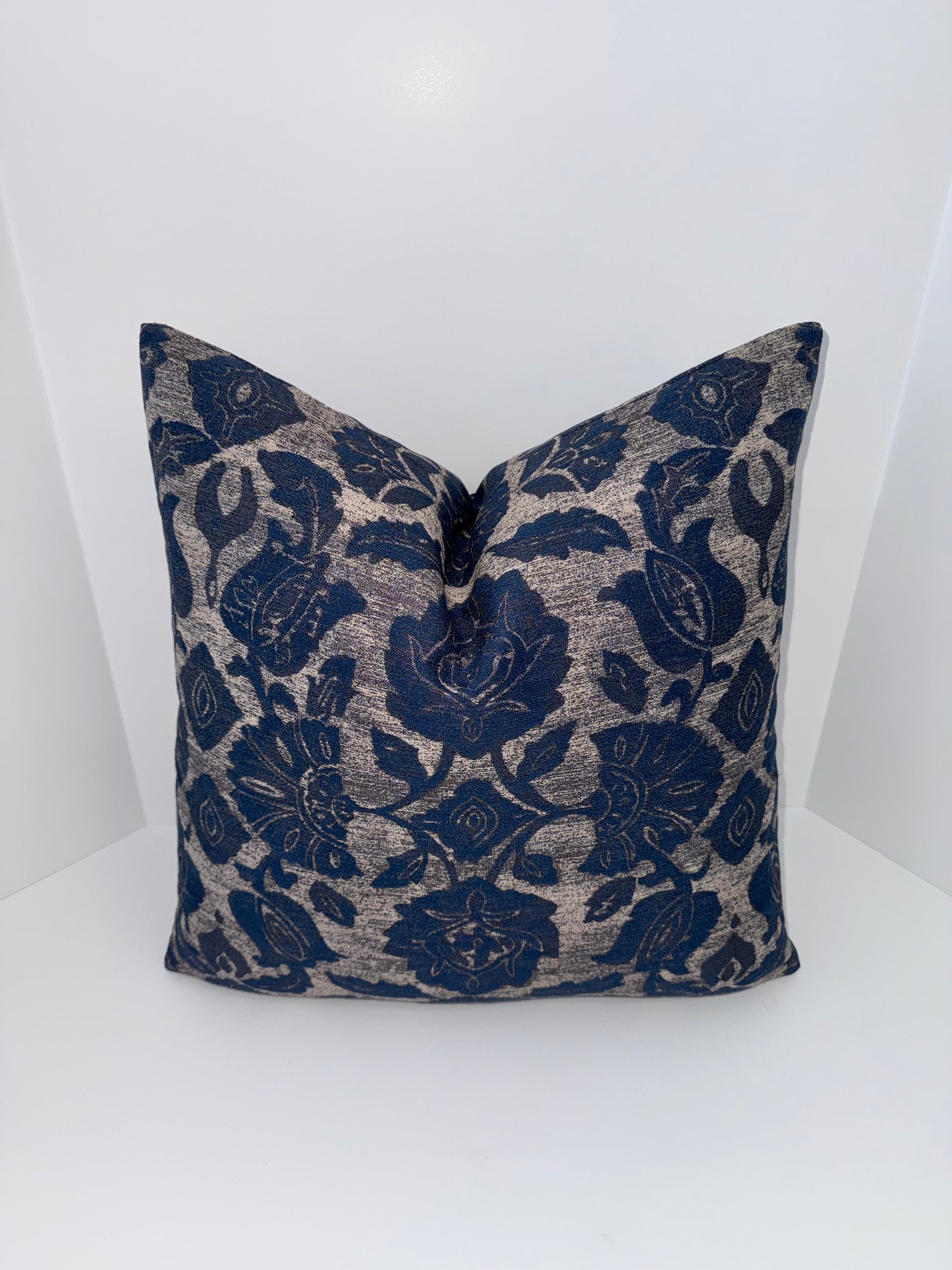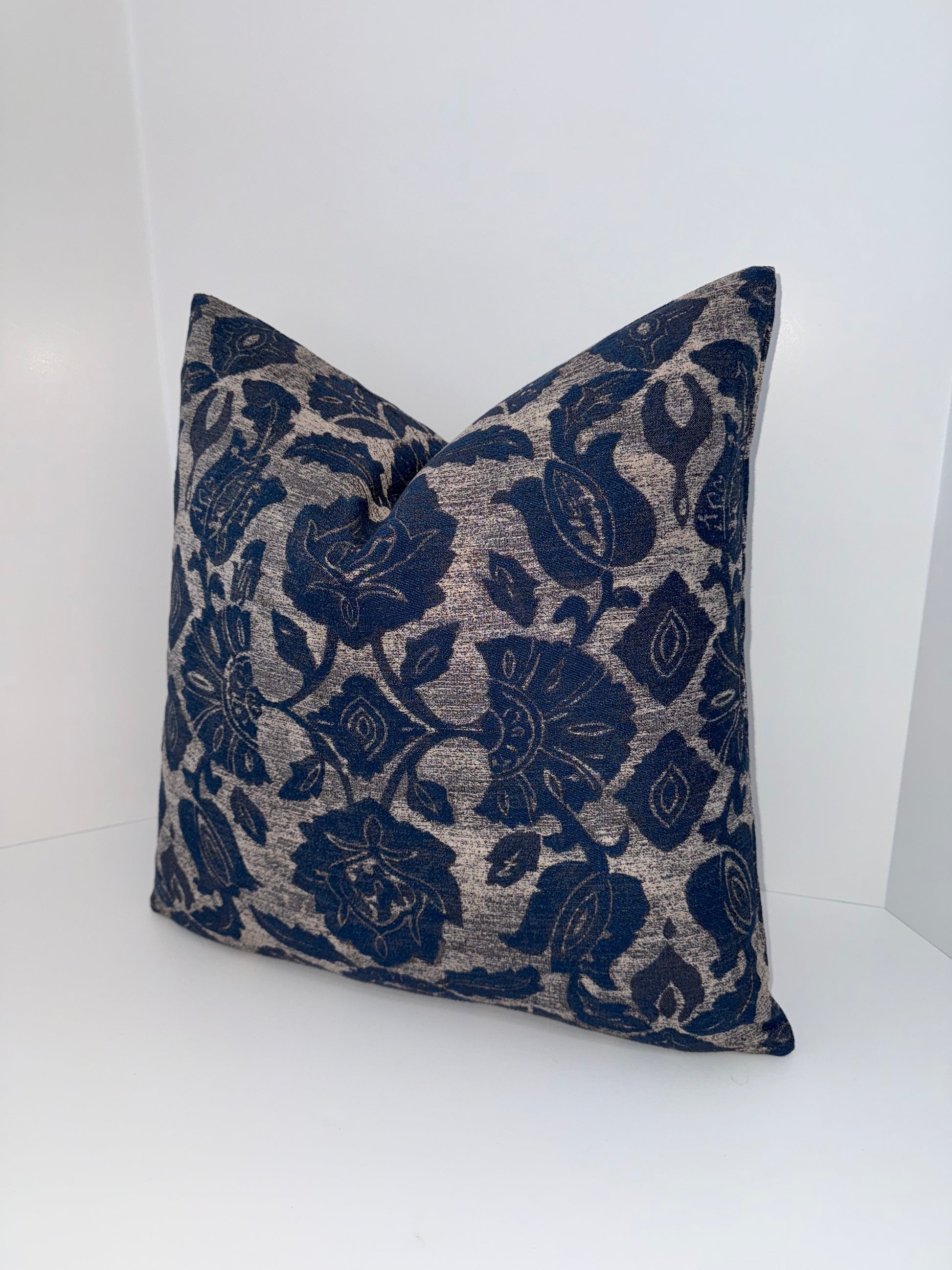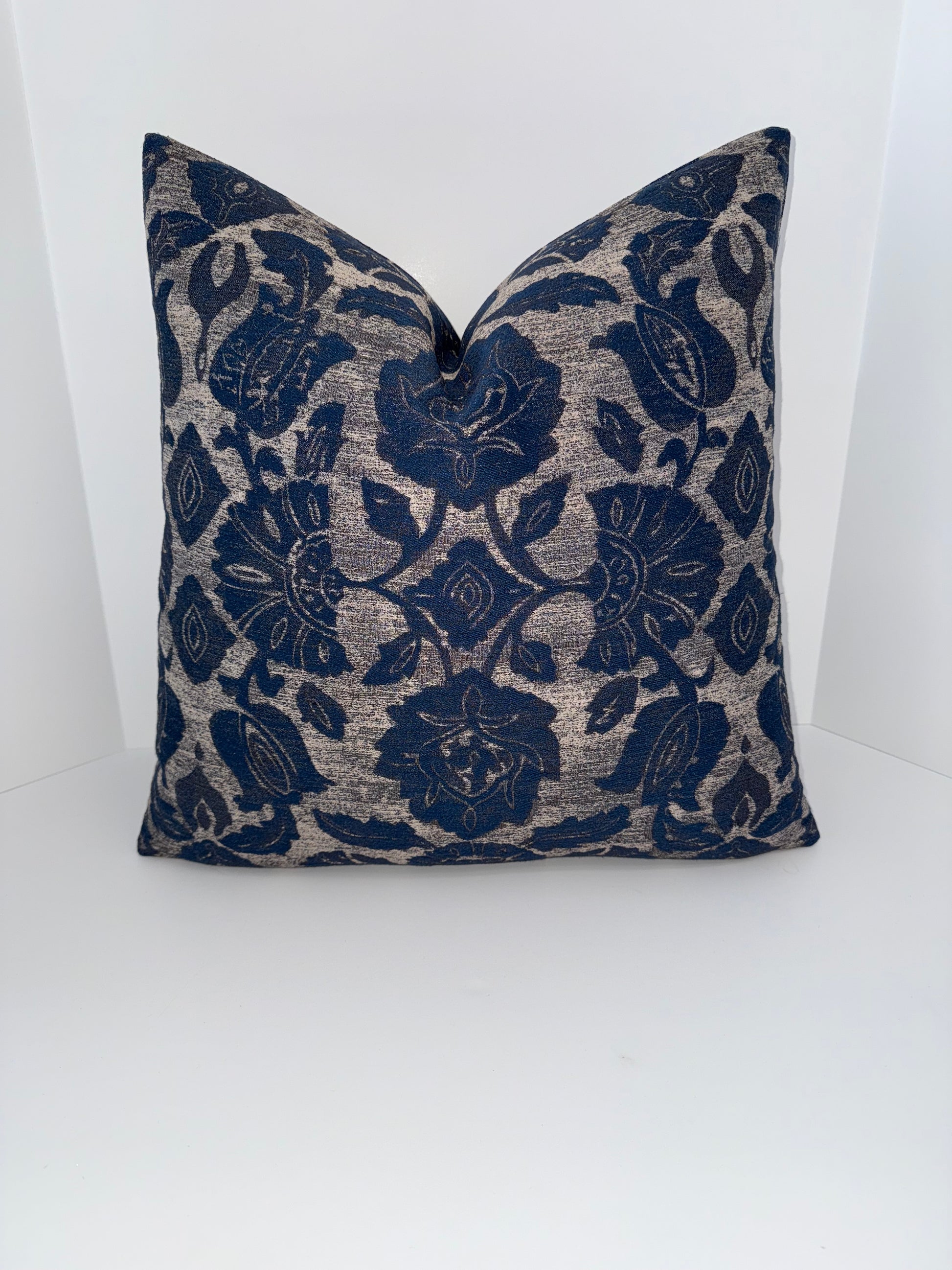 One 20x20 Blue and Gray Printed Linen Decorative Pillow
