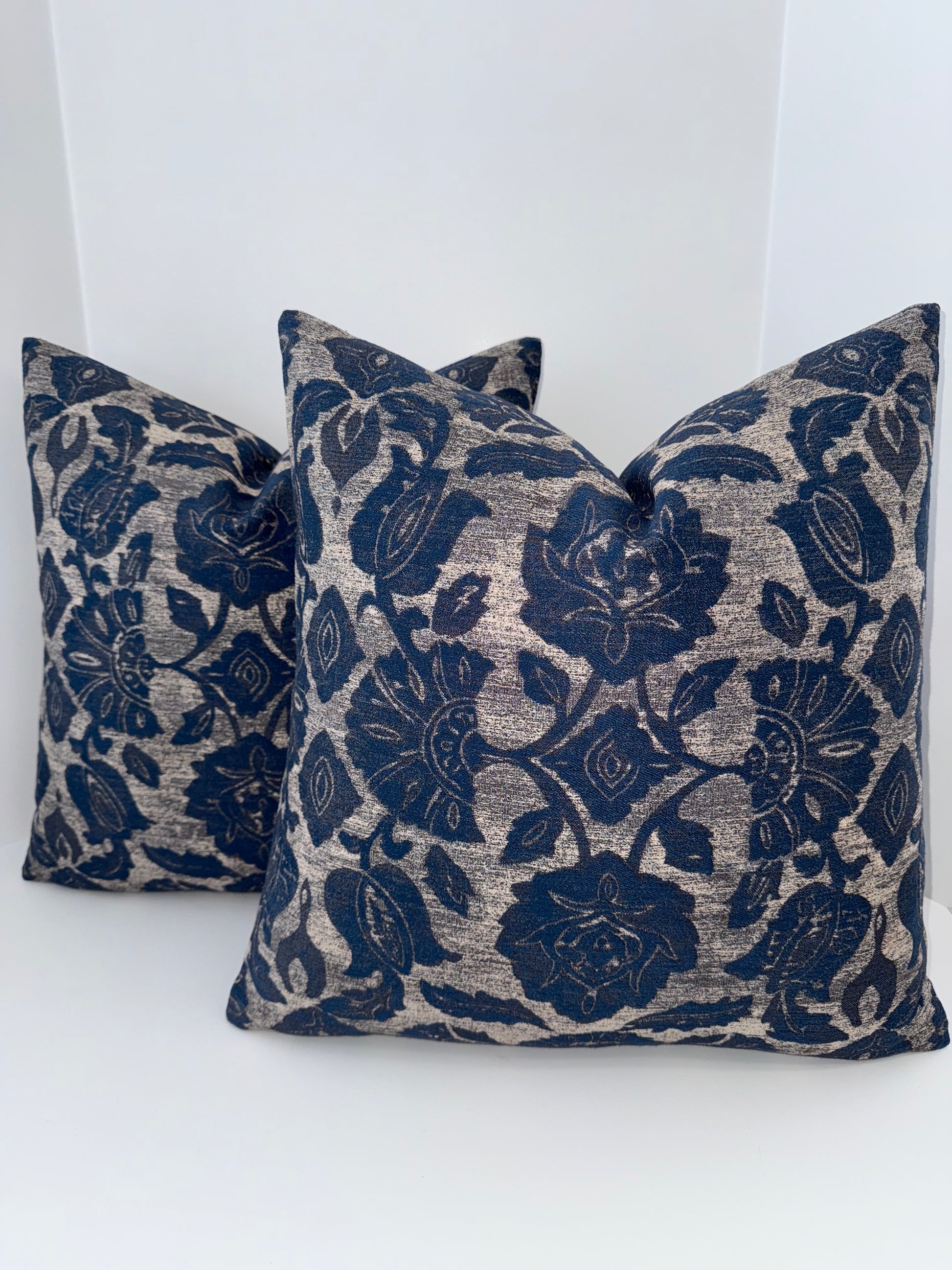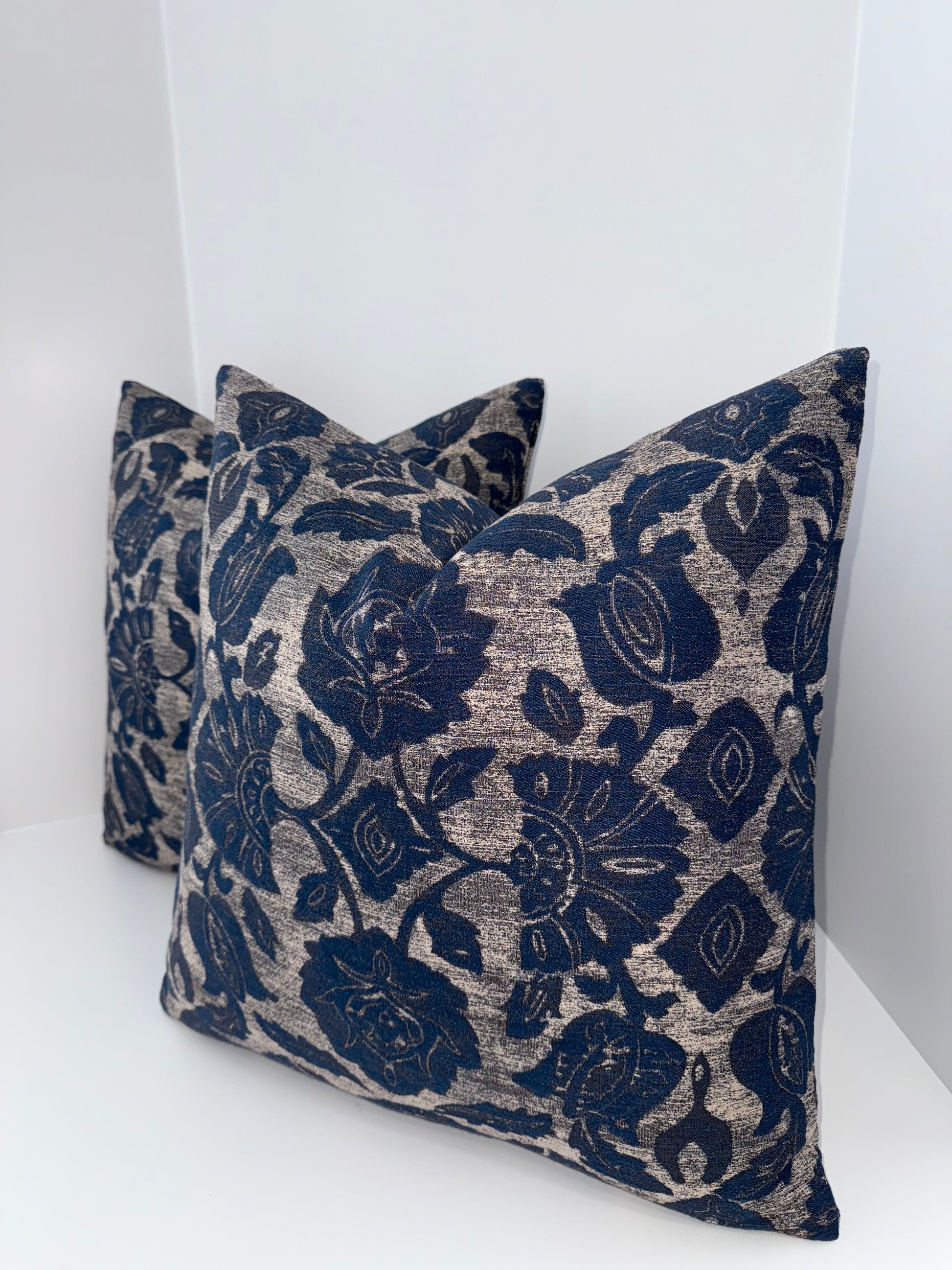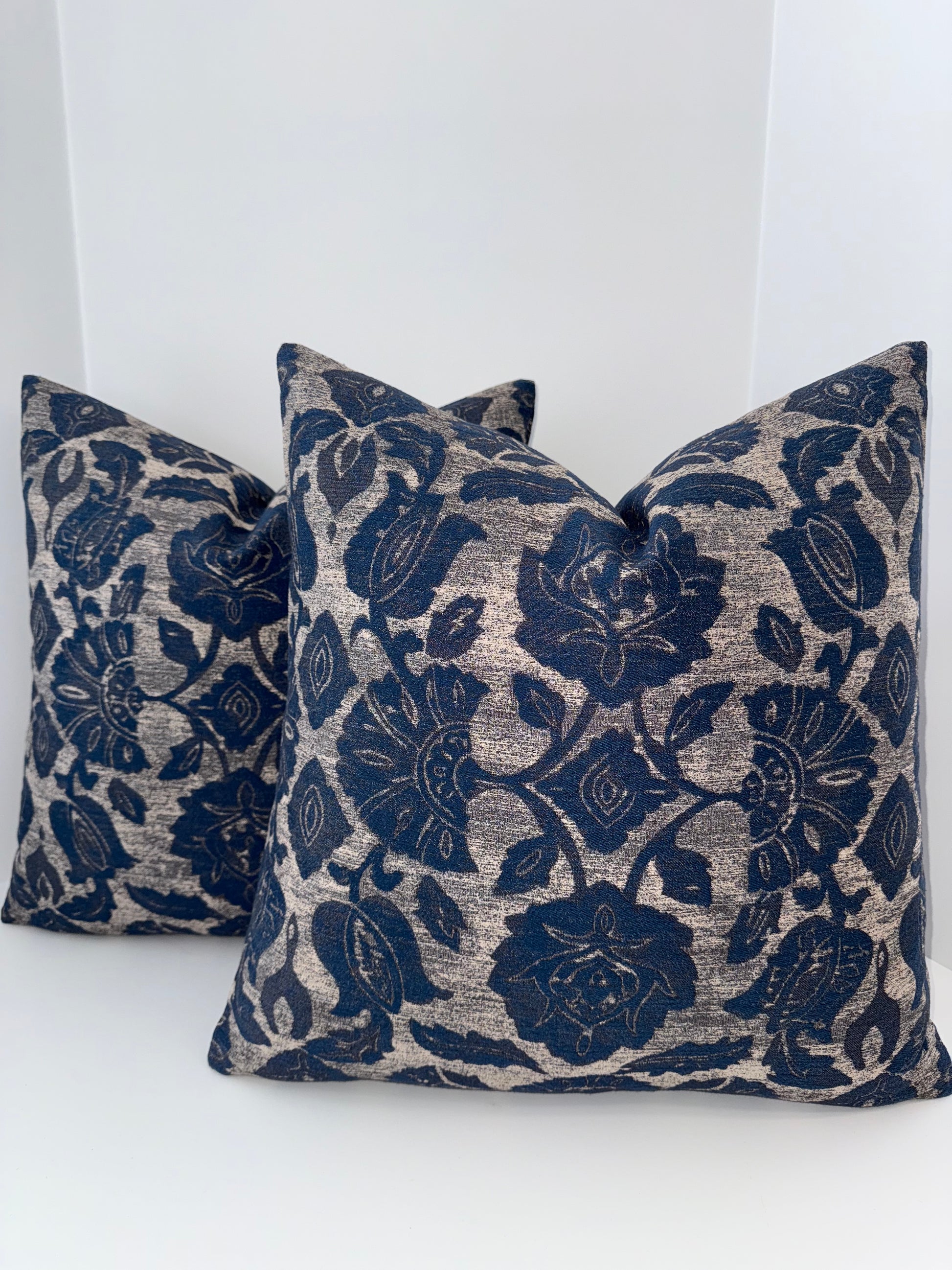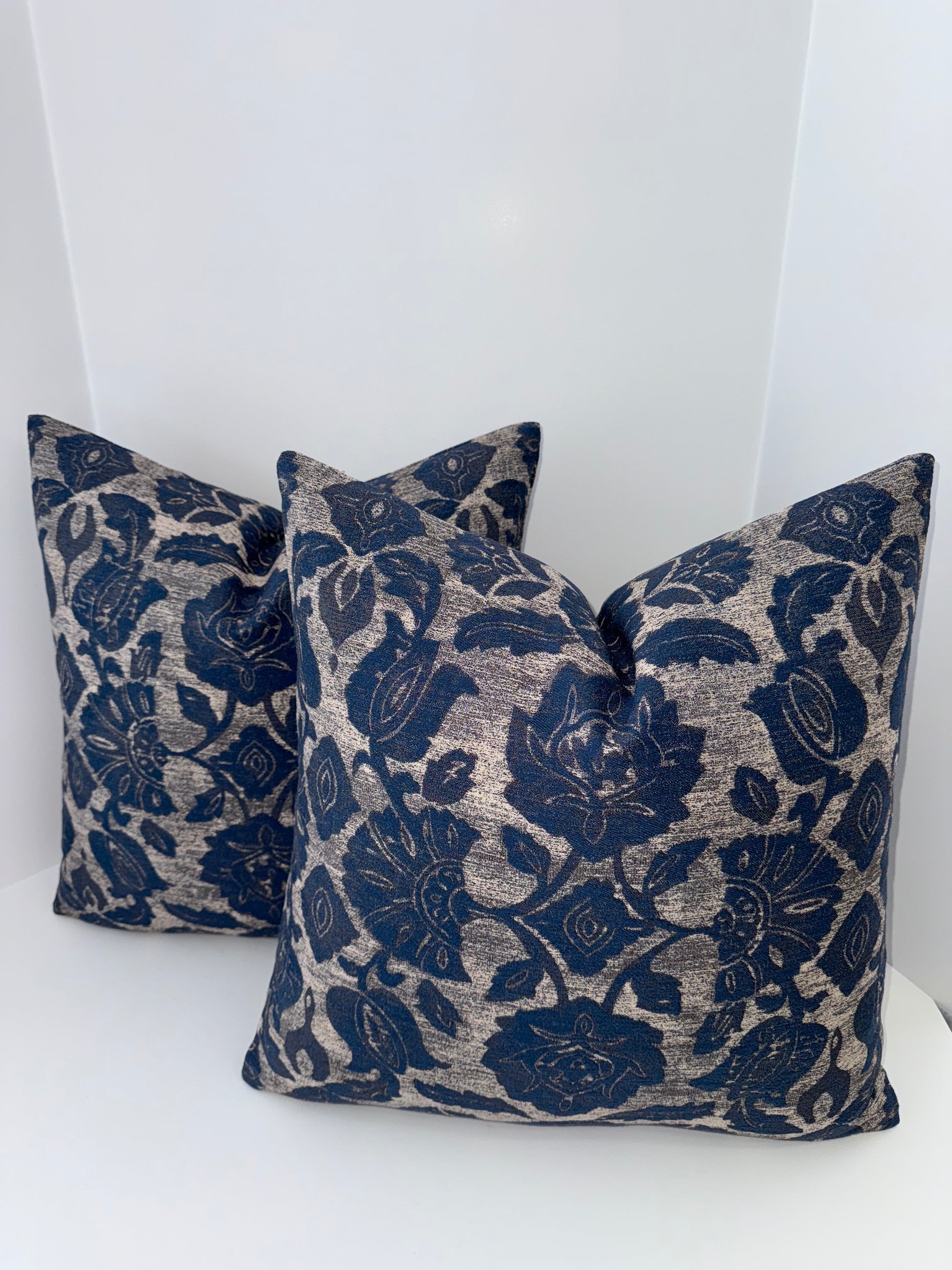 Two 20x20 Blue and Gray Chenille Decorative Pillows