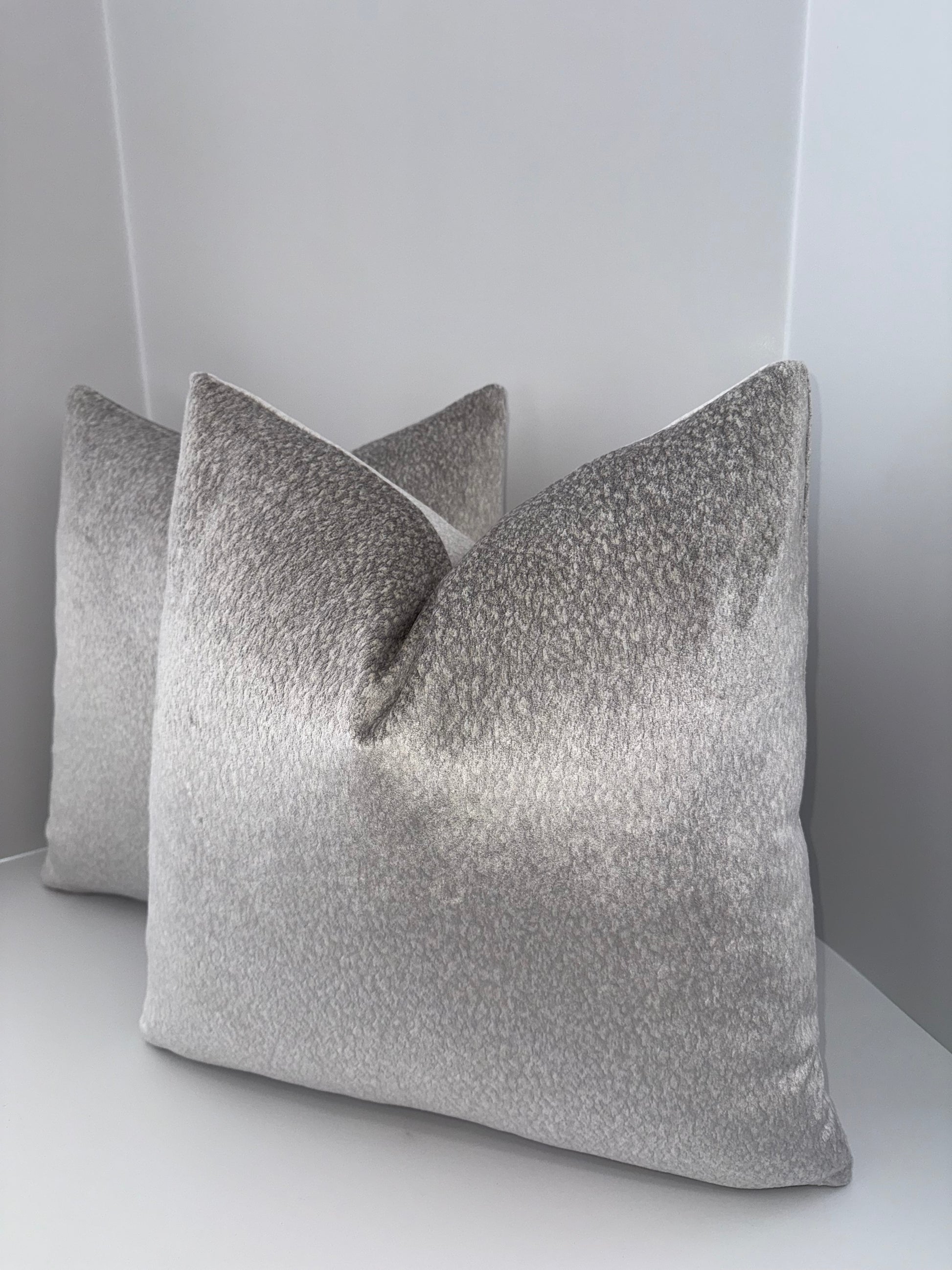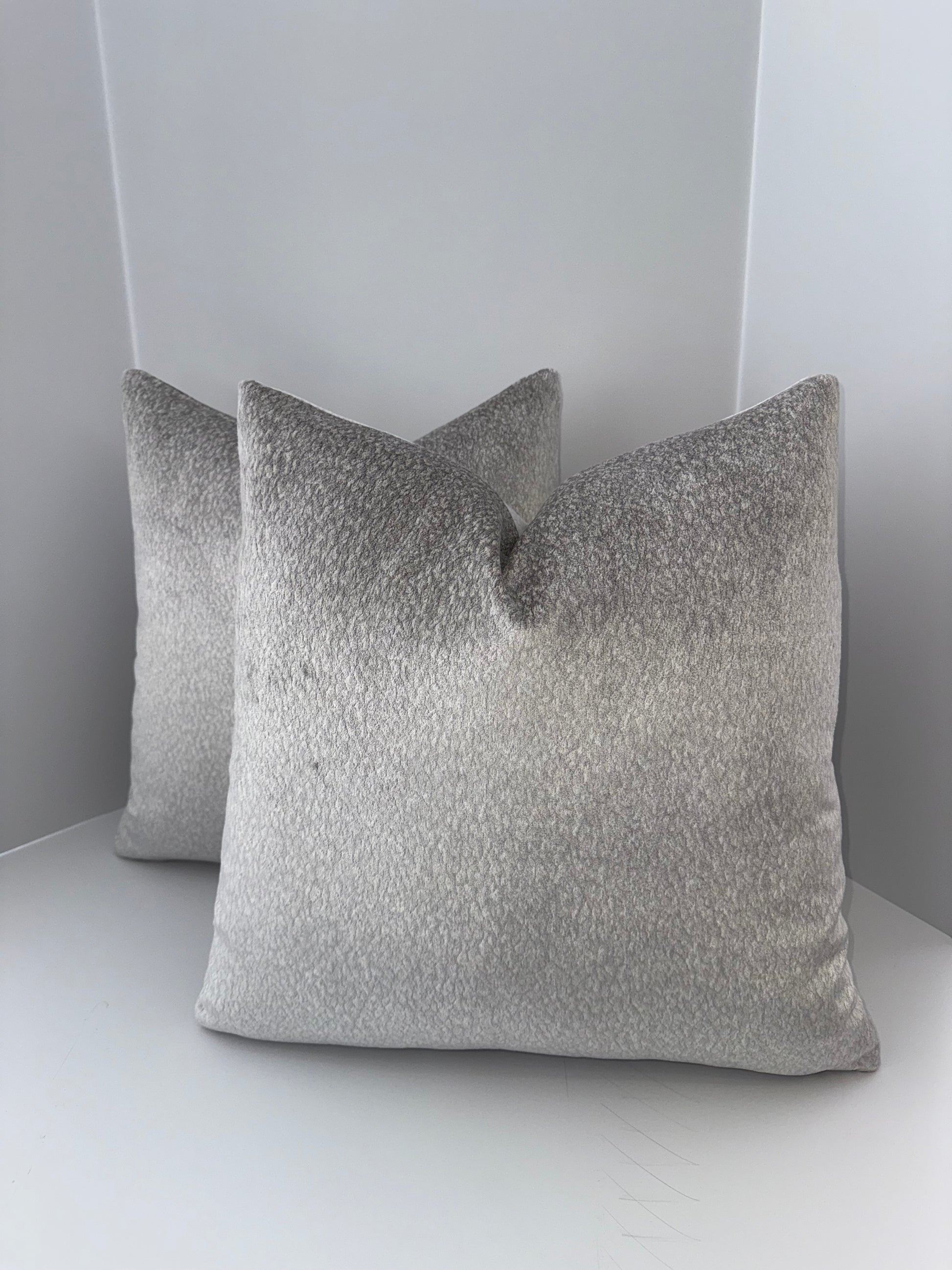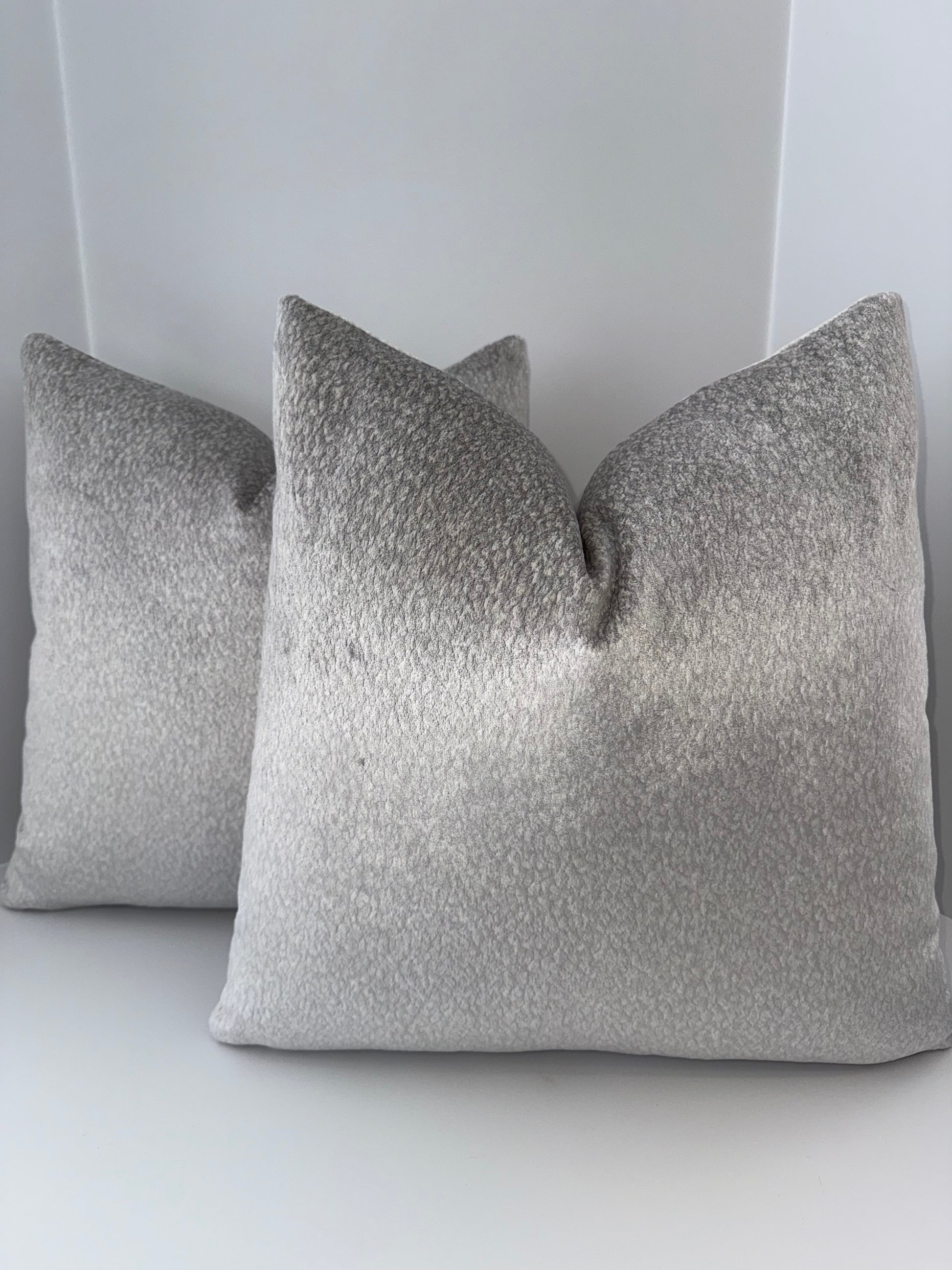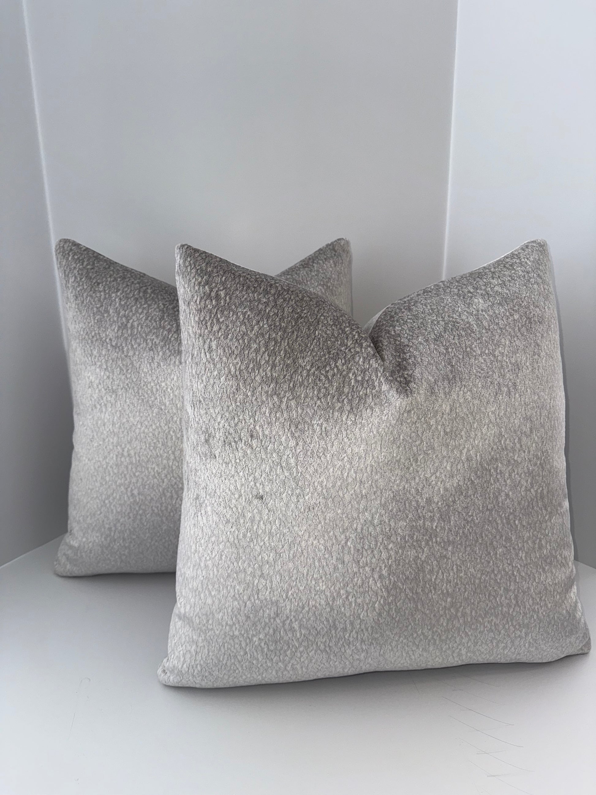 Two 20x20 Gray and White Velvet Decorative Pillow