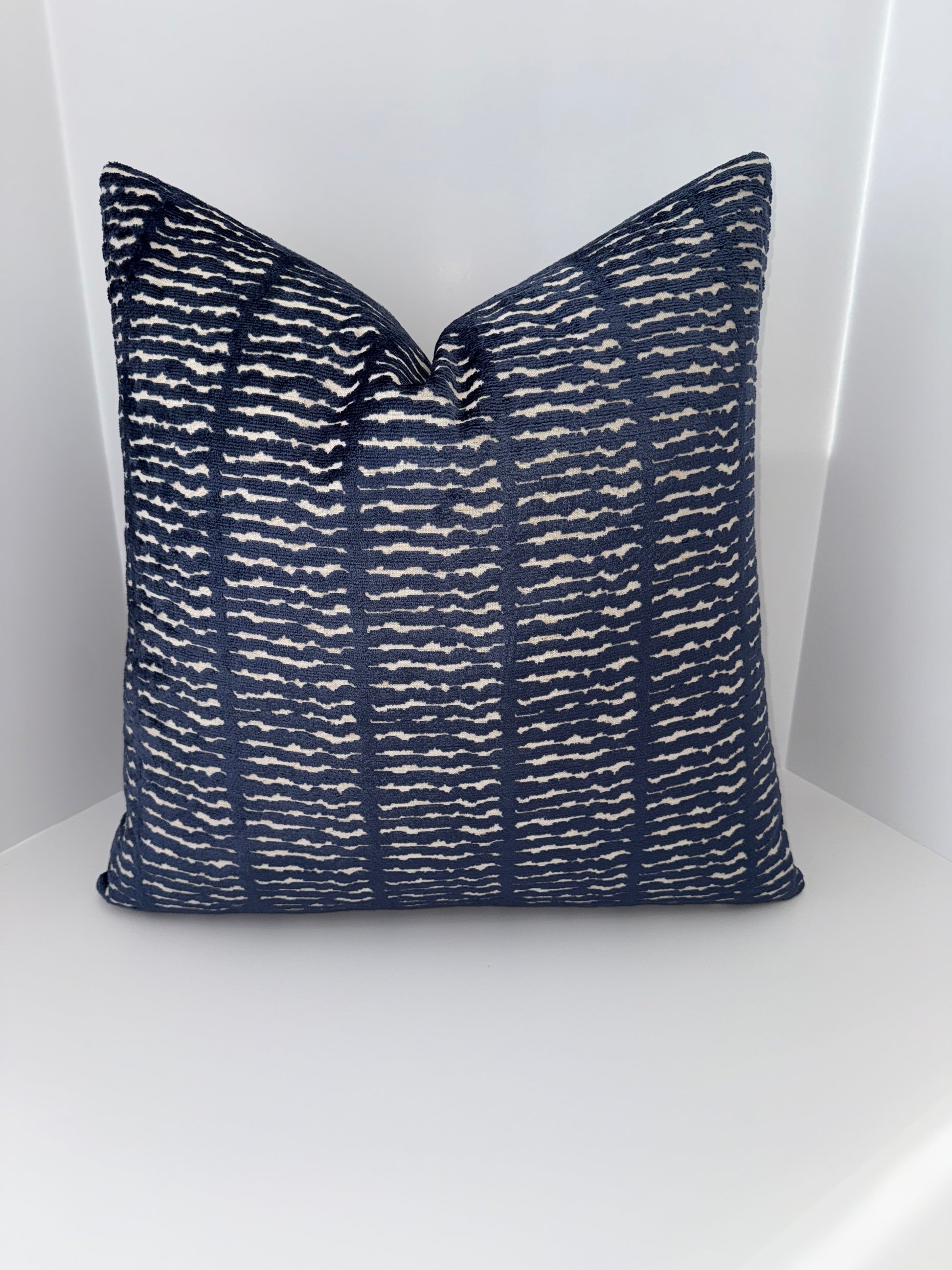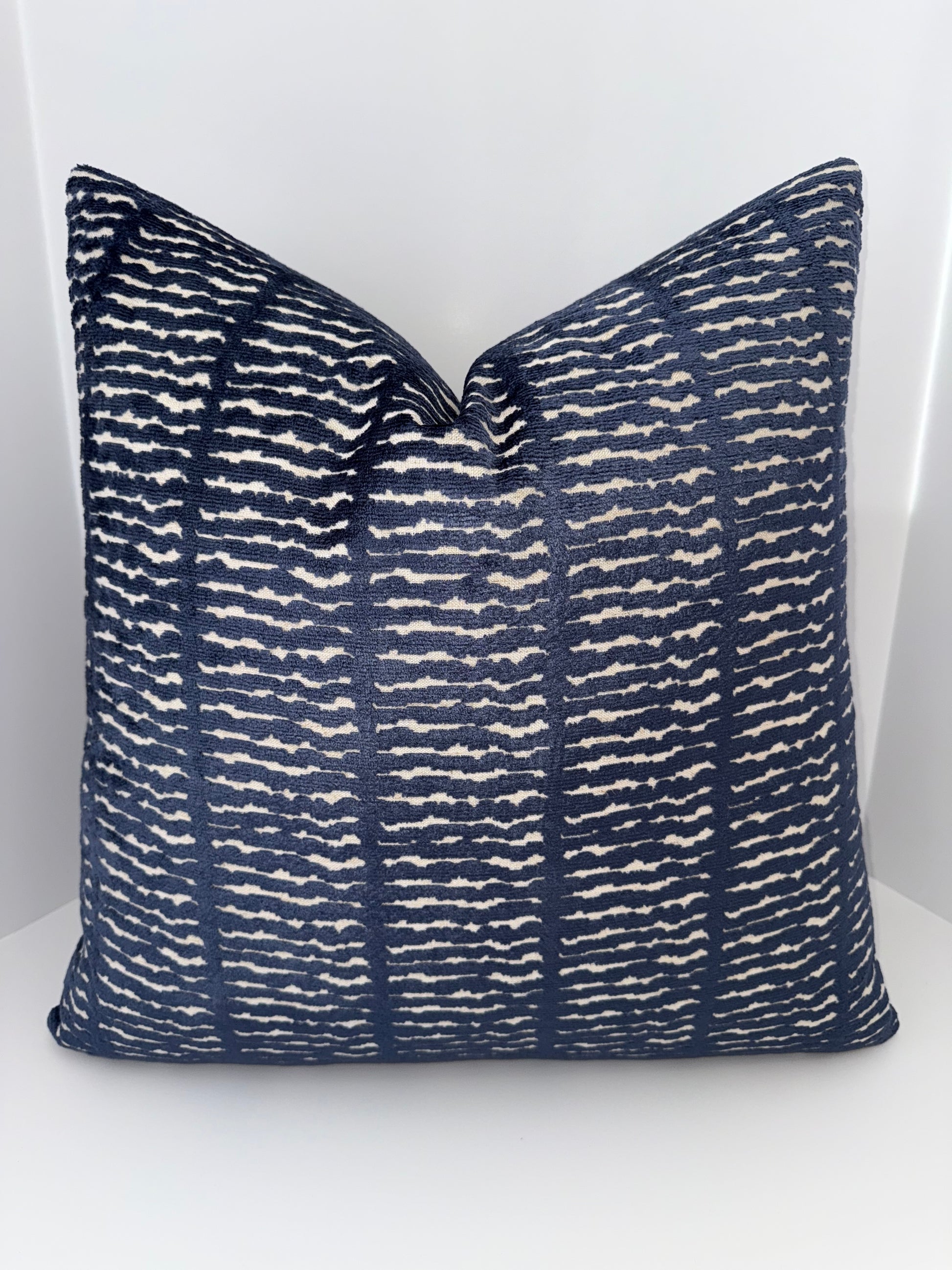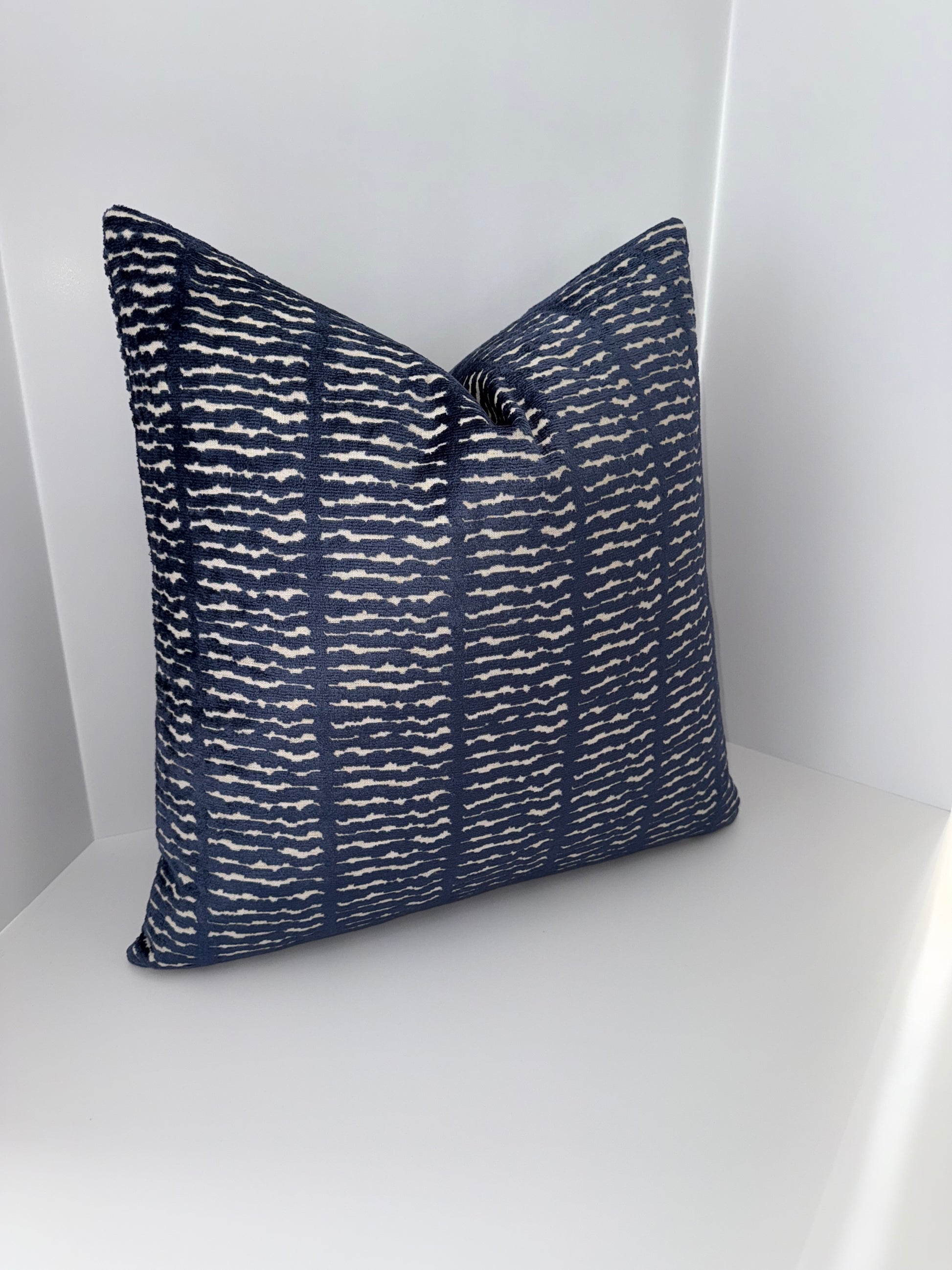 One 22x22 Blue and White Cut Velvet Decorative Pillow