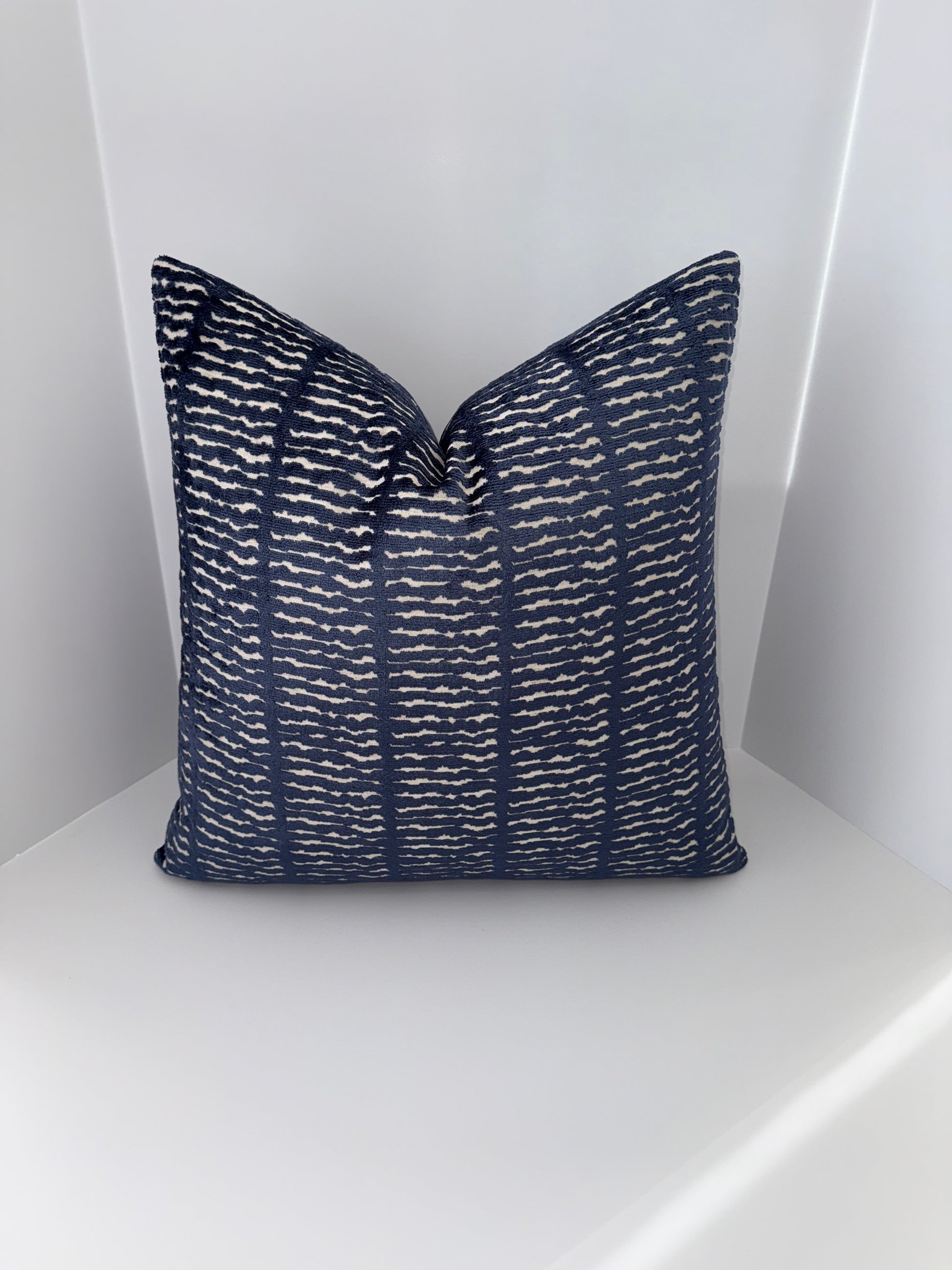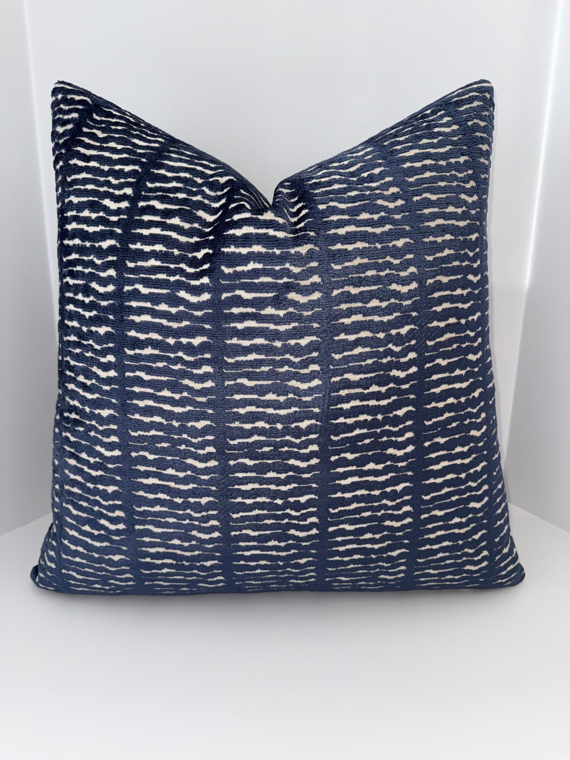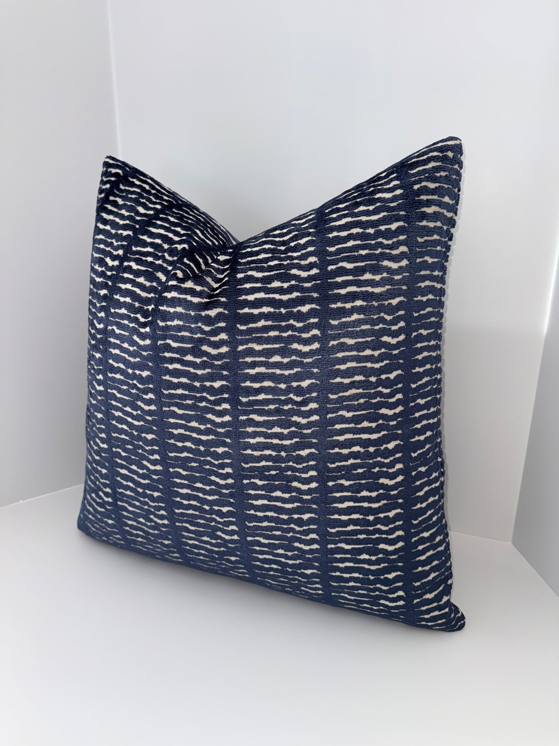 One 22x22 Blue and White Cut Velvet Decorative Pillow