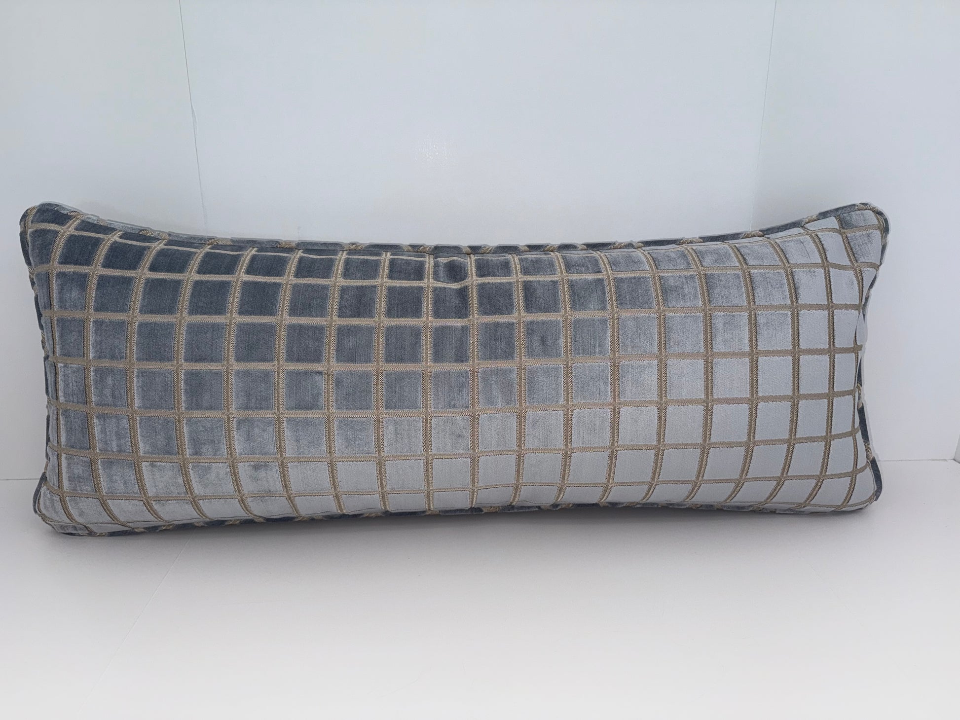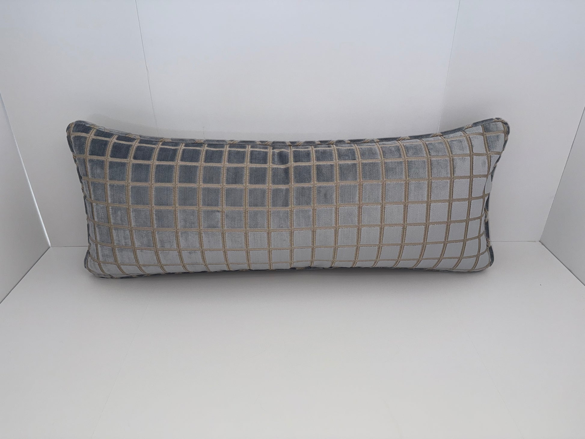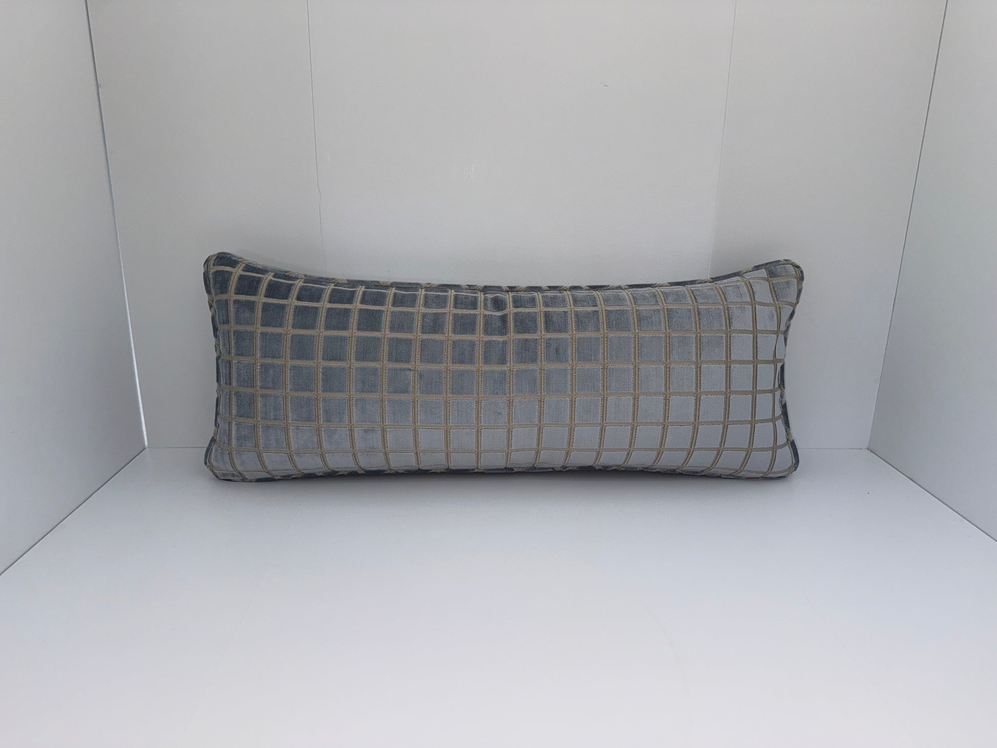 One 14x36 Blue & Beige Cut Velvet Decorative Pillow