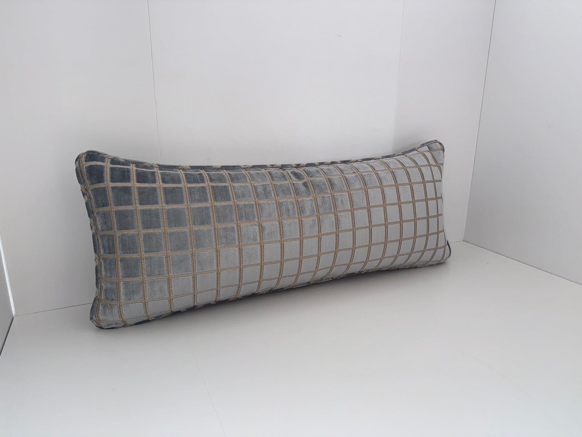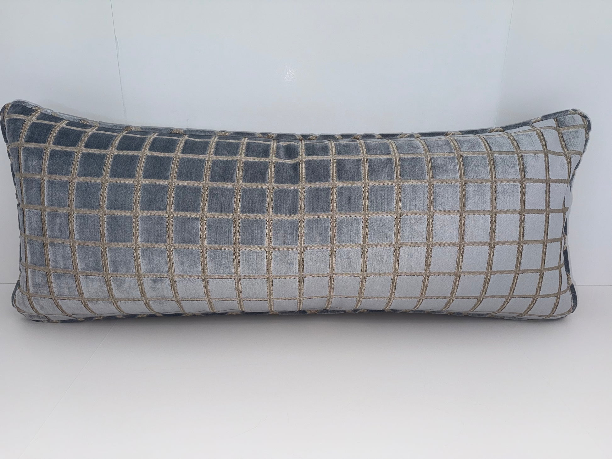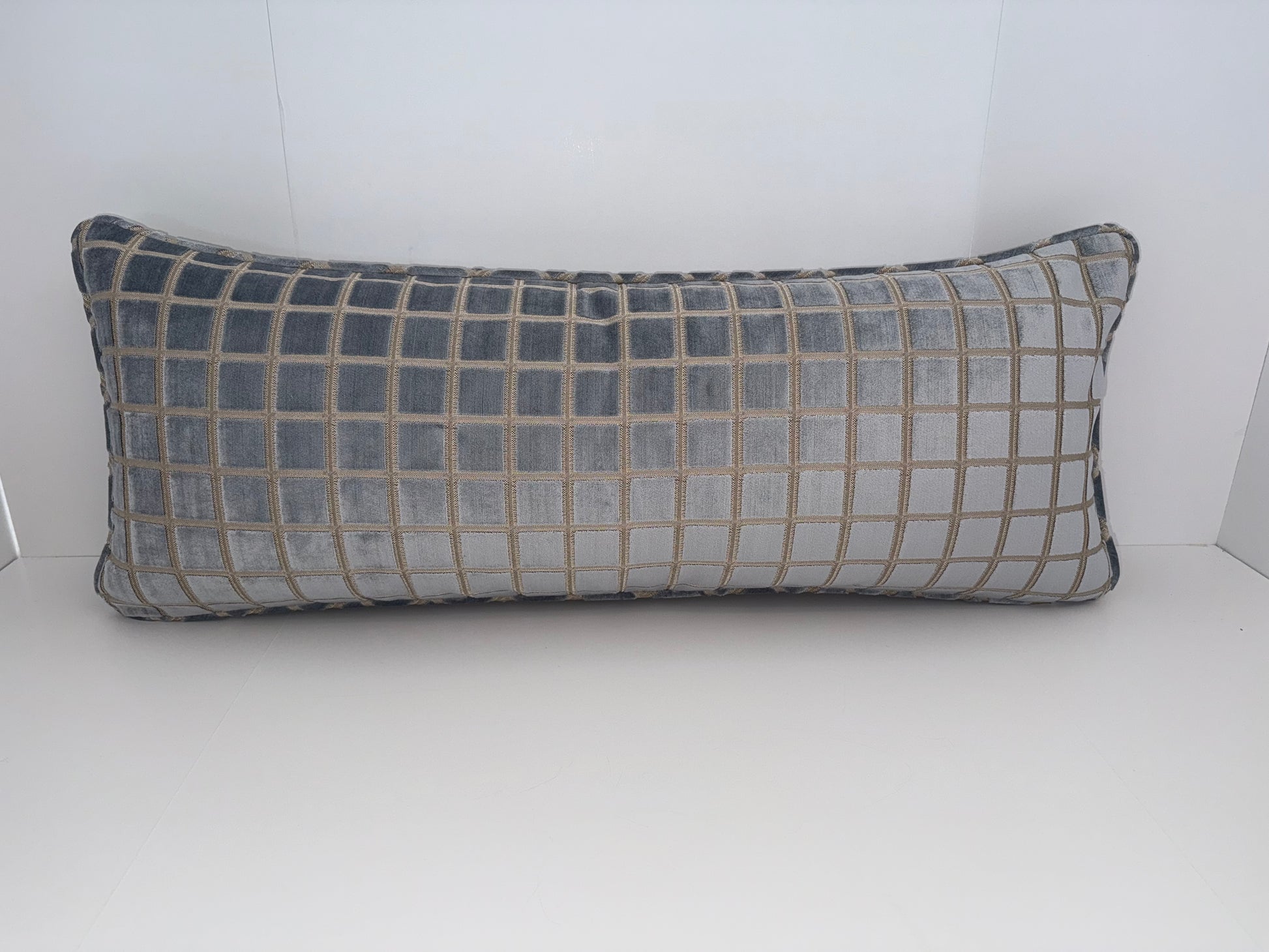 One 14x36 Blue & Beige Cut Velvet Decorative Pillow