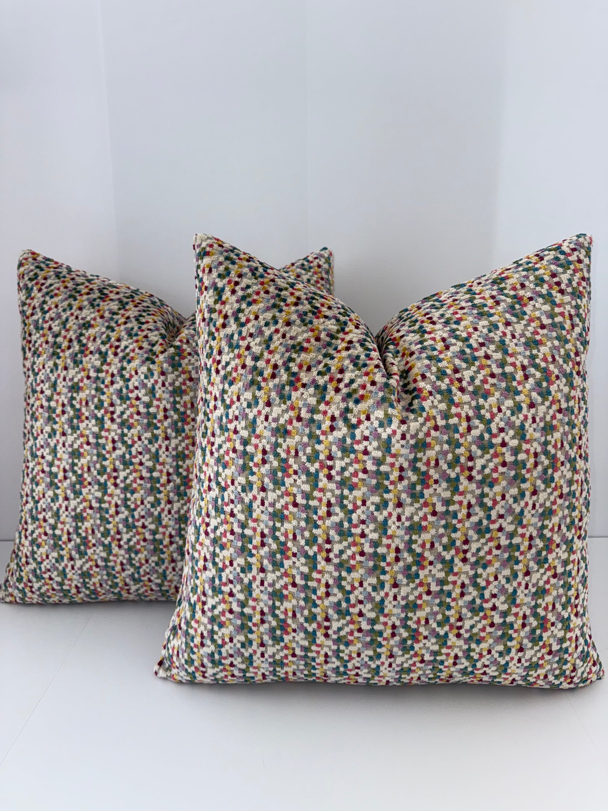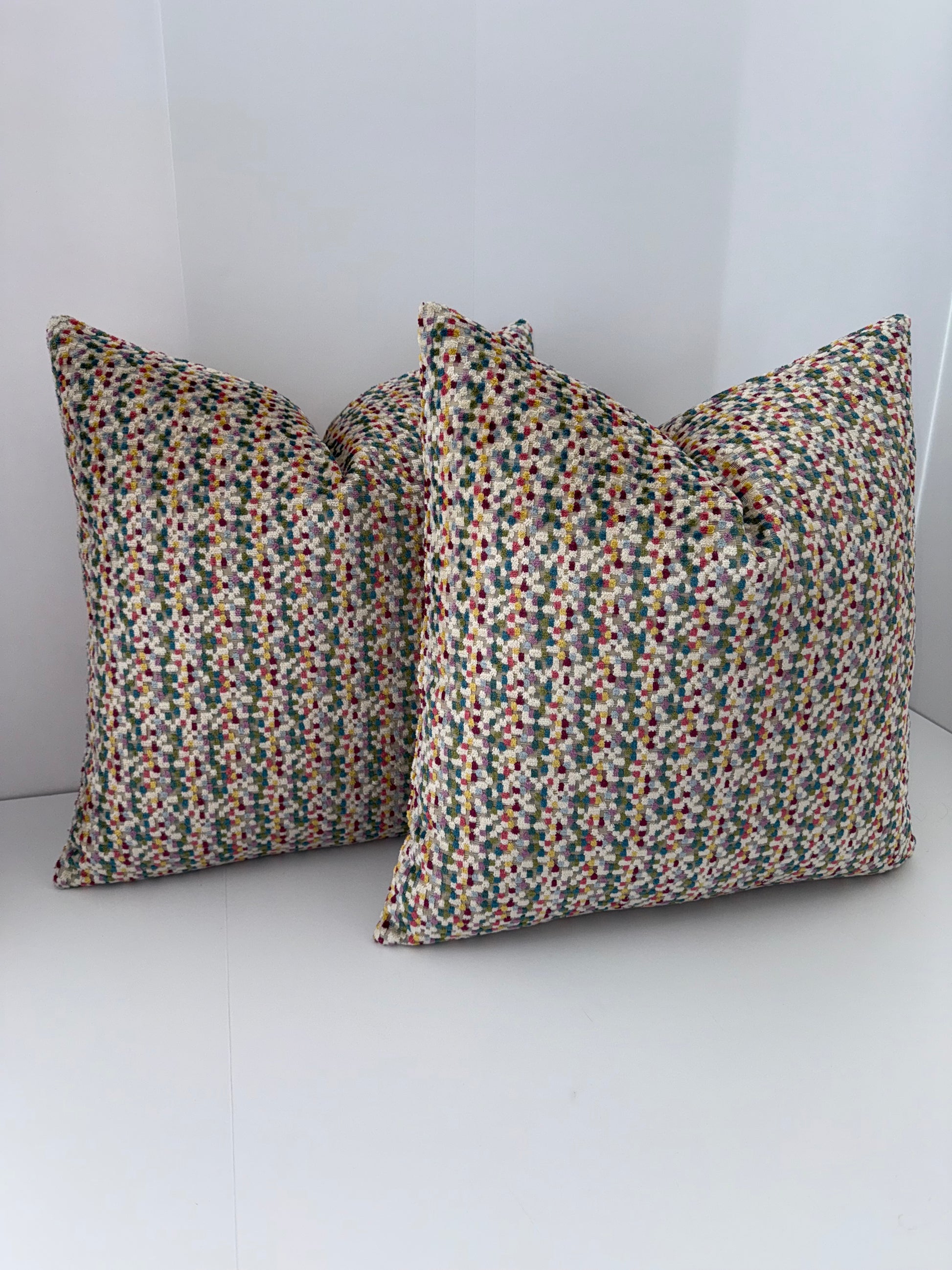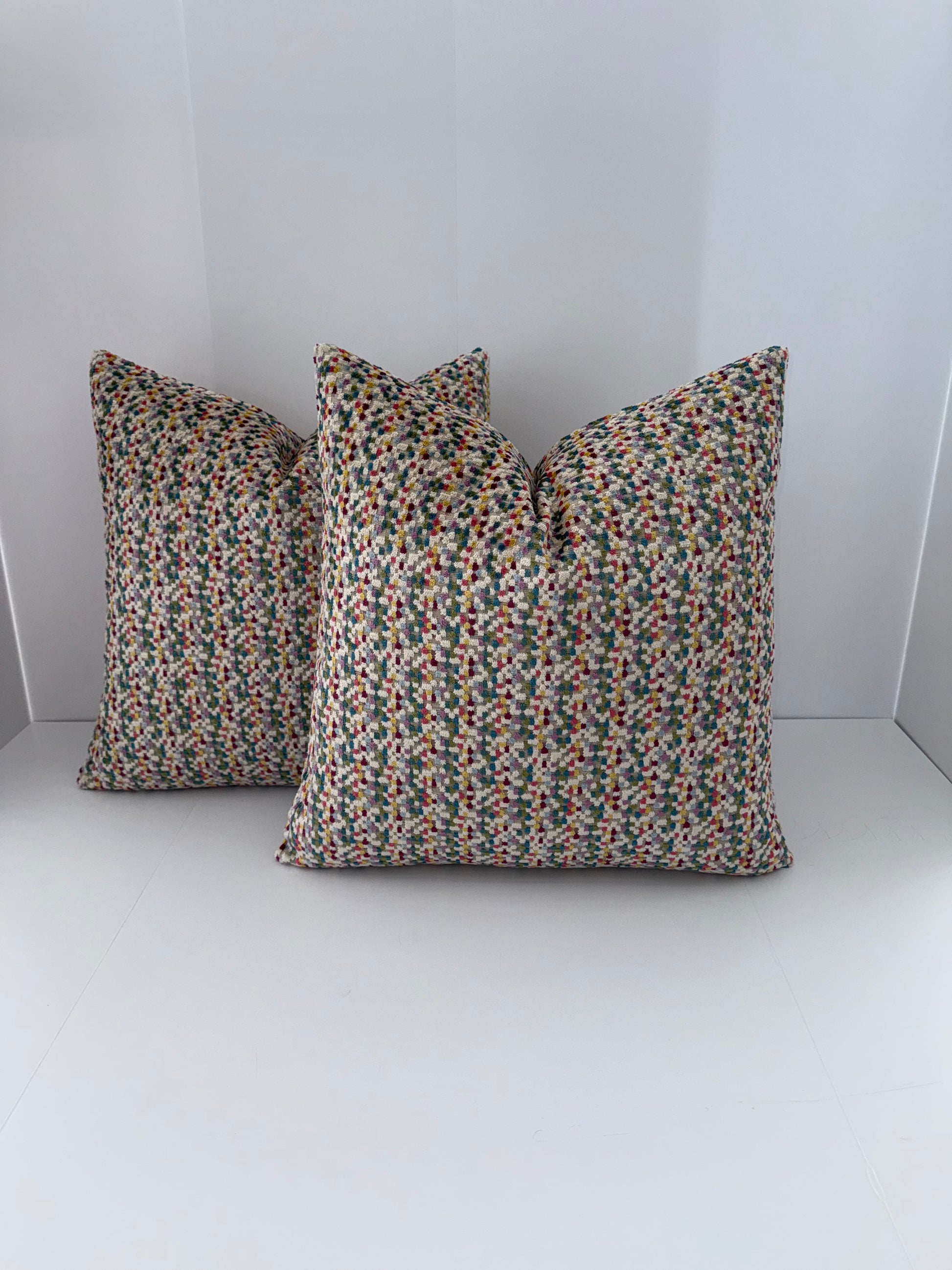 Two 22x22 Multi-Colored Cut Velvet Decorative Pillows