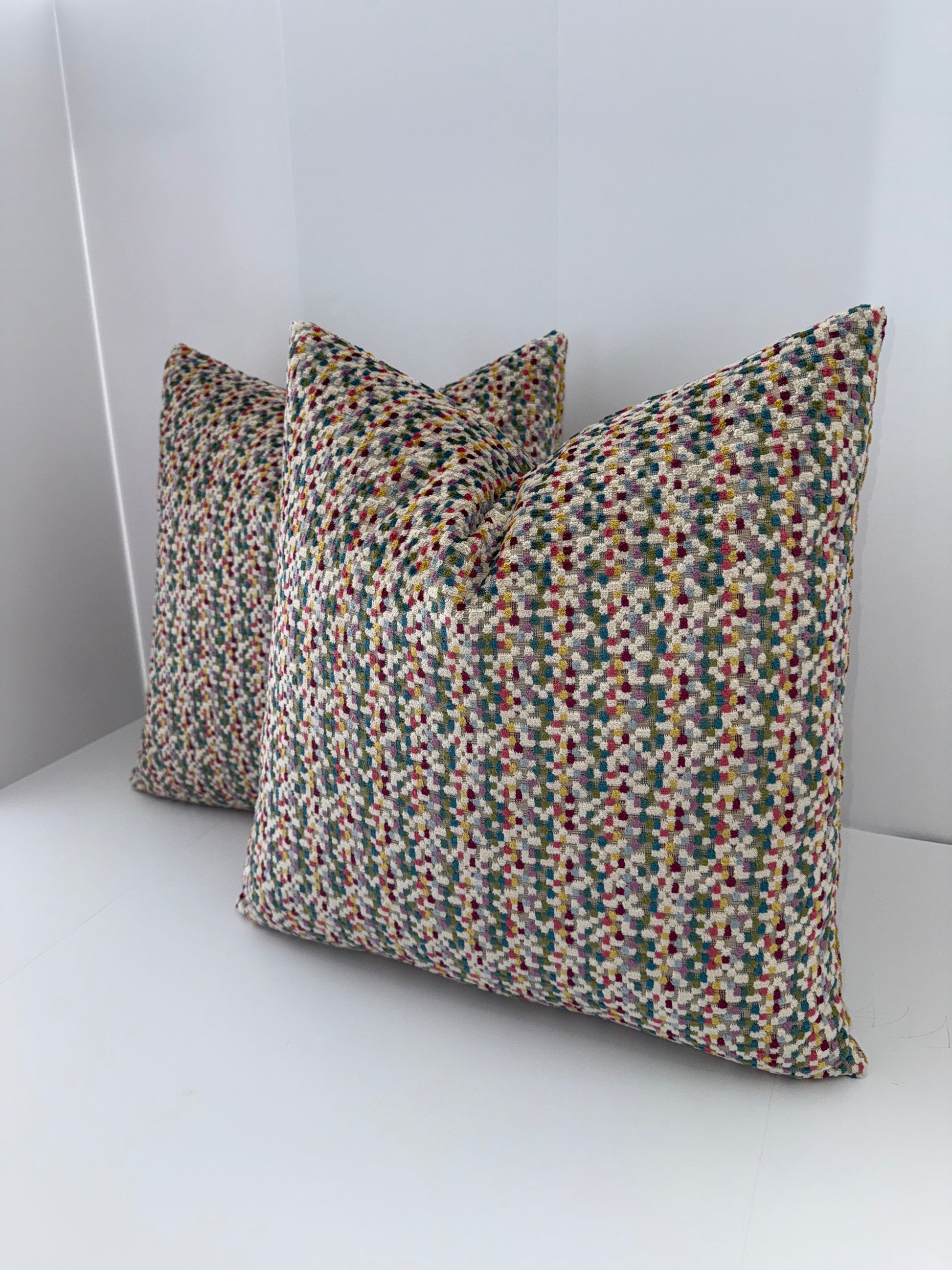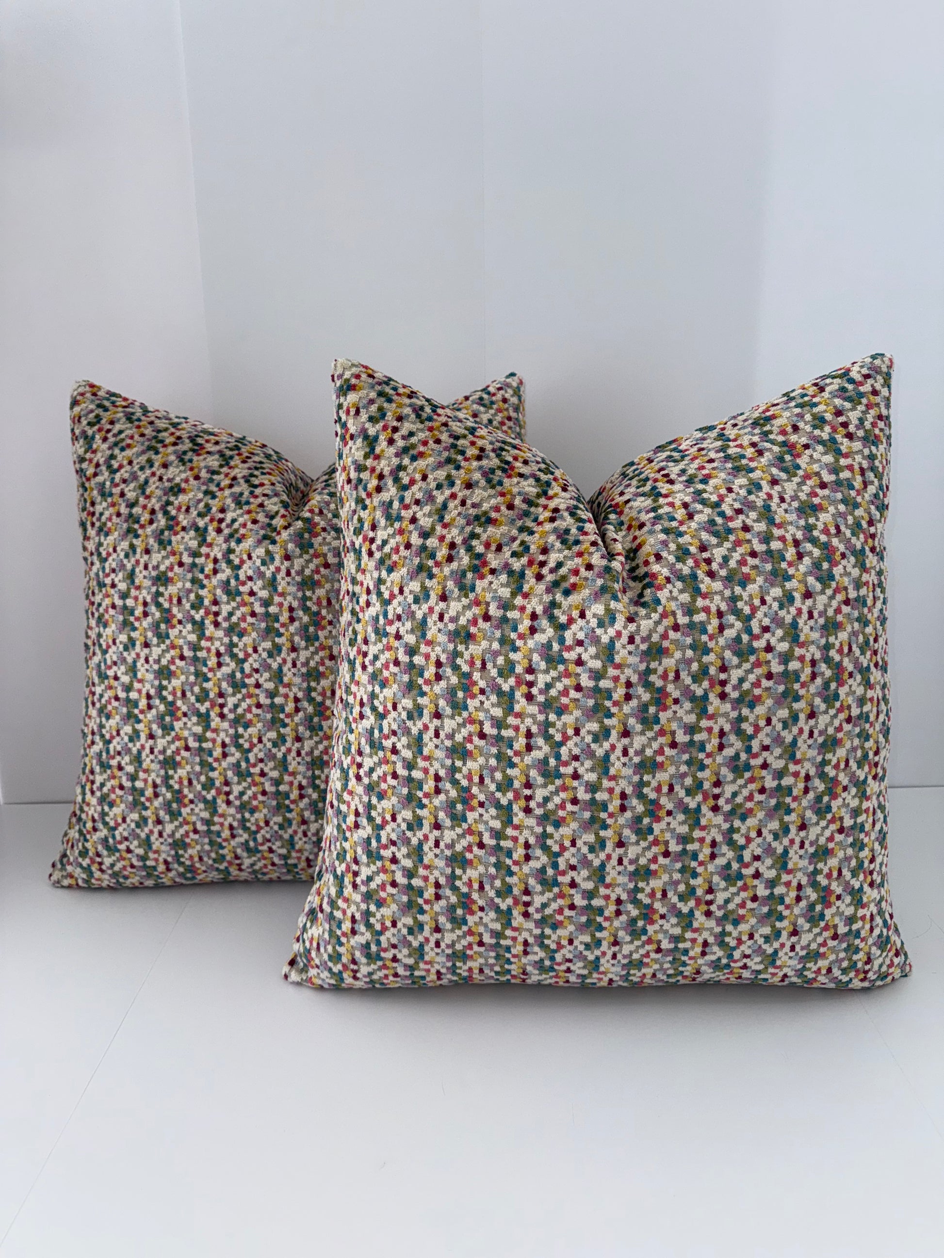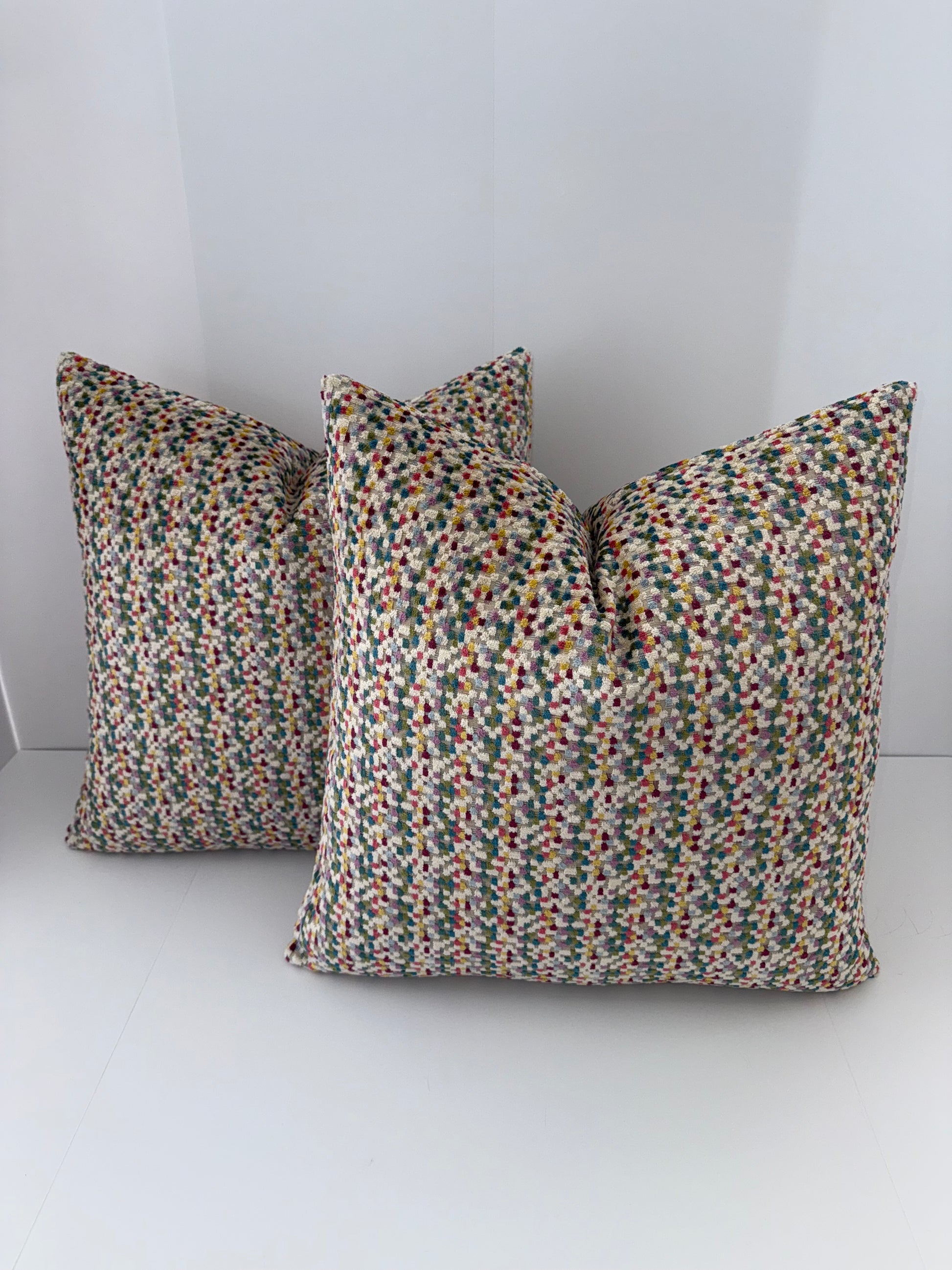 Two 22x22 Multi-Colored Cut Velvet Decorative Pillows