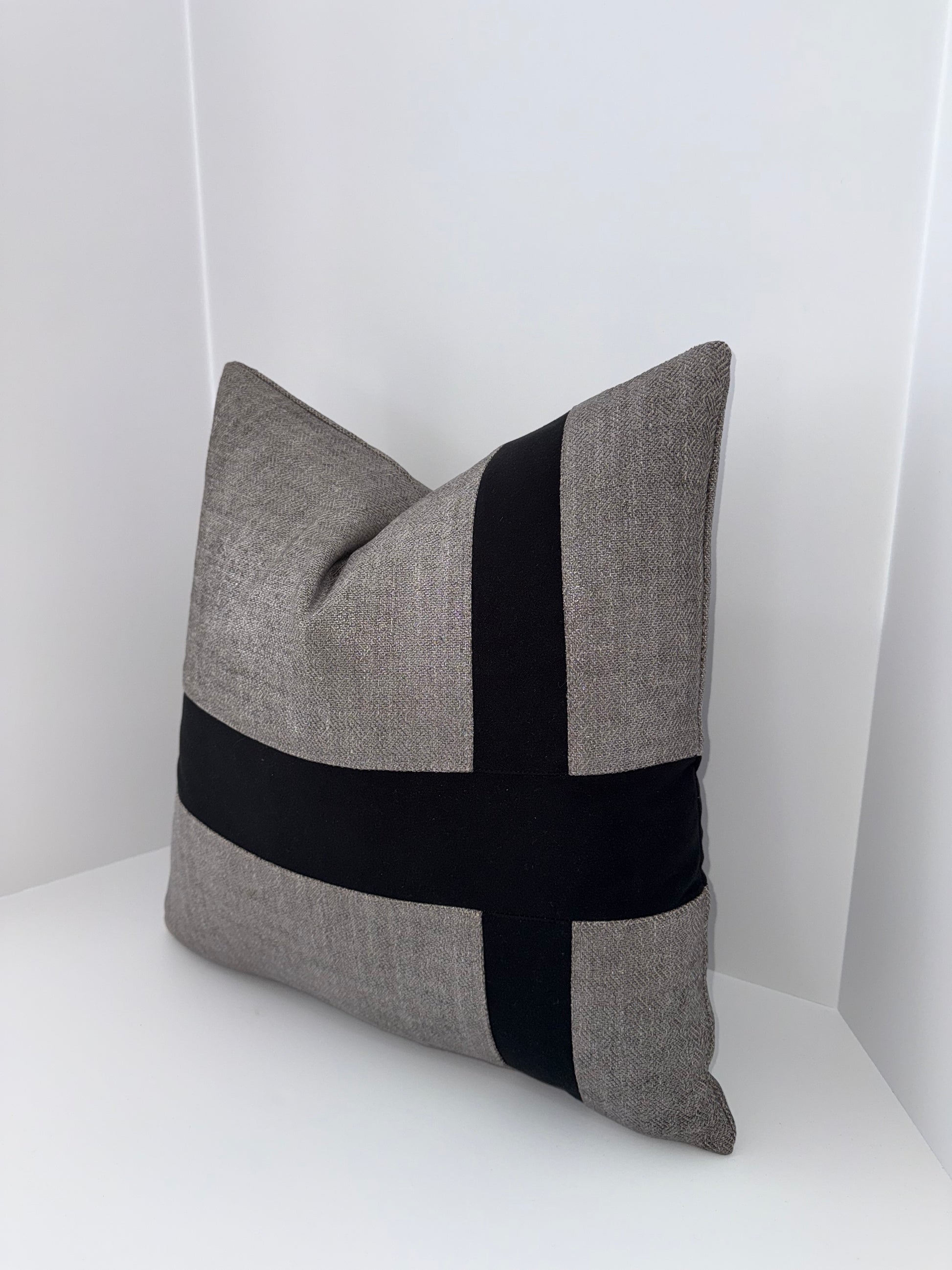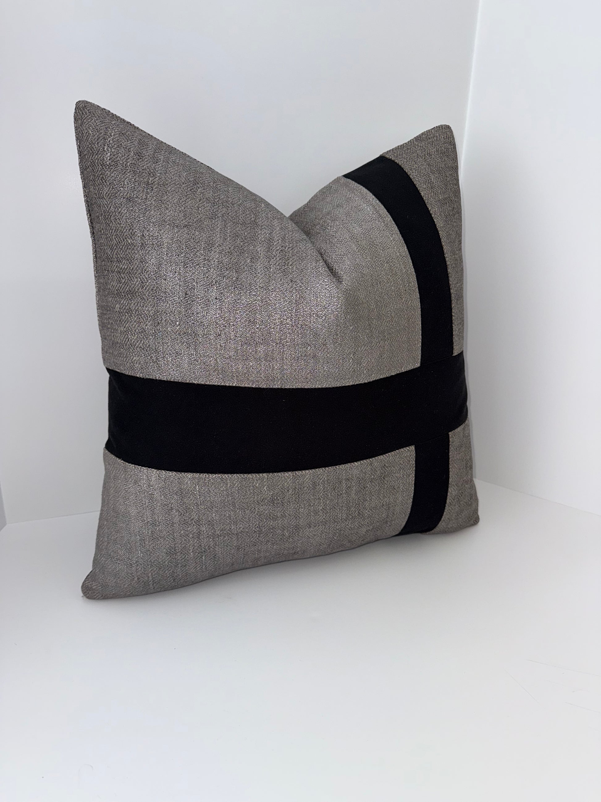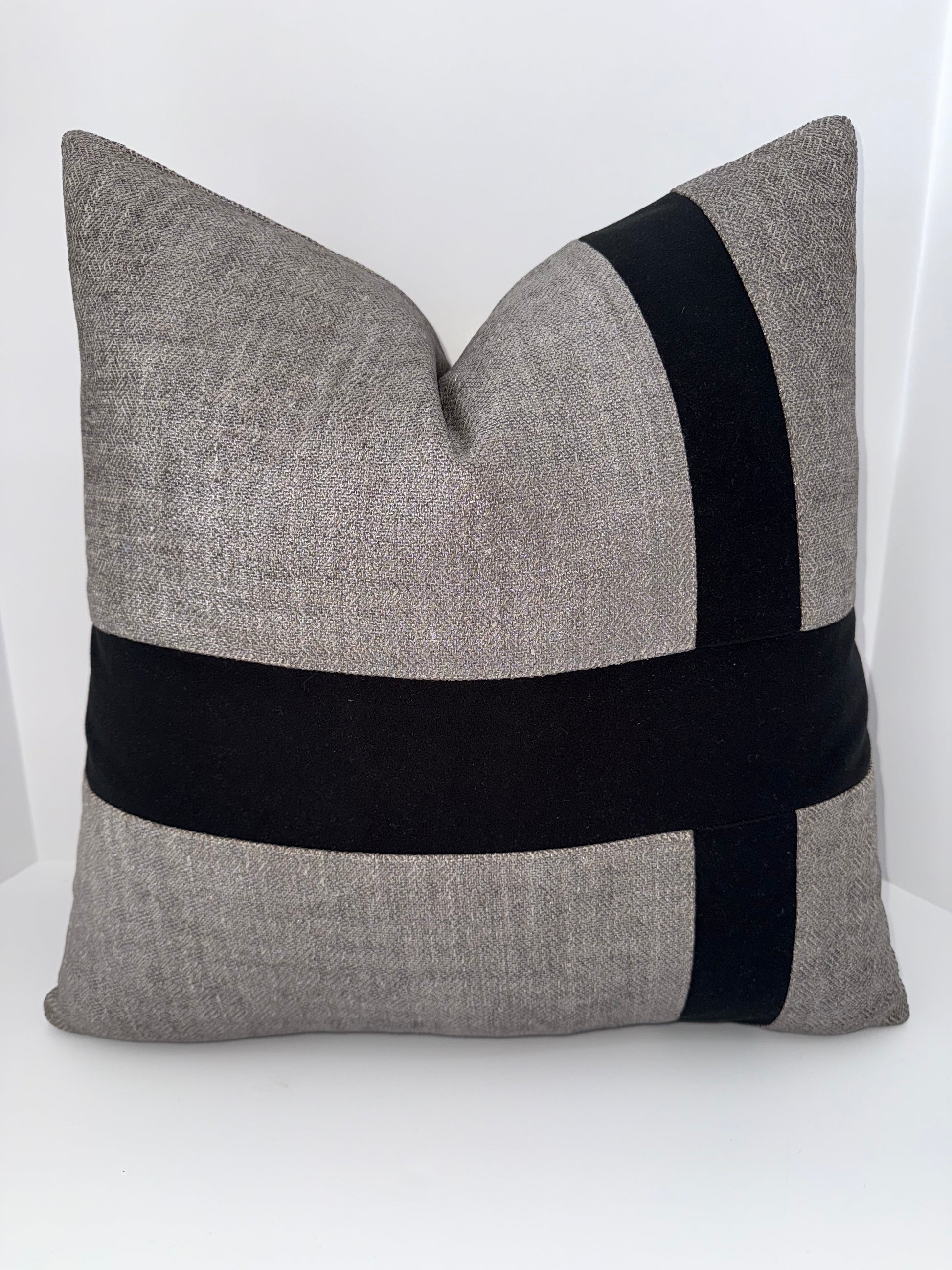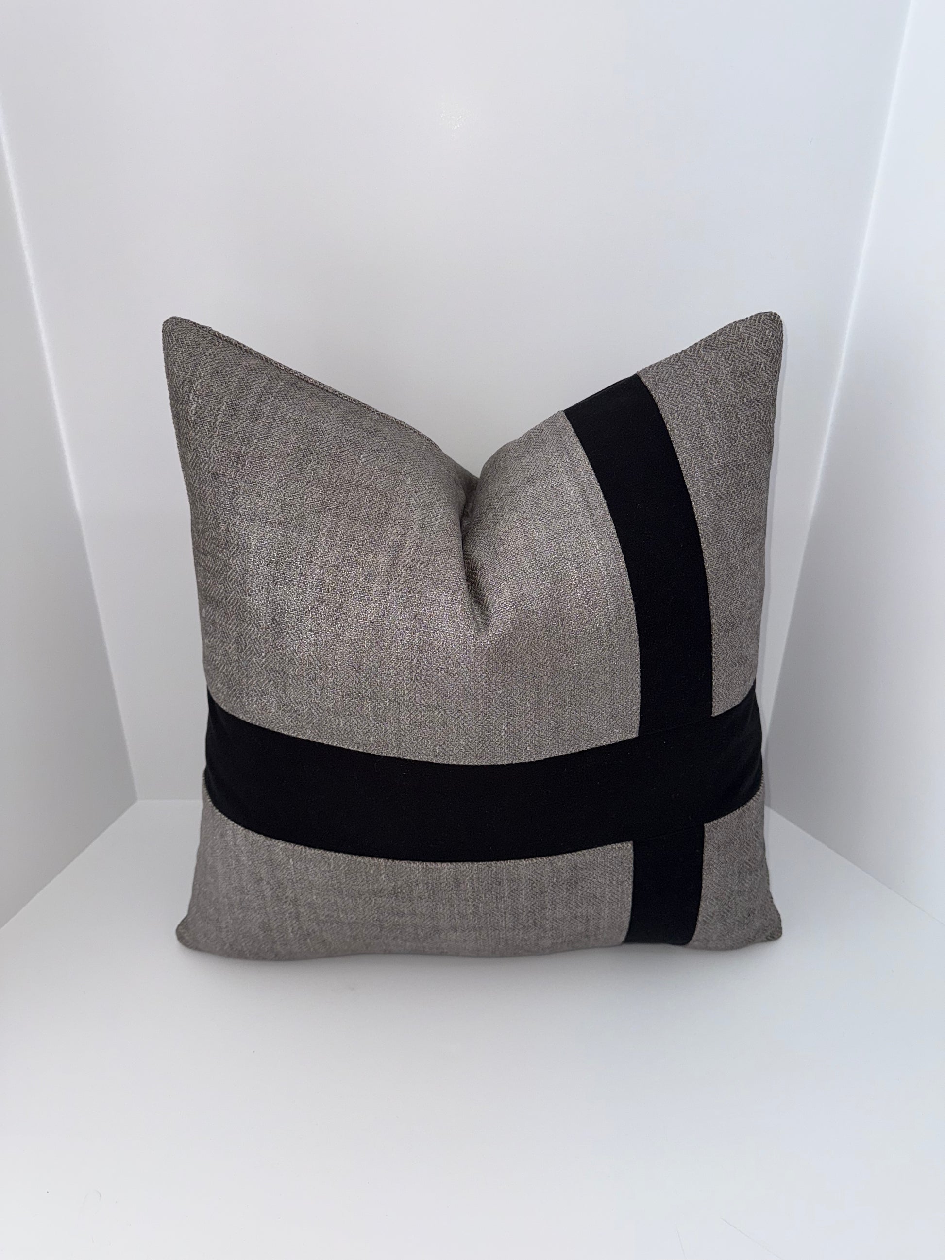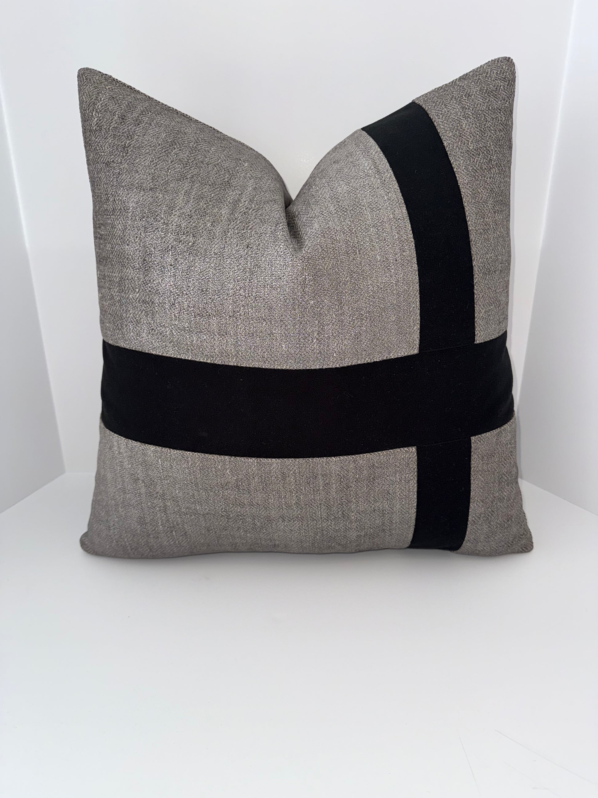 One 20x20 Gray and Black Suede inset banding on Coated Linen Decorative Pillow