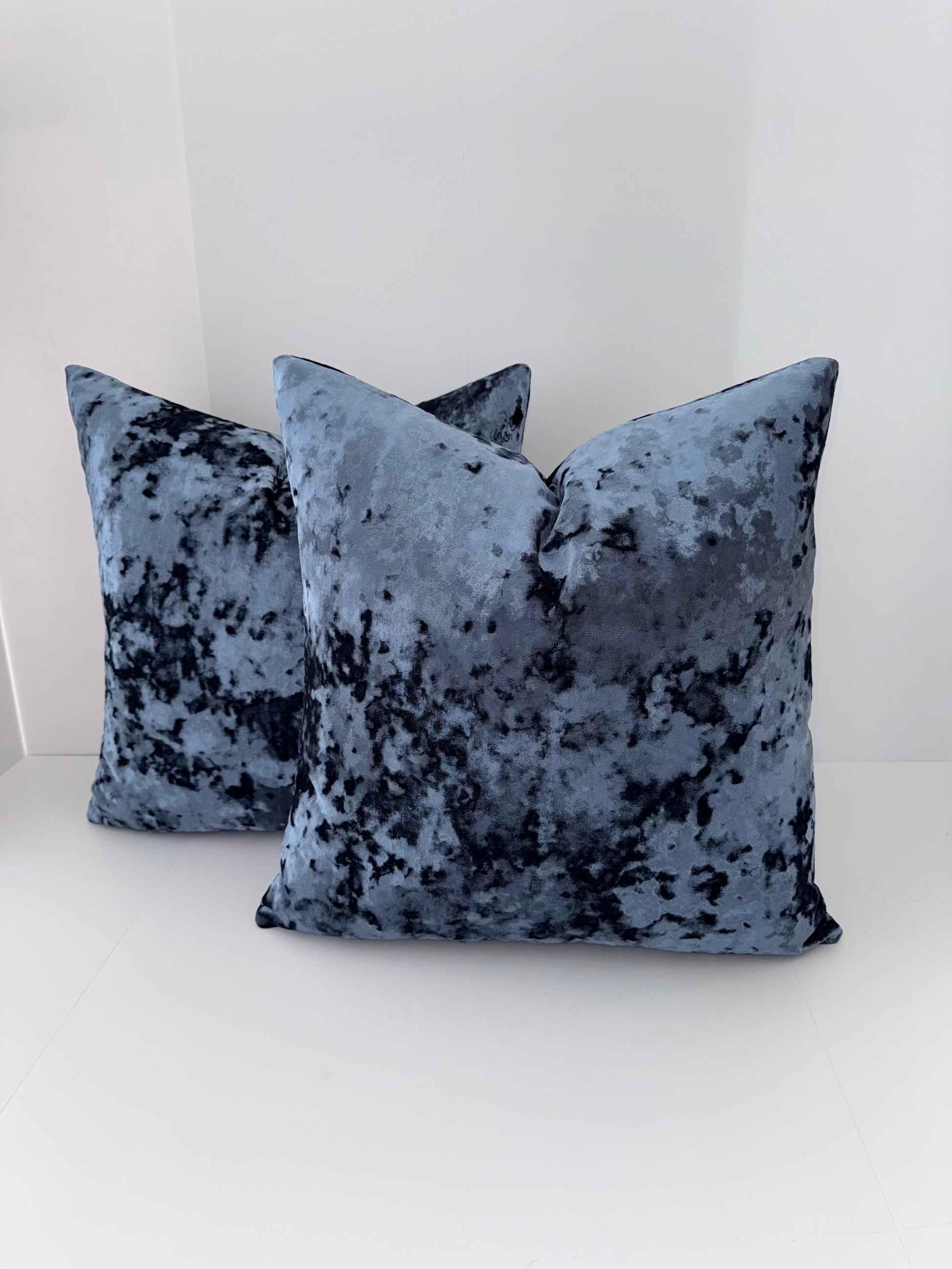 Two 22x22 Blue Crushed Velvet Decorative Pillows