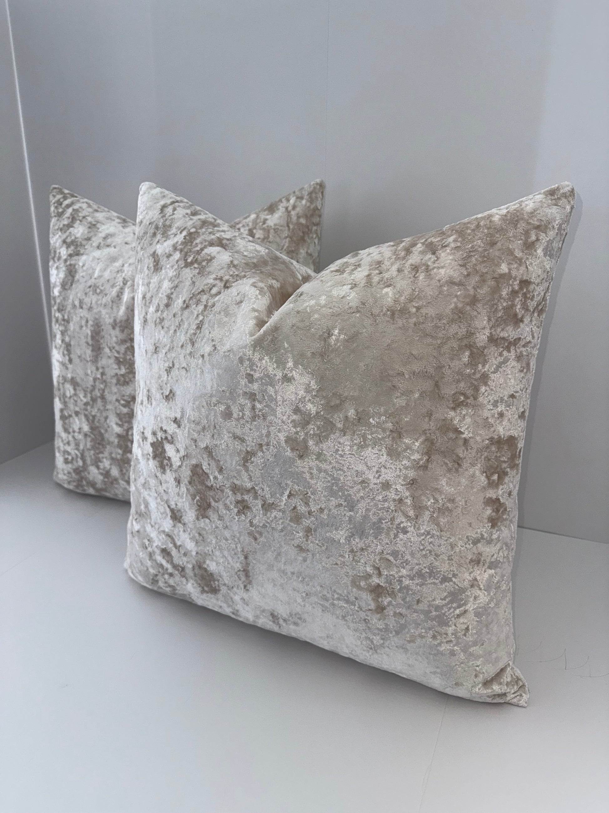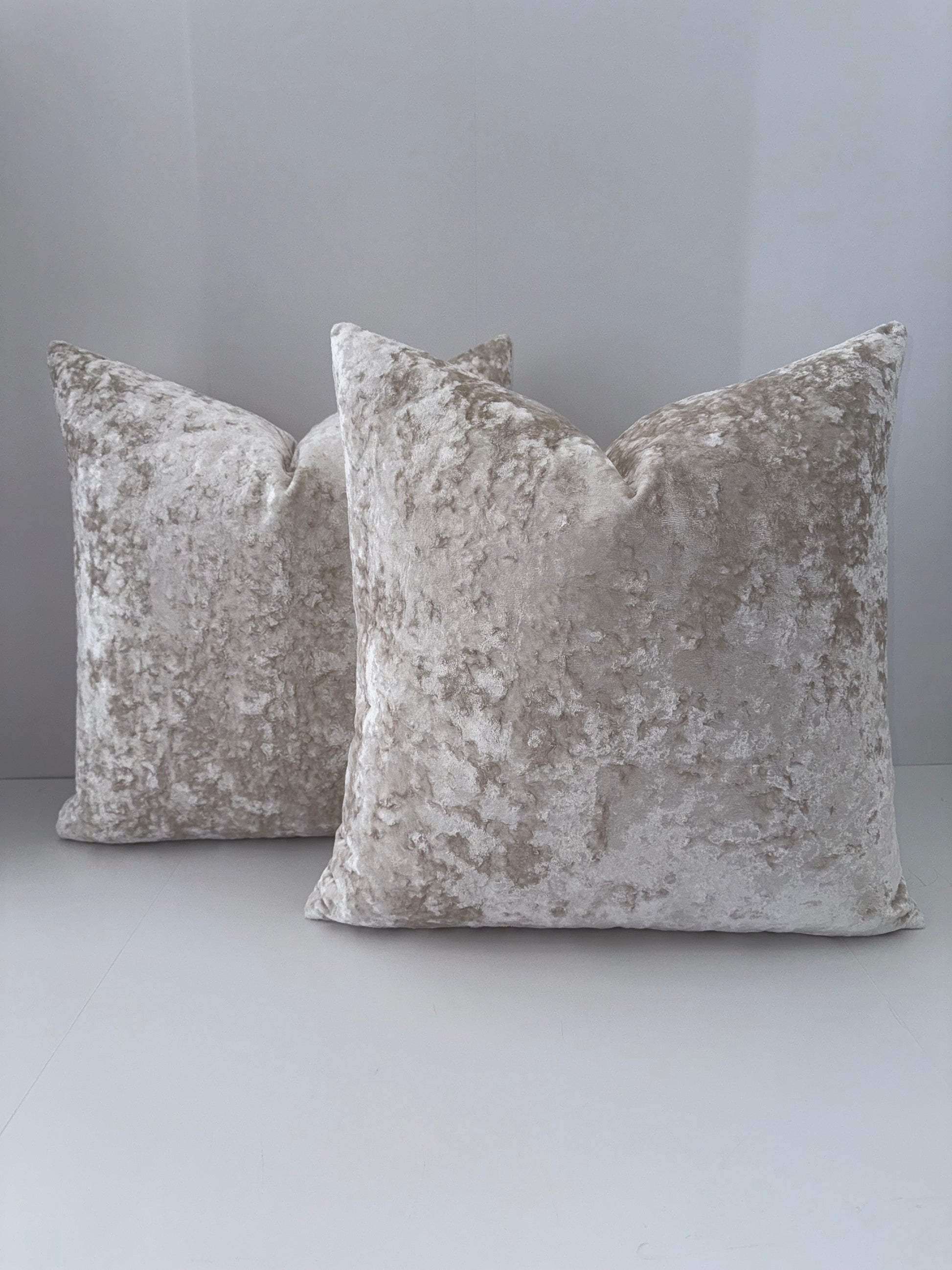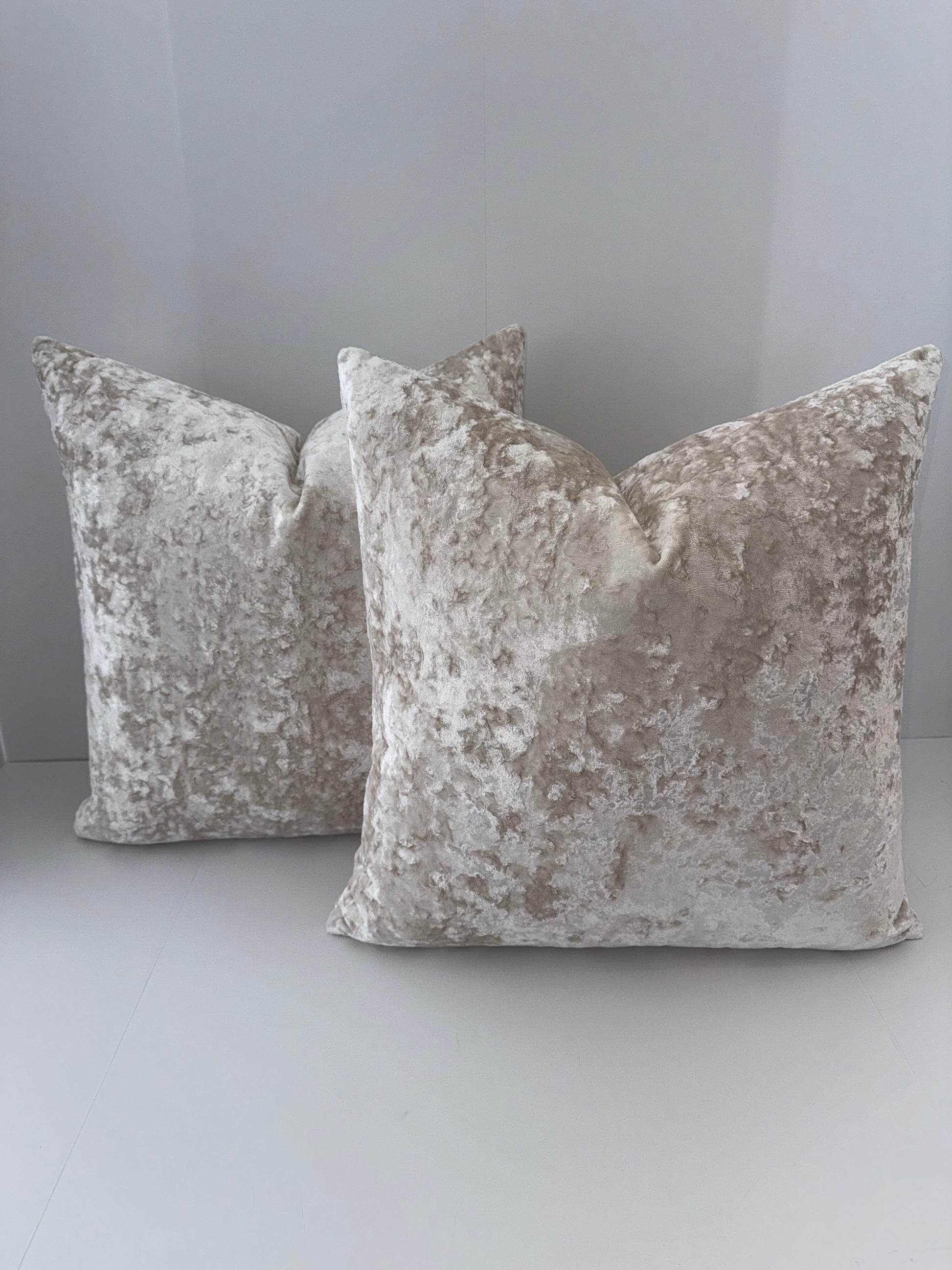 Two 22x22 Ivory Crushed Velvet Decorative Pillows