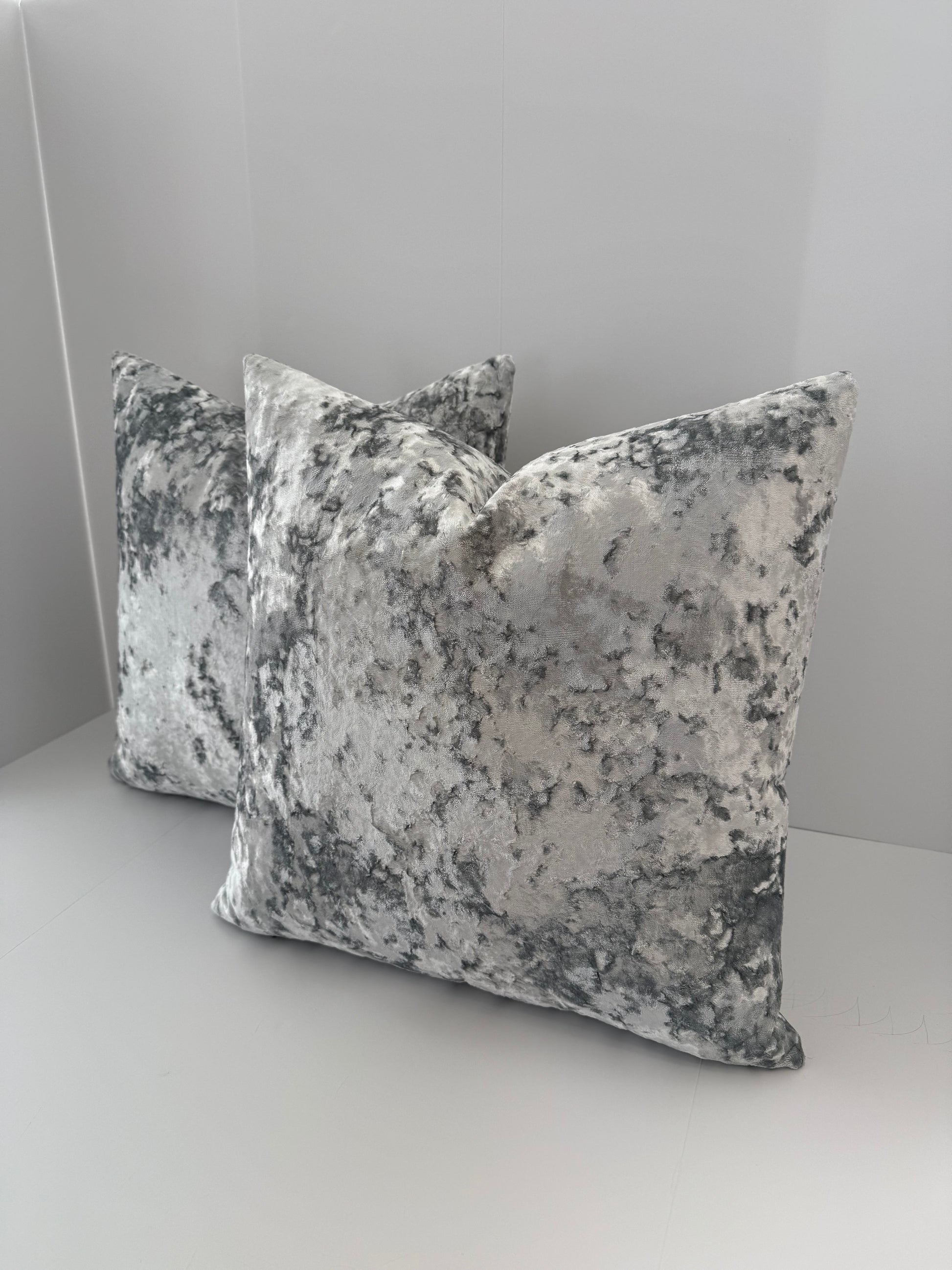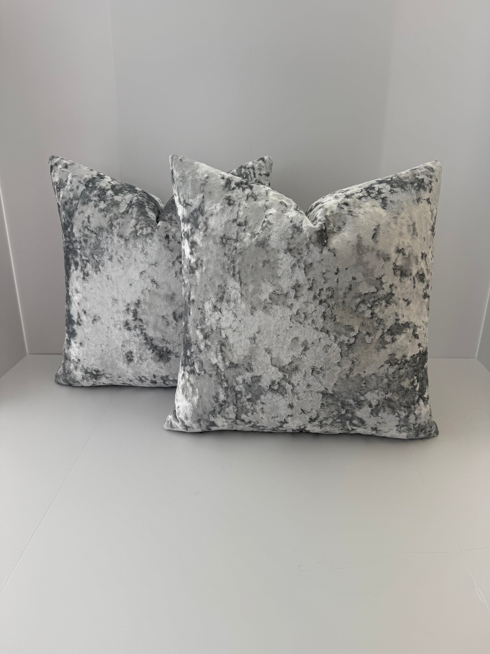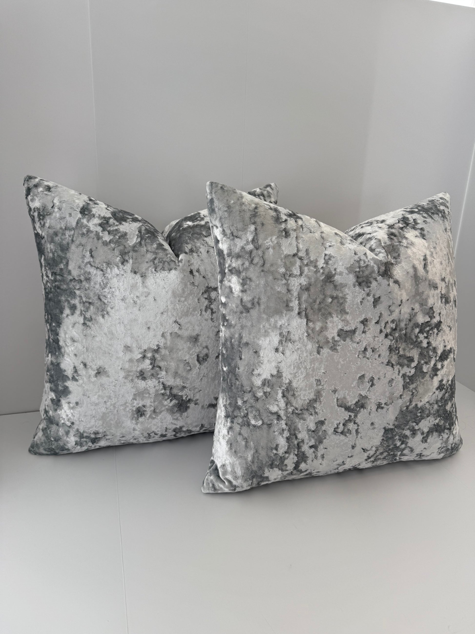 Two 22x22 Silver Blue Crushed Velvet Decorative Pillows