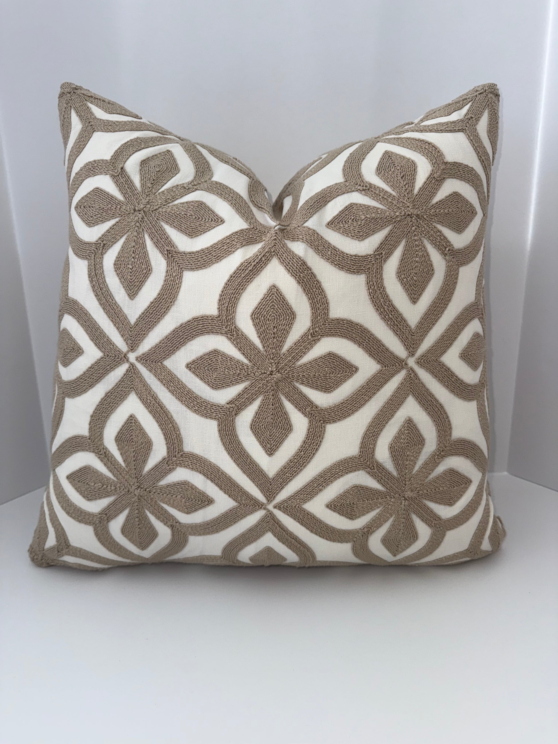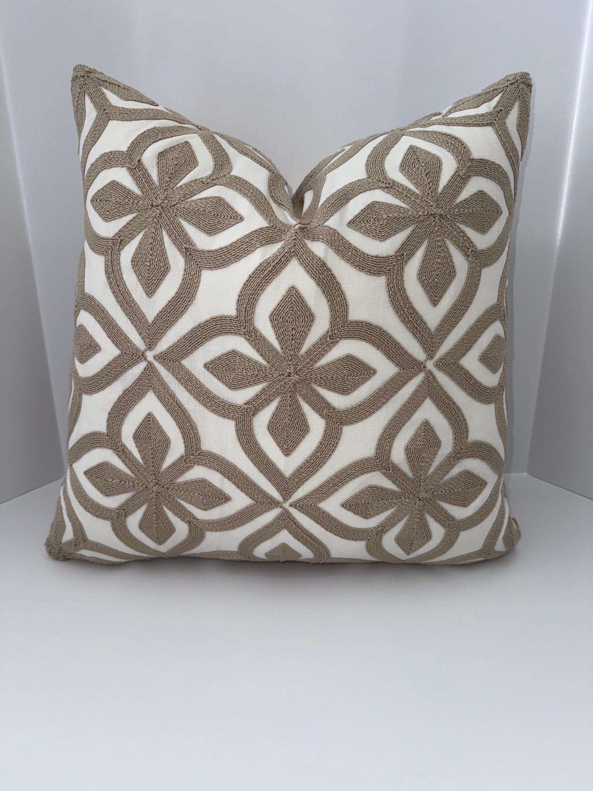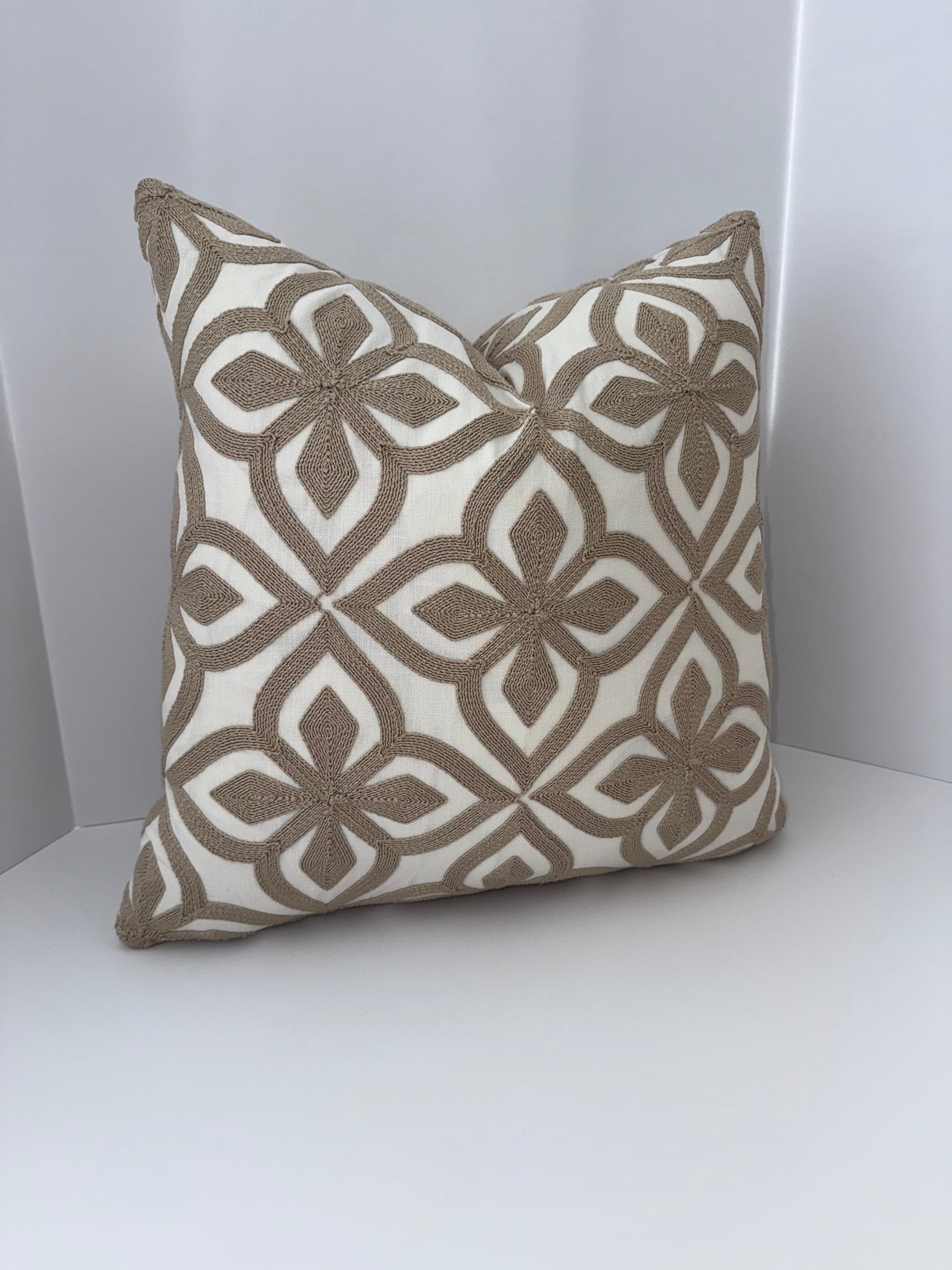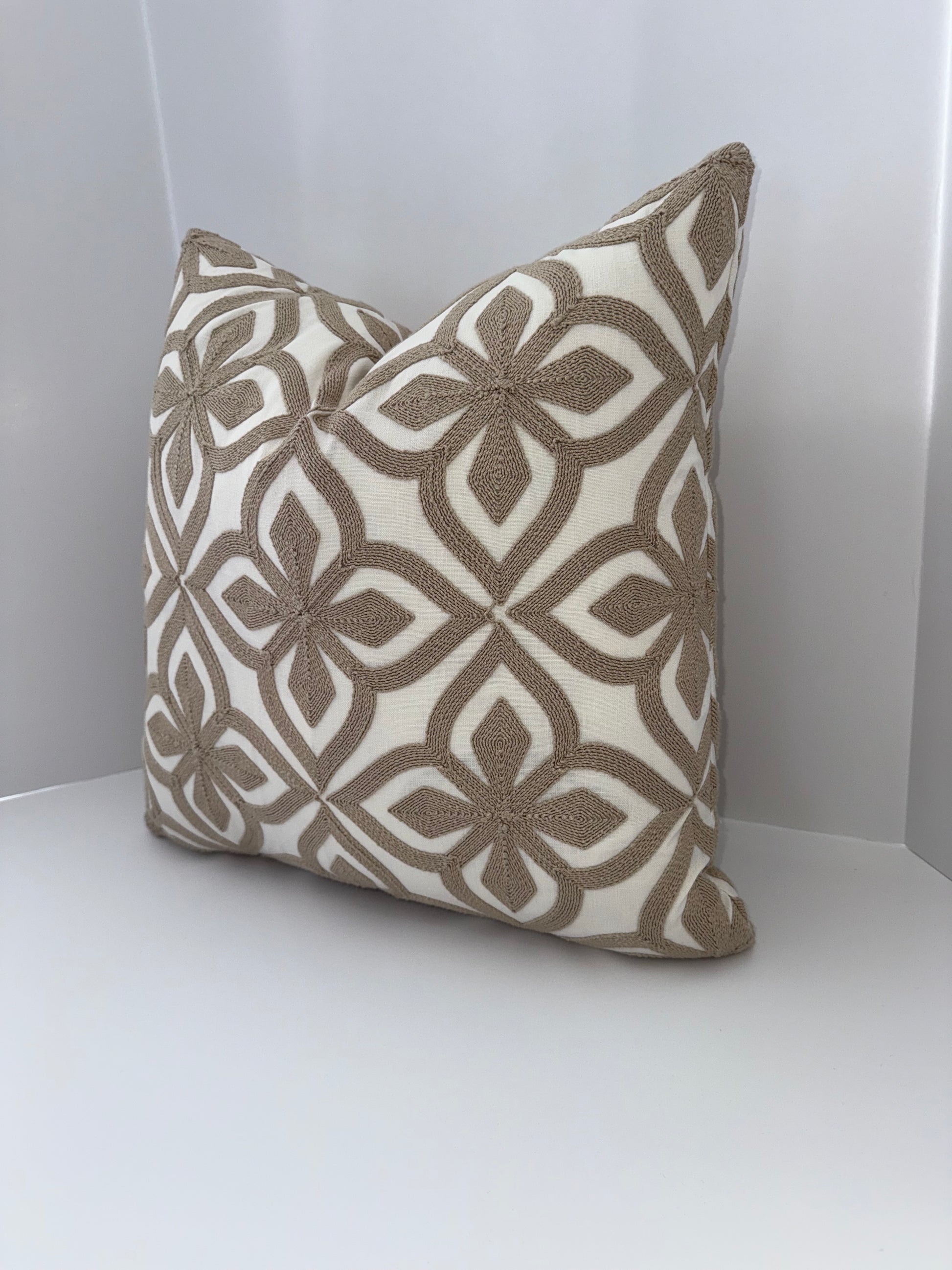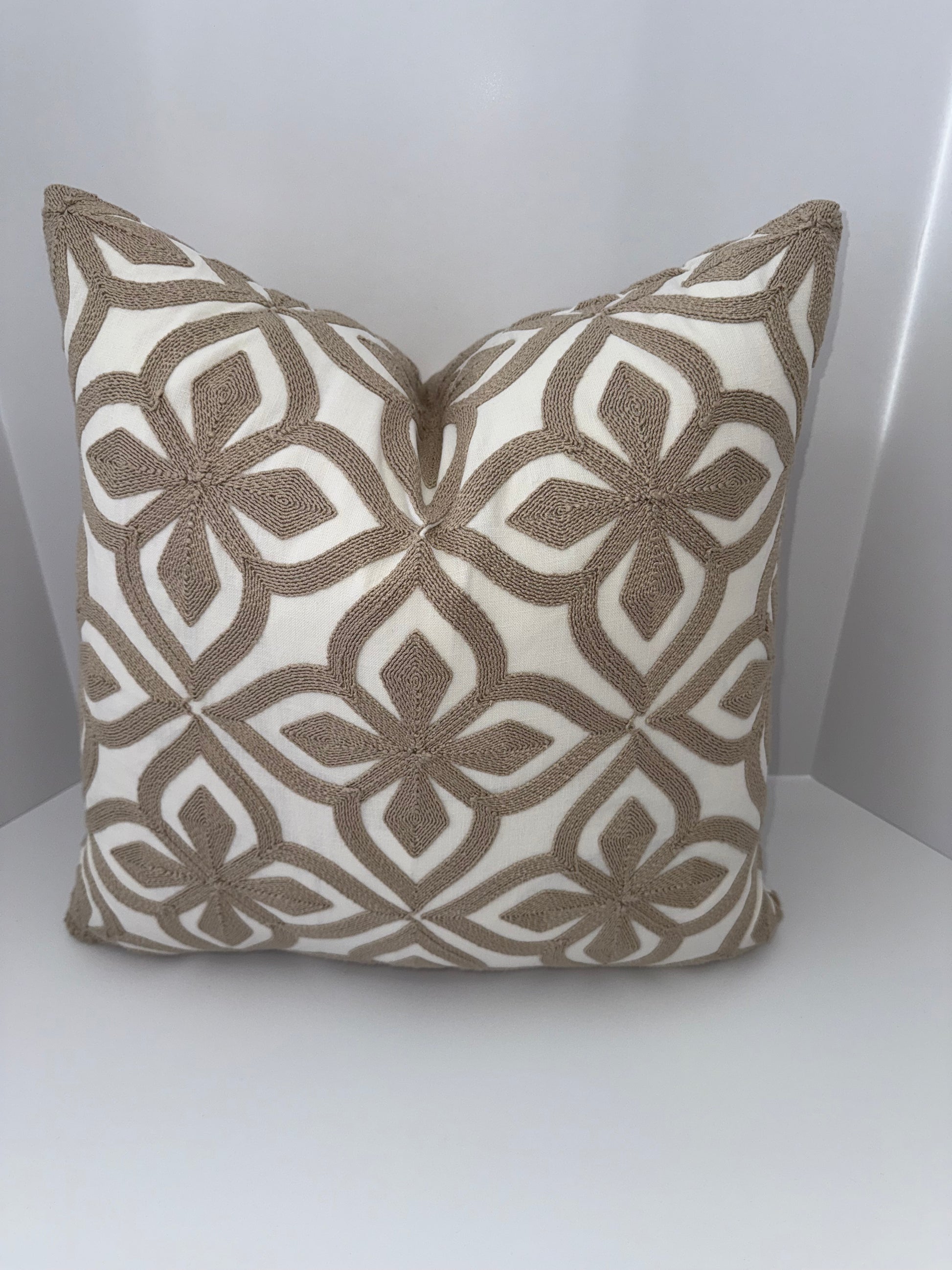 One 20x20 White and Gold Embroidered Decorative Pillow