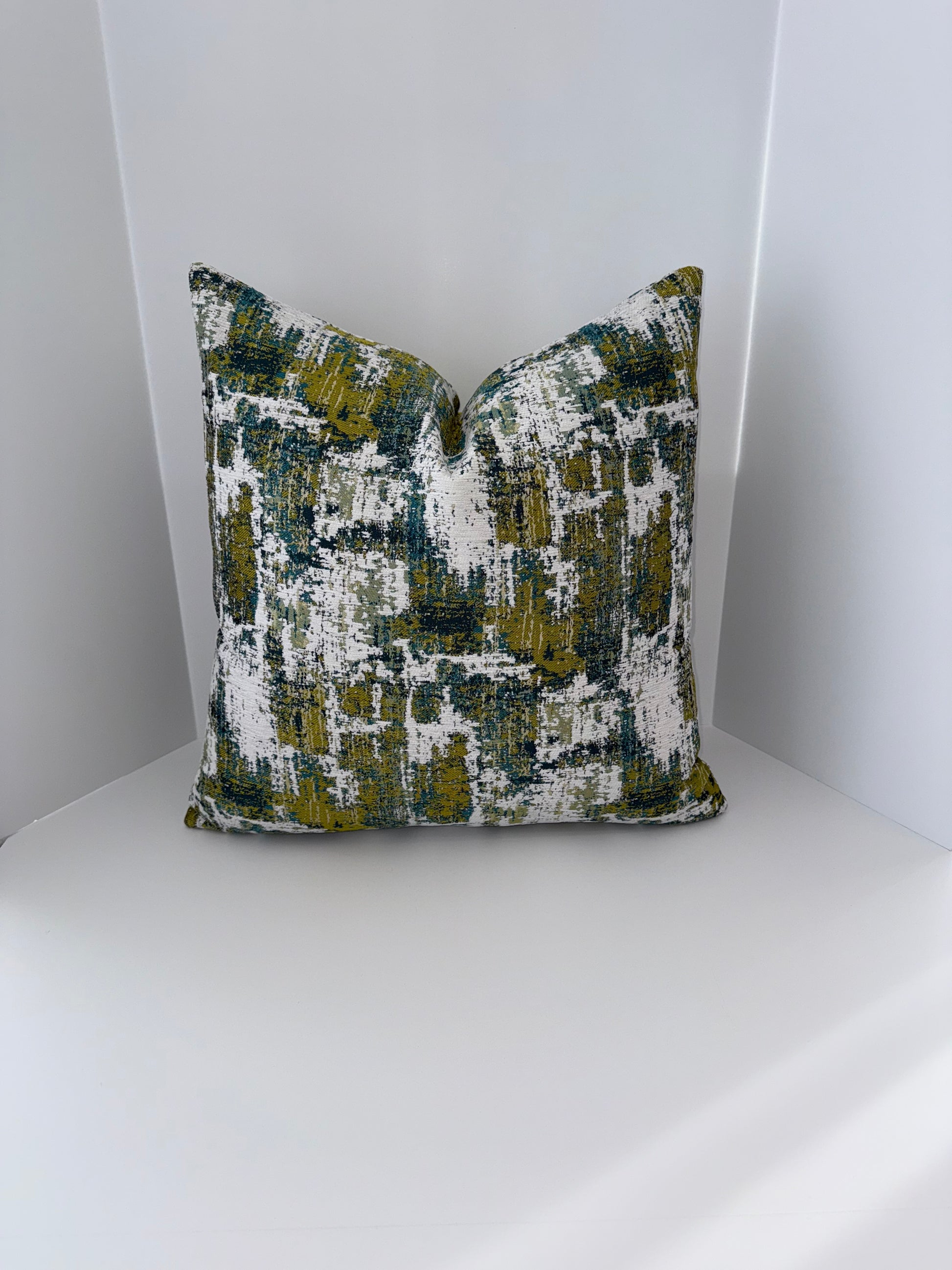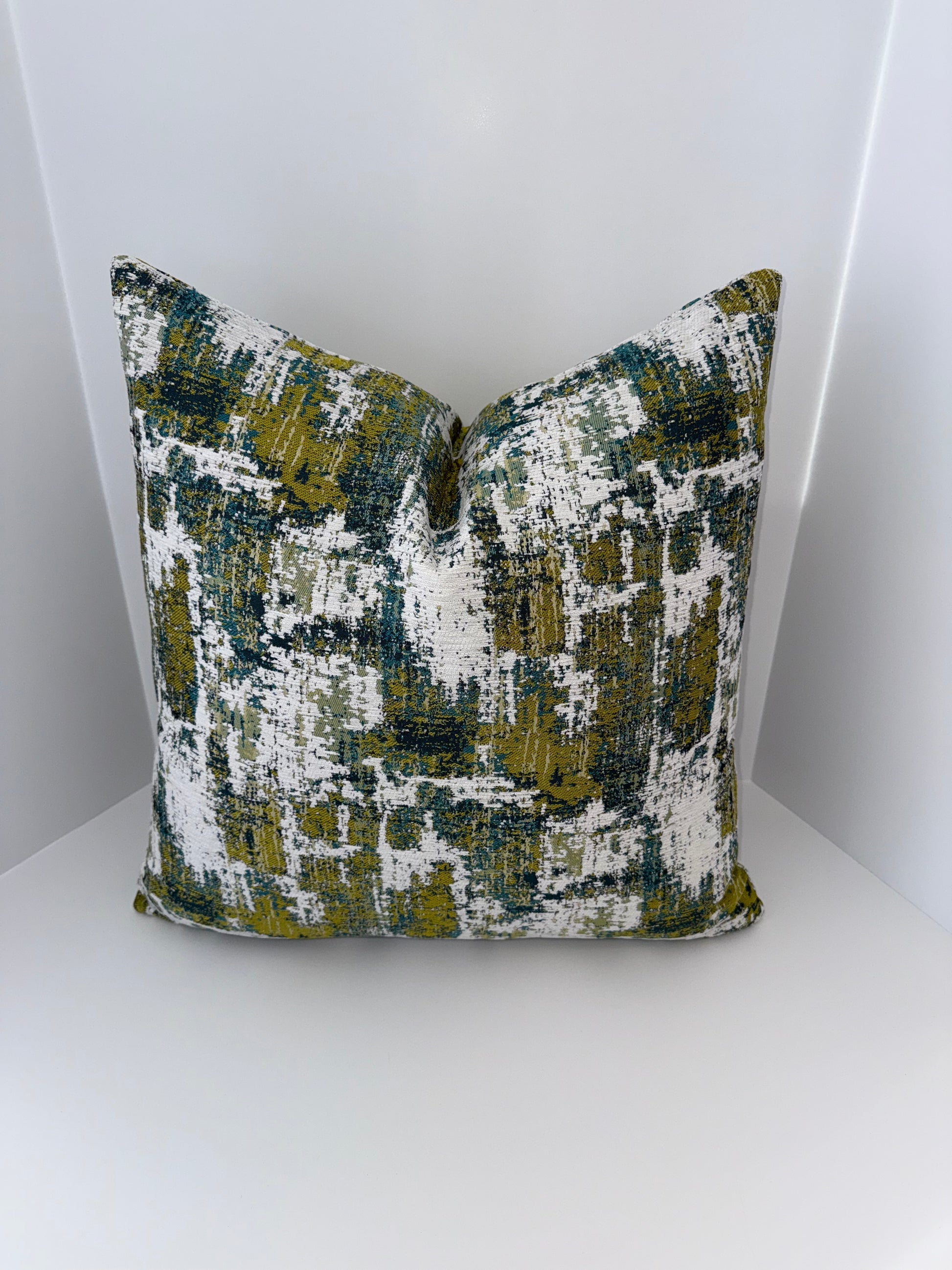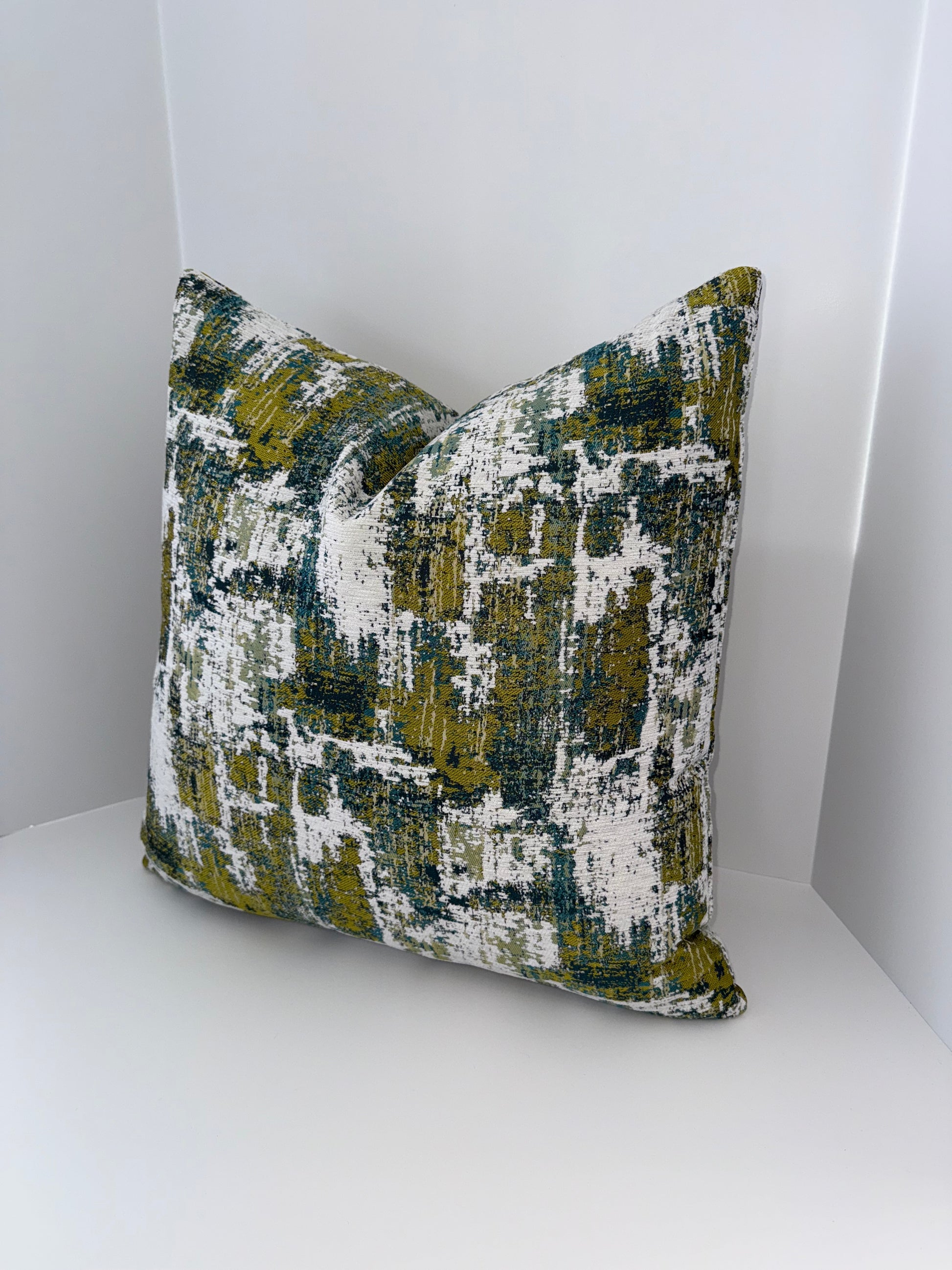 One 22x22 Green and White Chenille and Linen Decorative Pillow