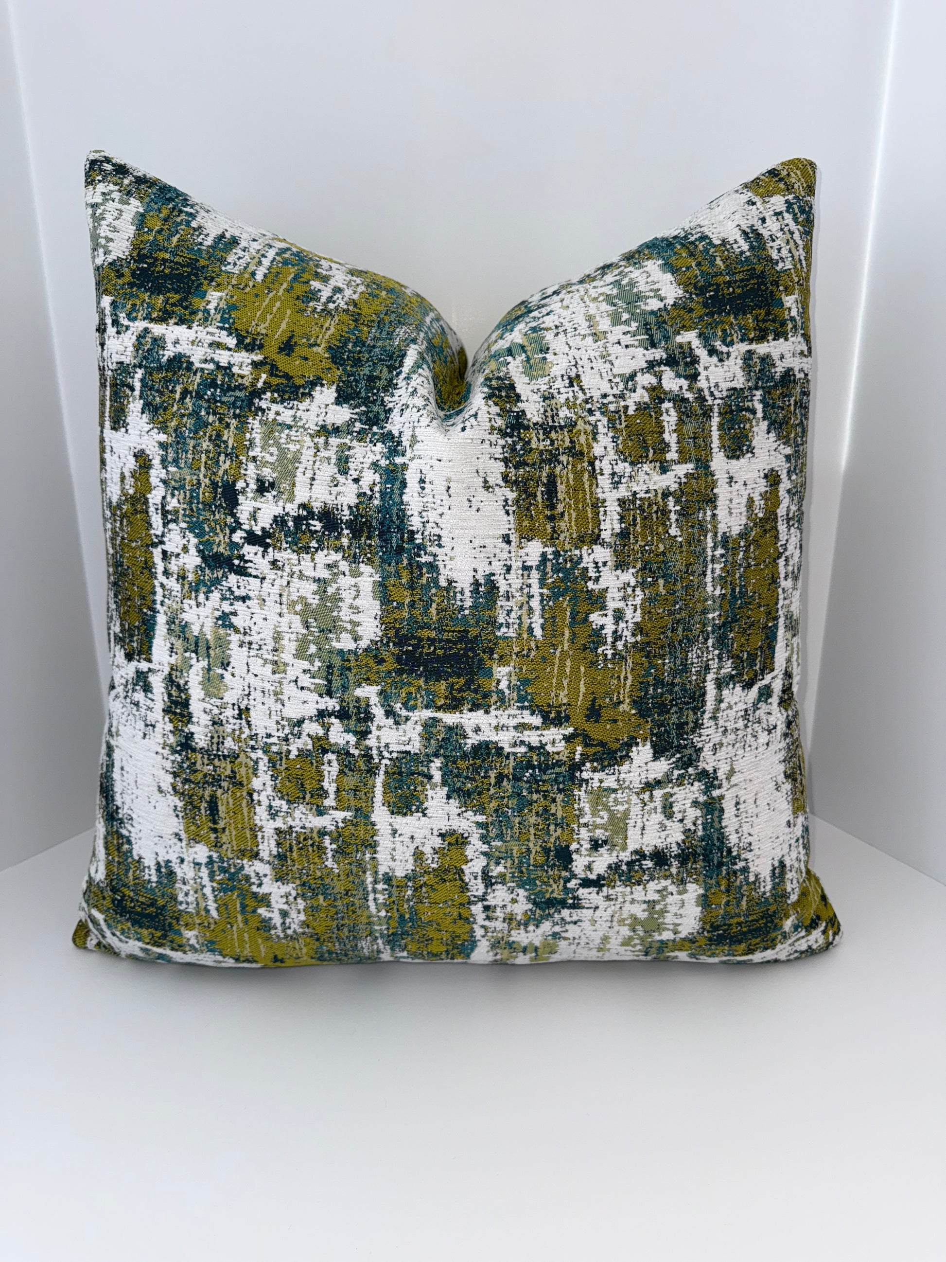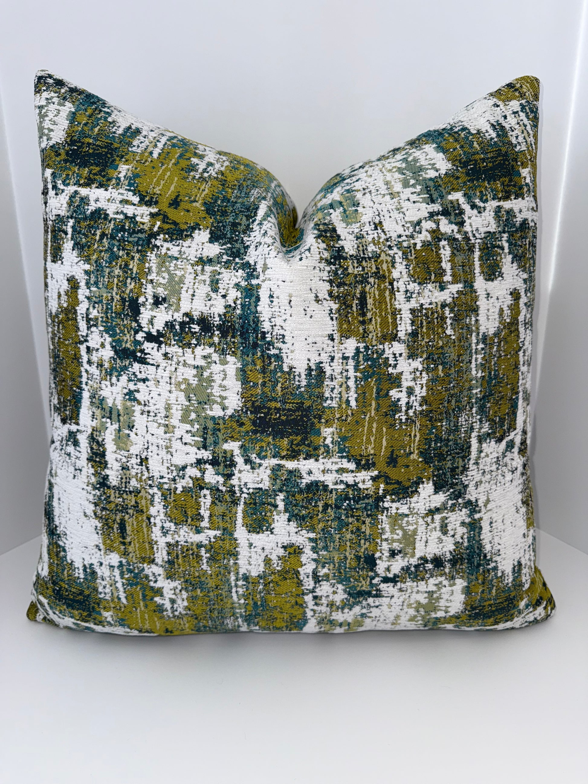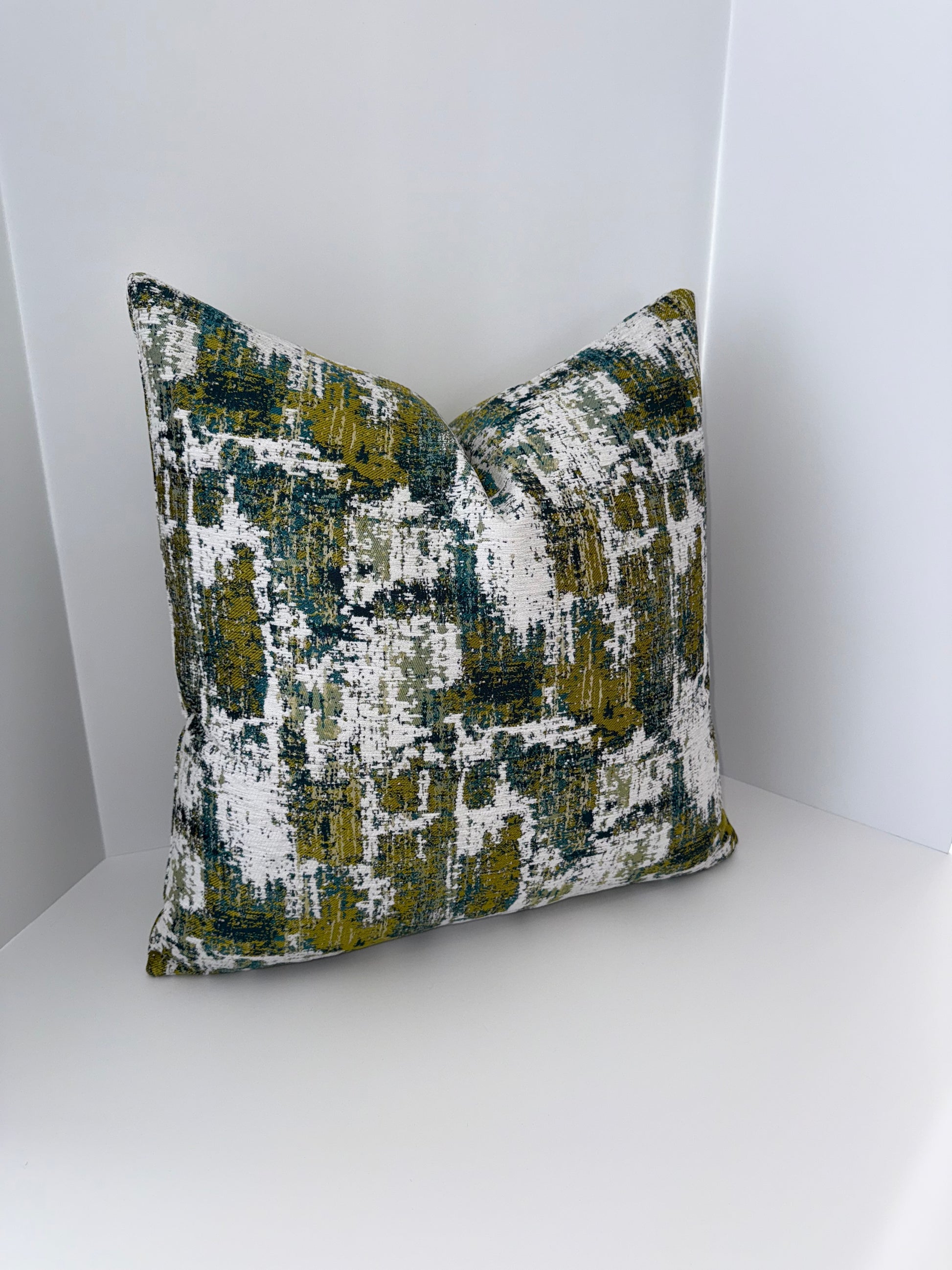 One 22x22 Green and White Chenille and Linen Decorative Pillow