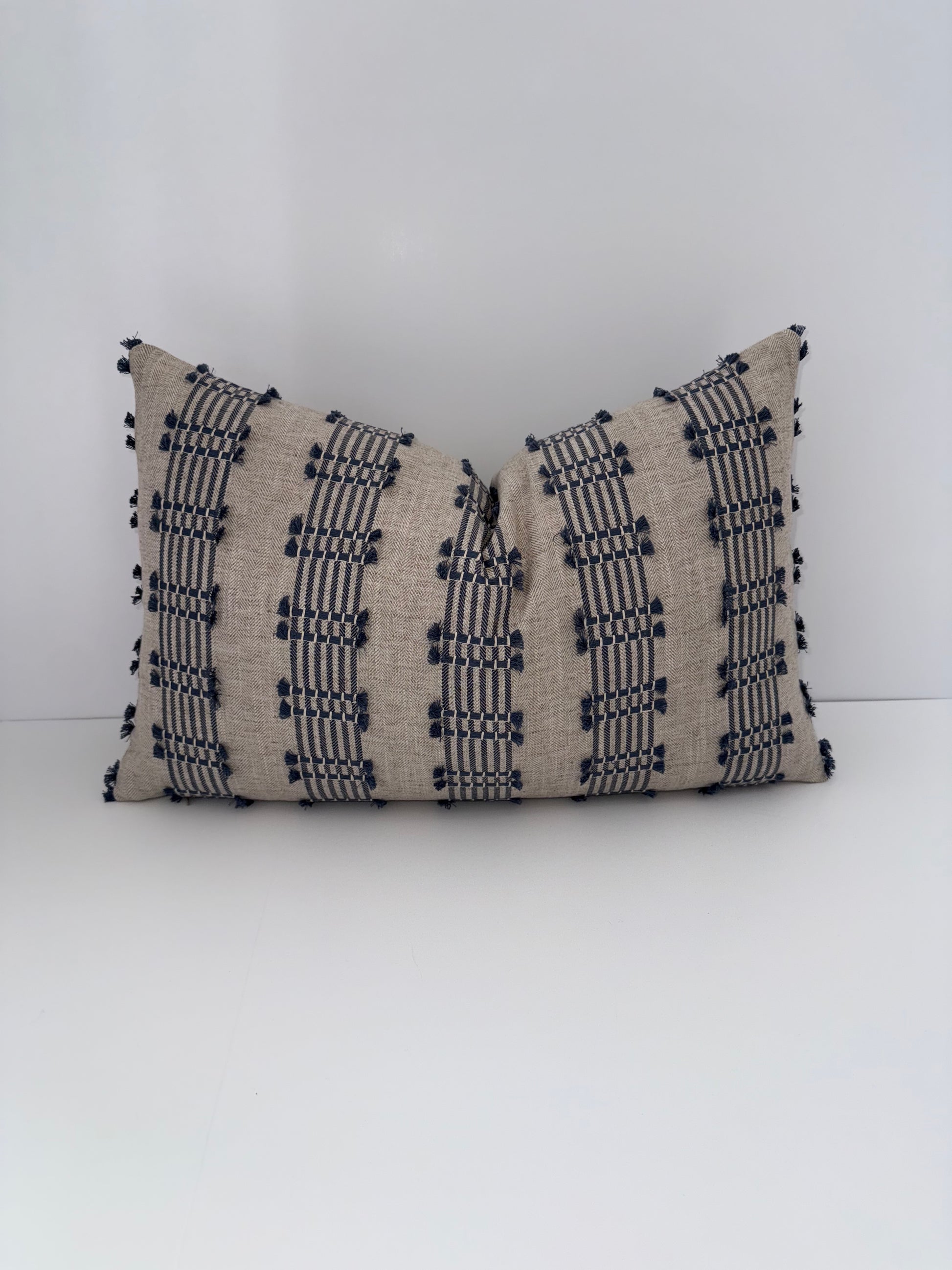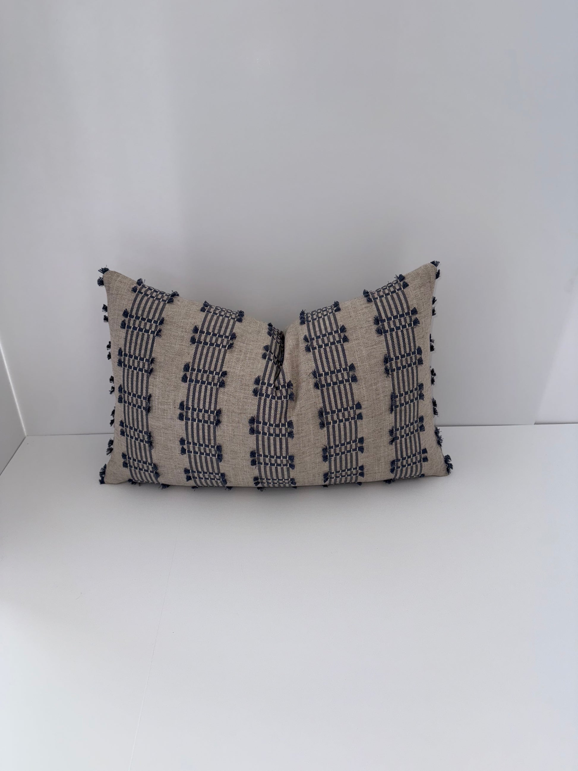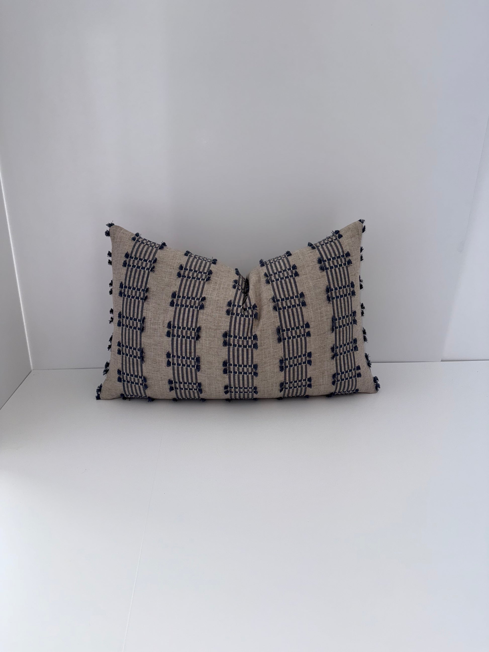 One 14x22 Beige and Blue Embroidered Decorative Pillow