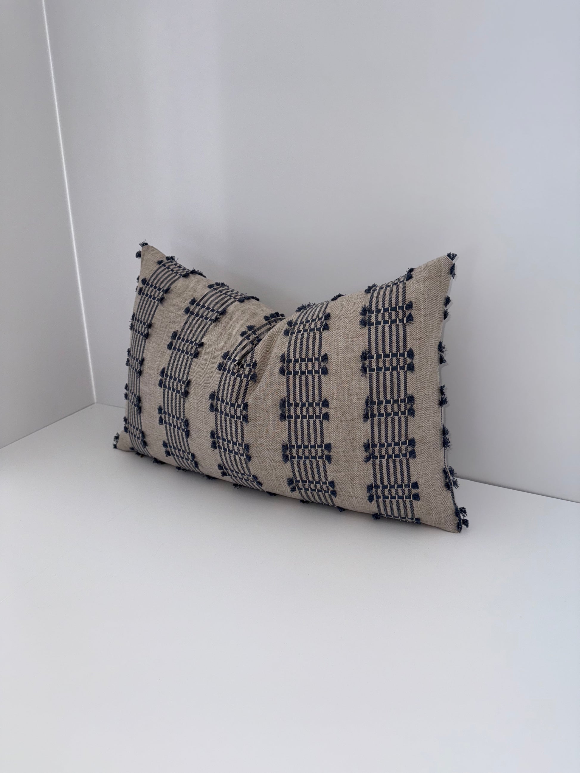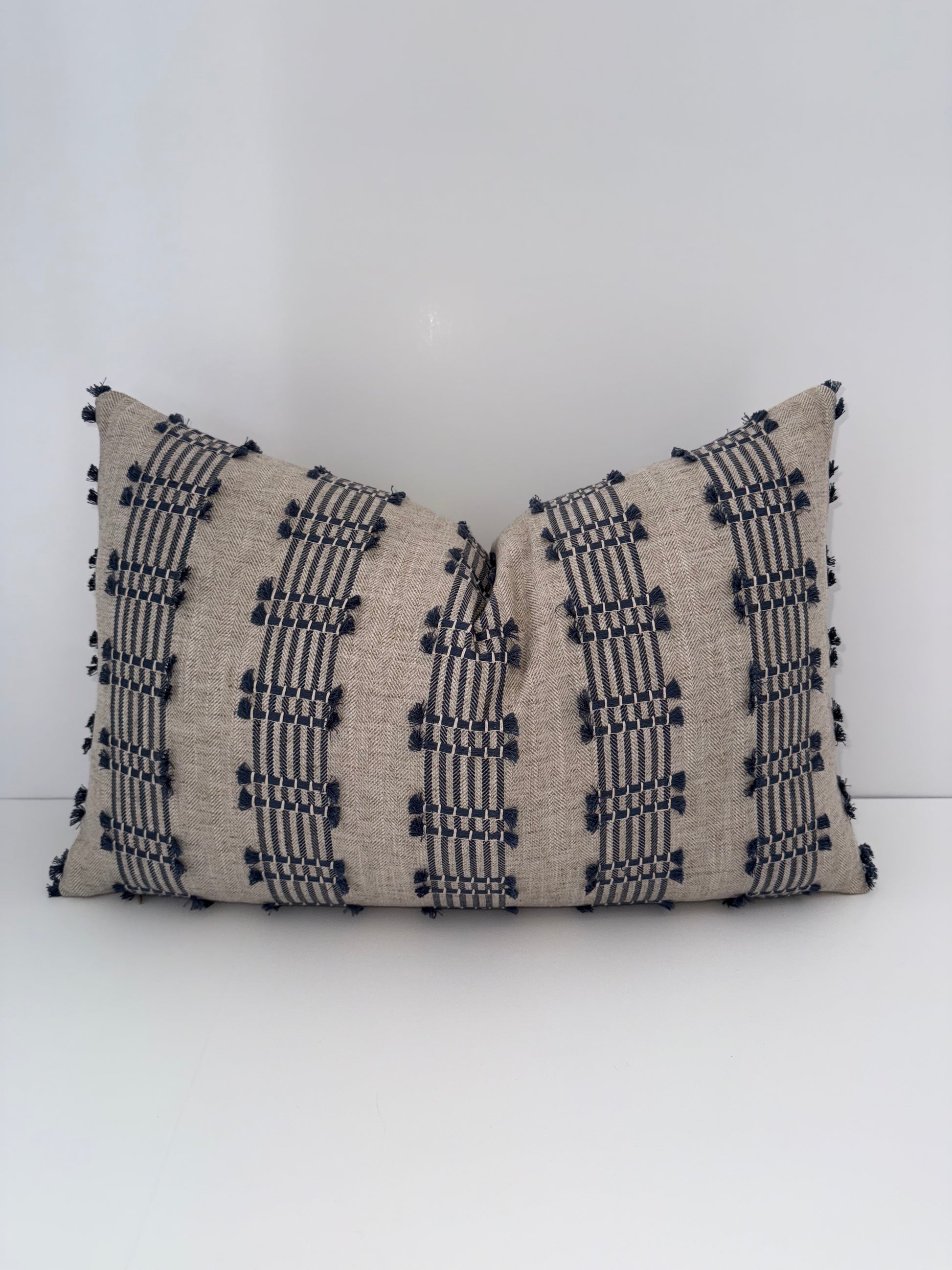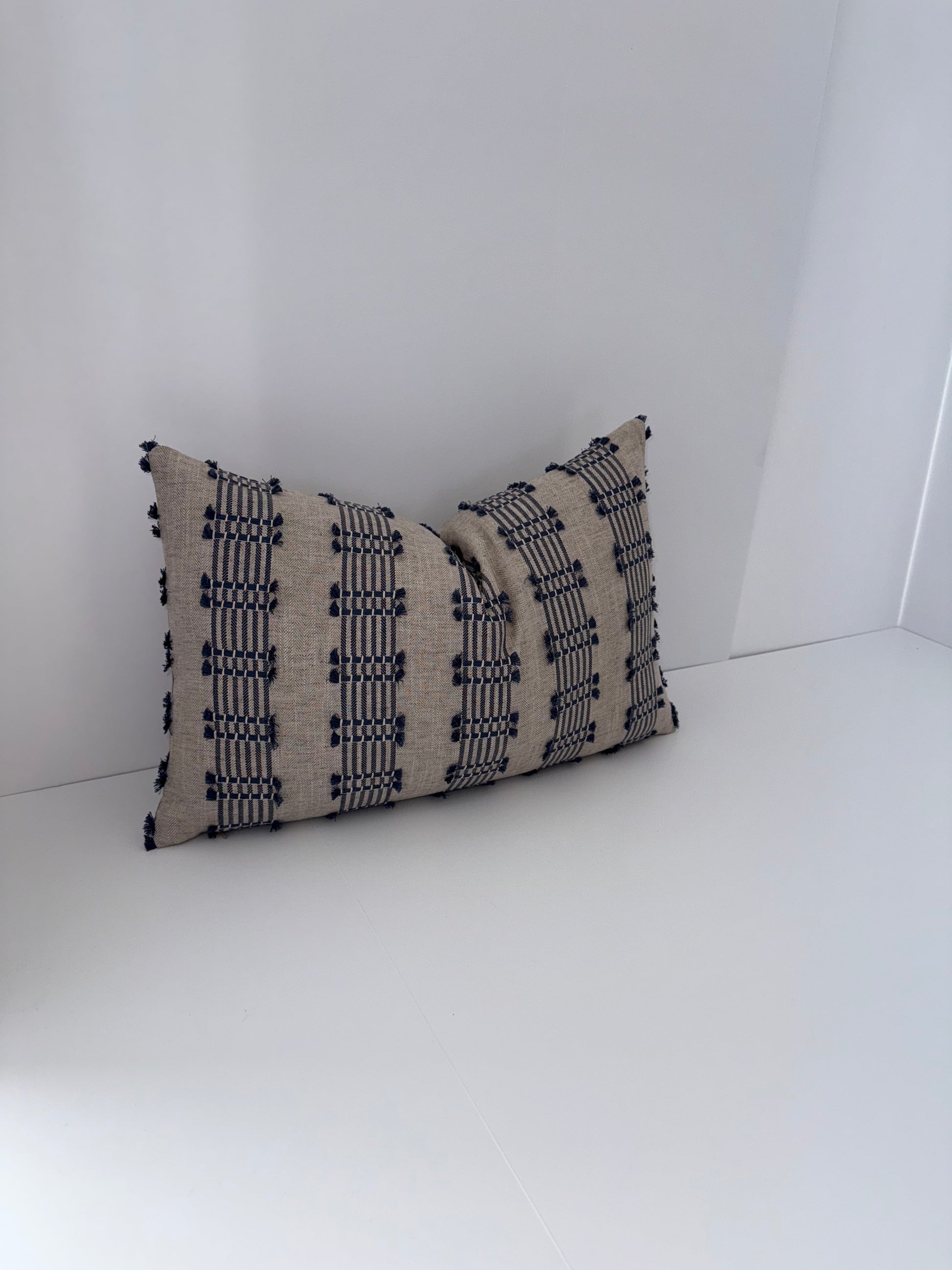 One 14x22 Beige and Blue Embroidered Decorative Pillow
