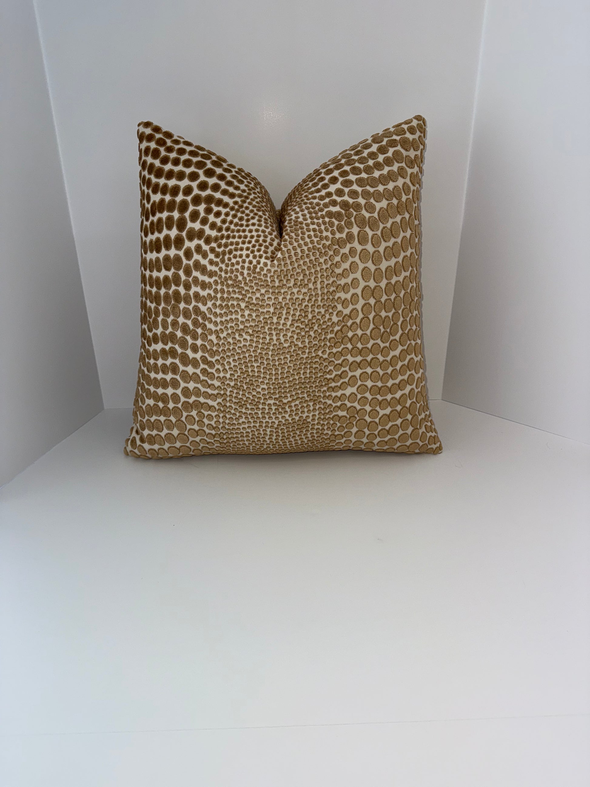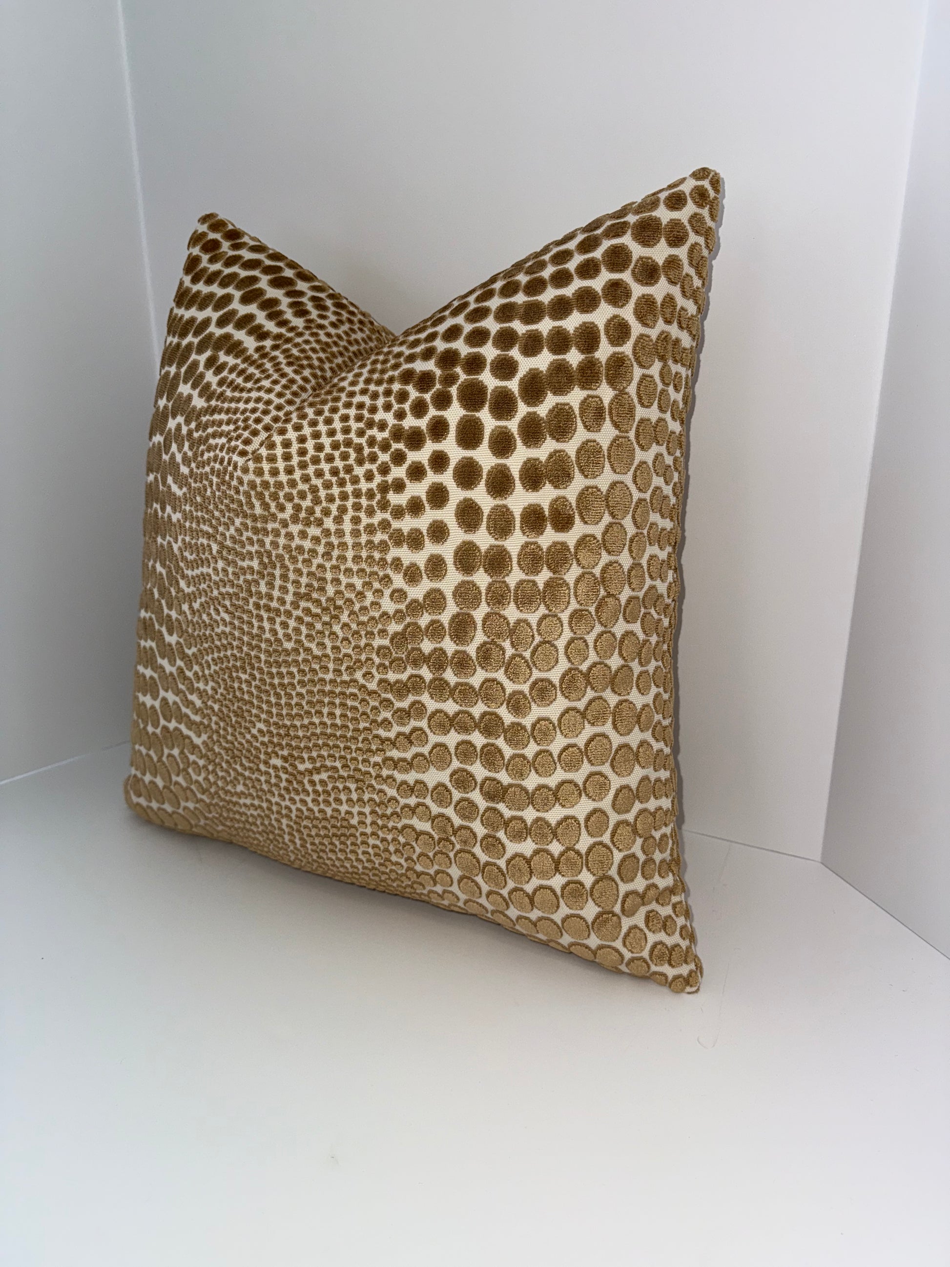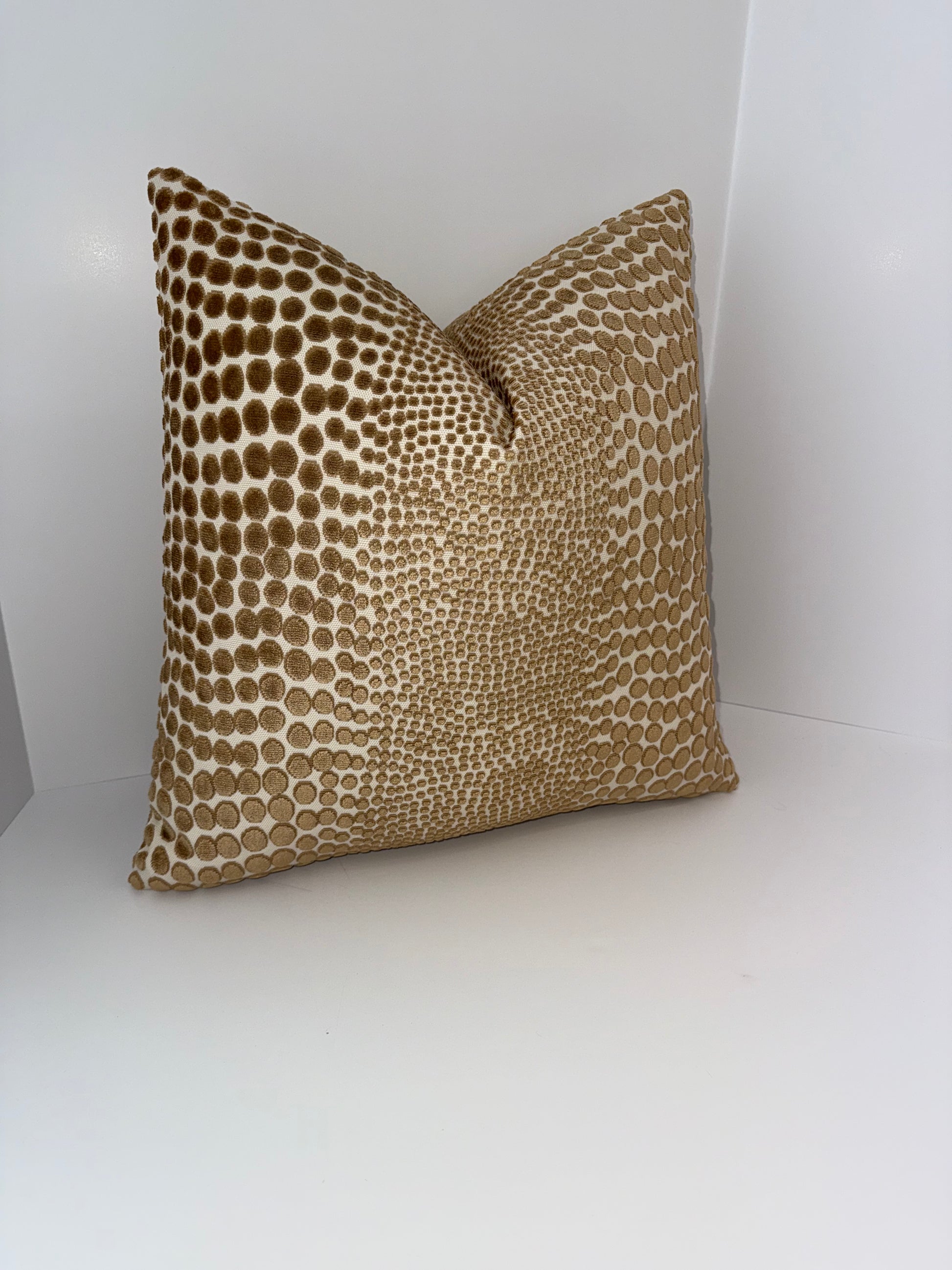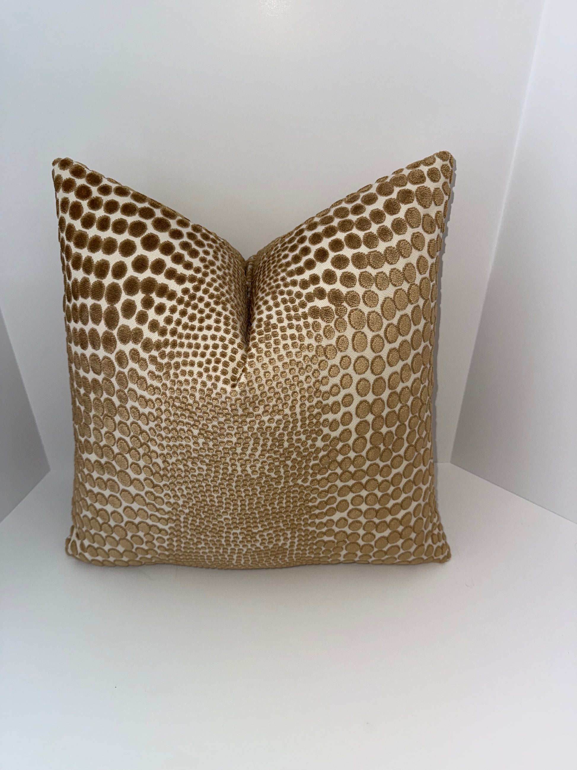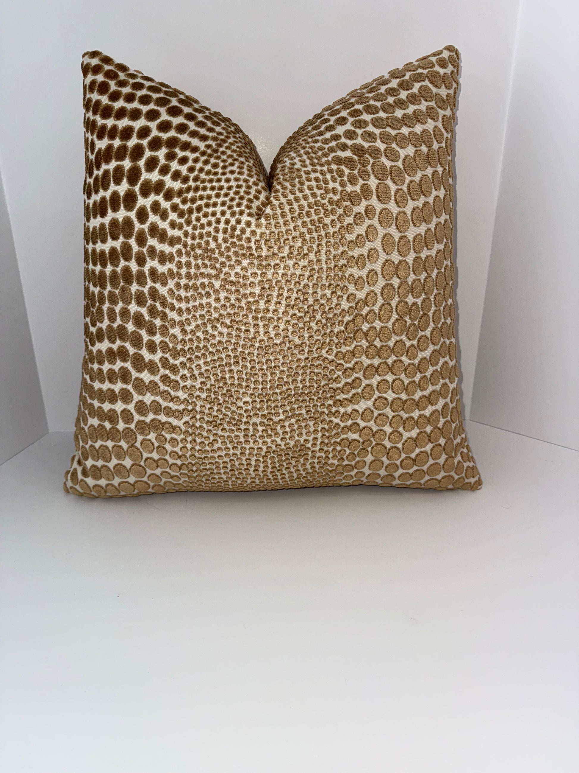 One 20x20 Gold and Beige Cut Velvet Decorative Pillow