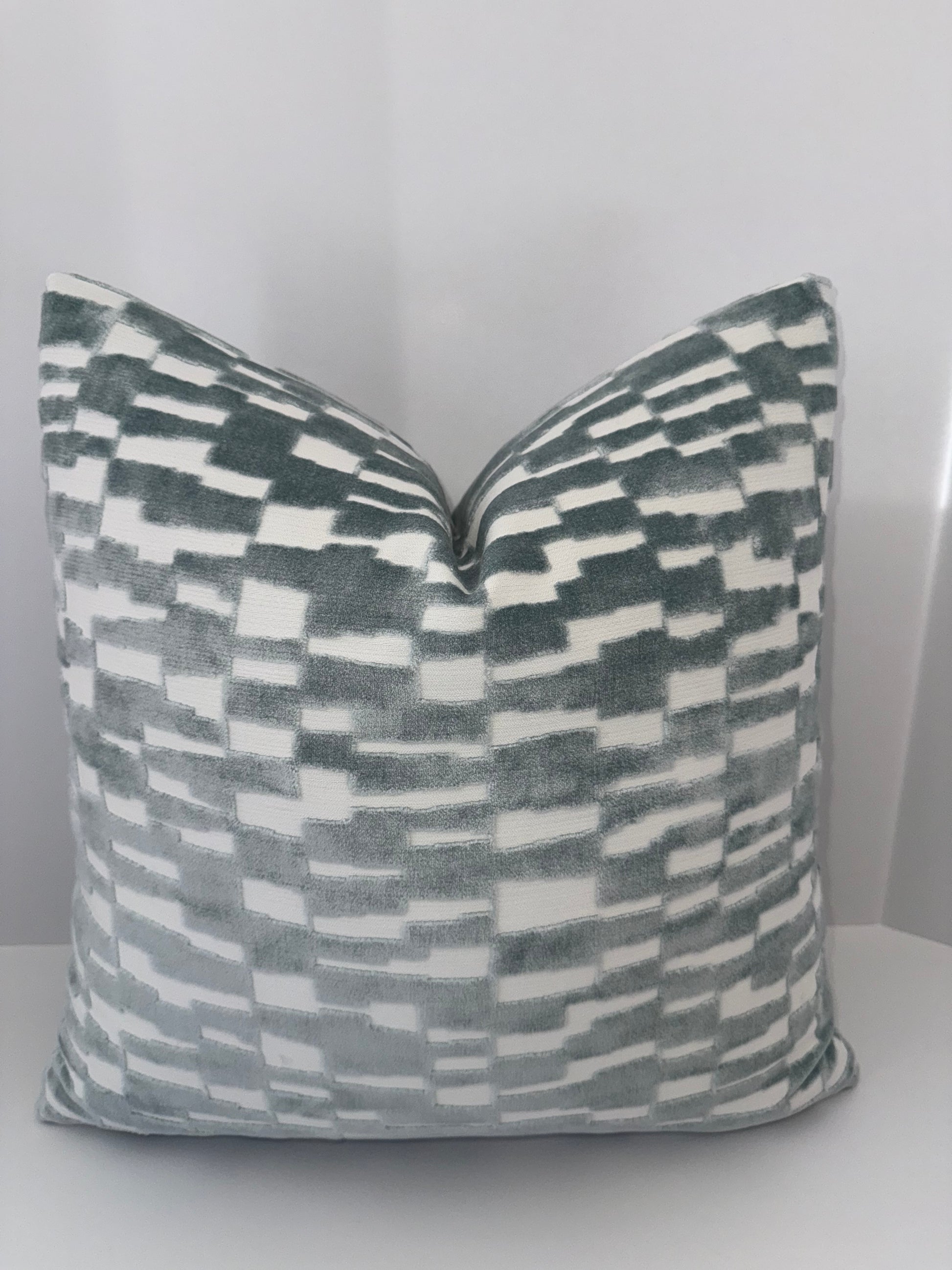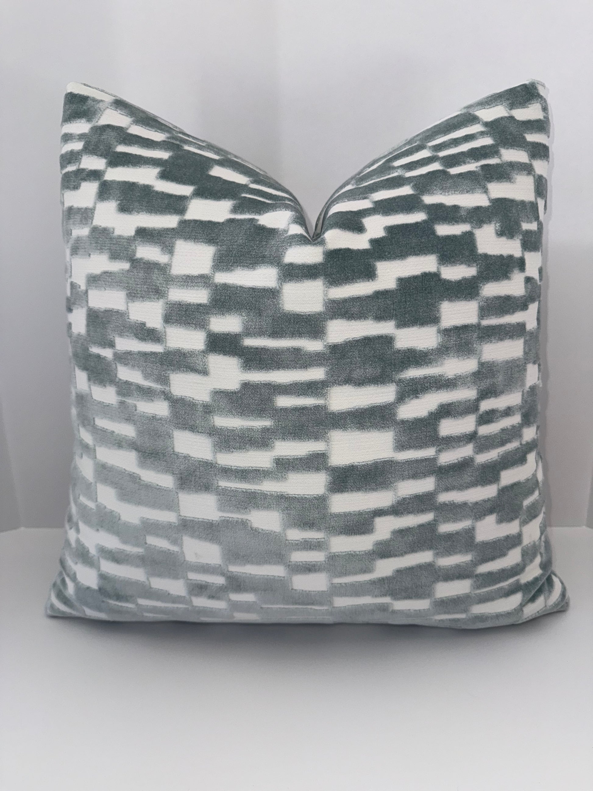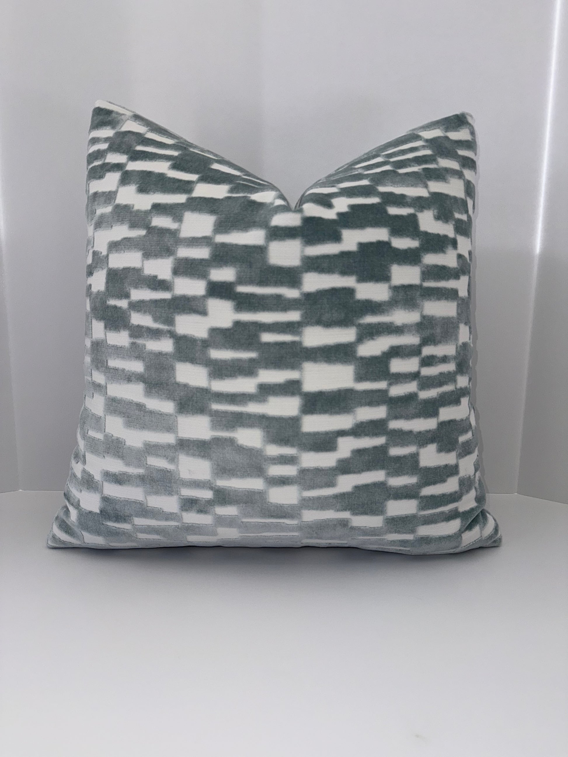 One 18x18 Blue and White Cut Velvet Decorative Pillow