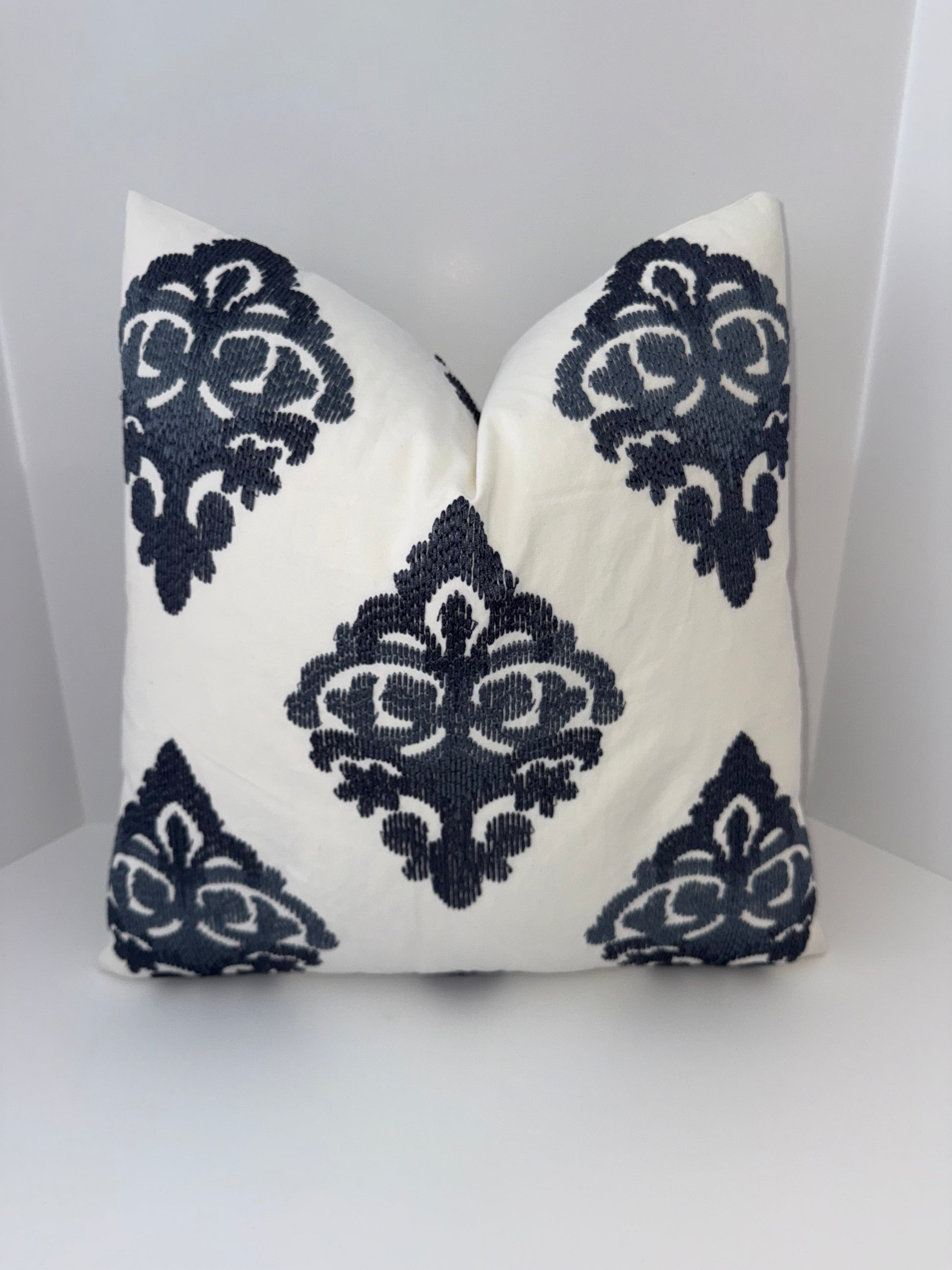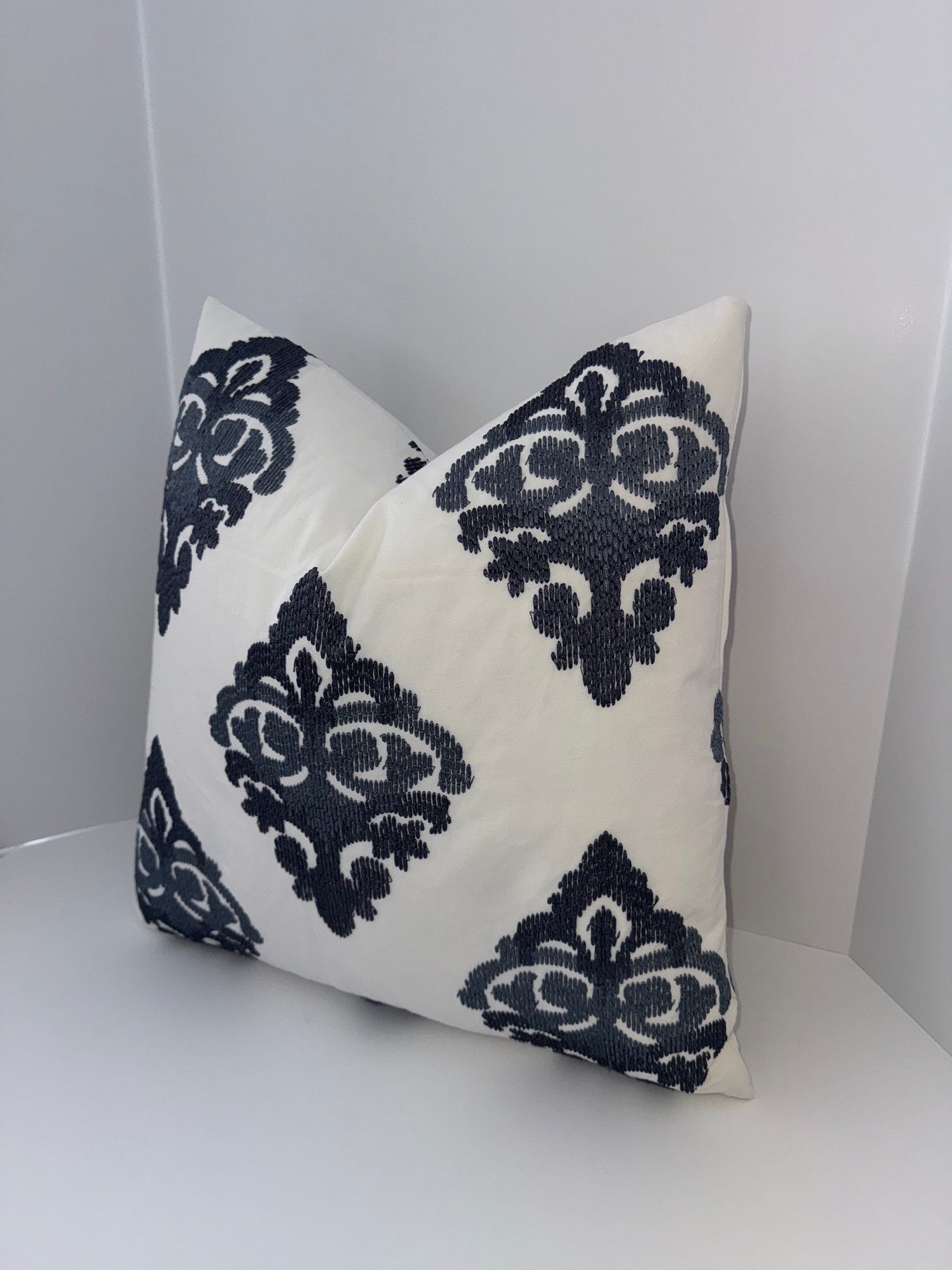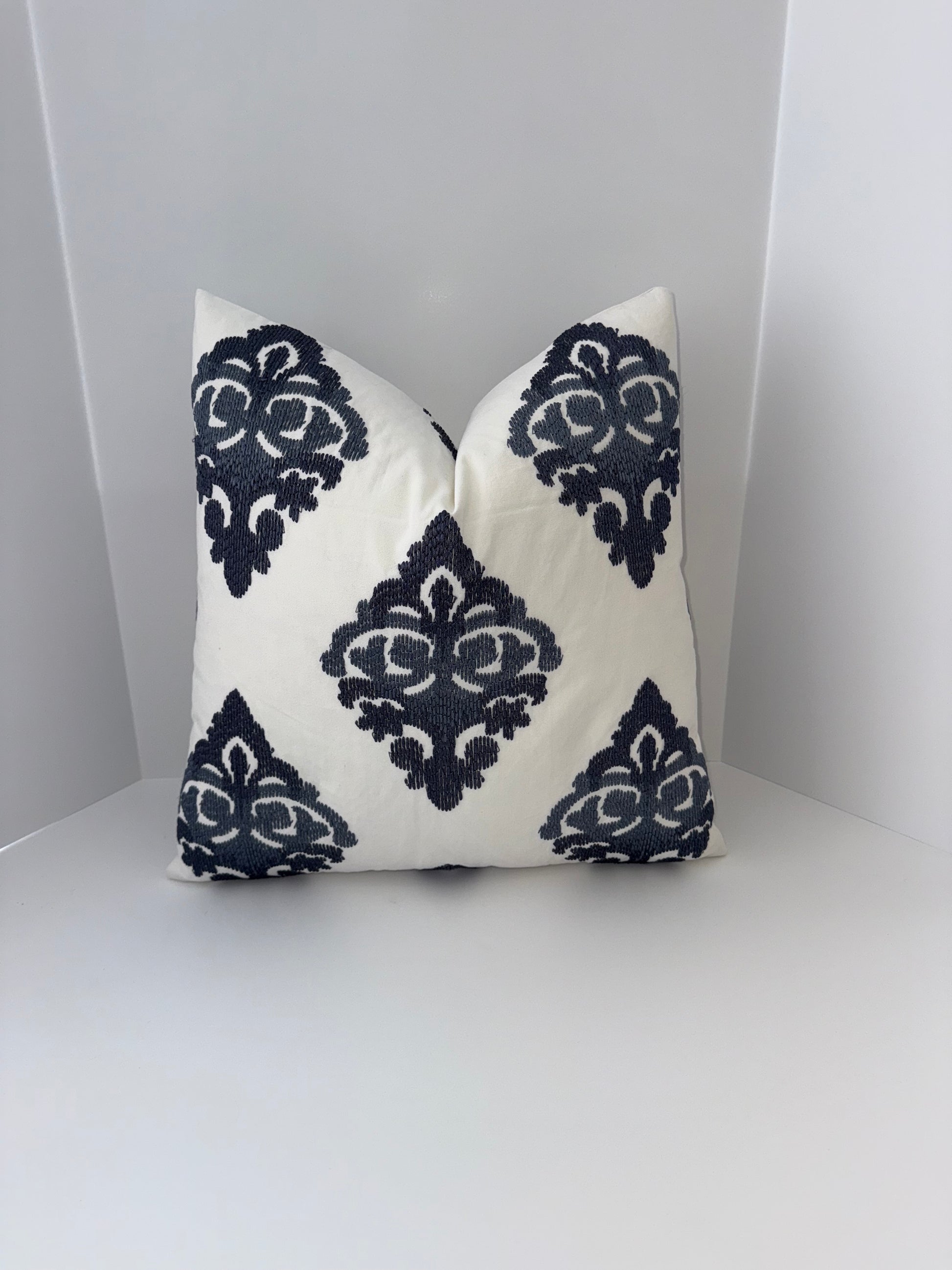 One 20x20 White and Blue Decorative Pillow
