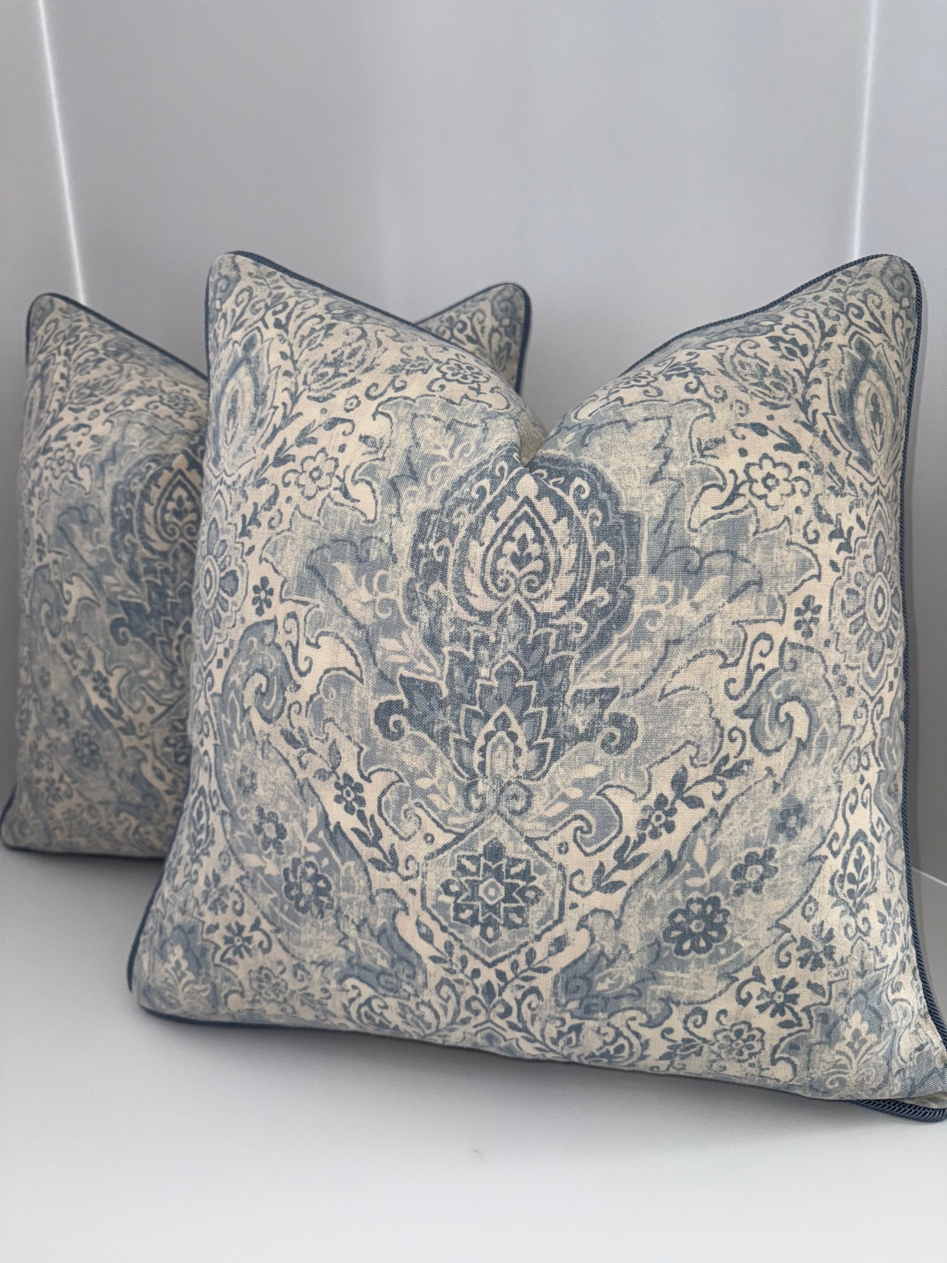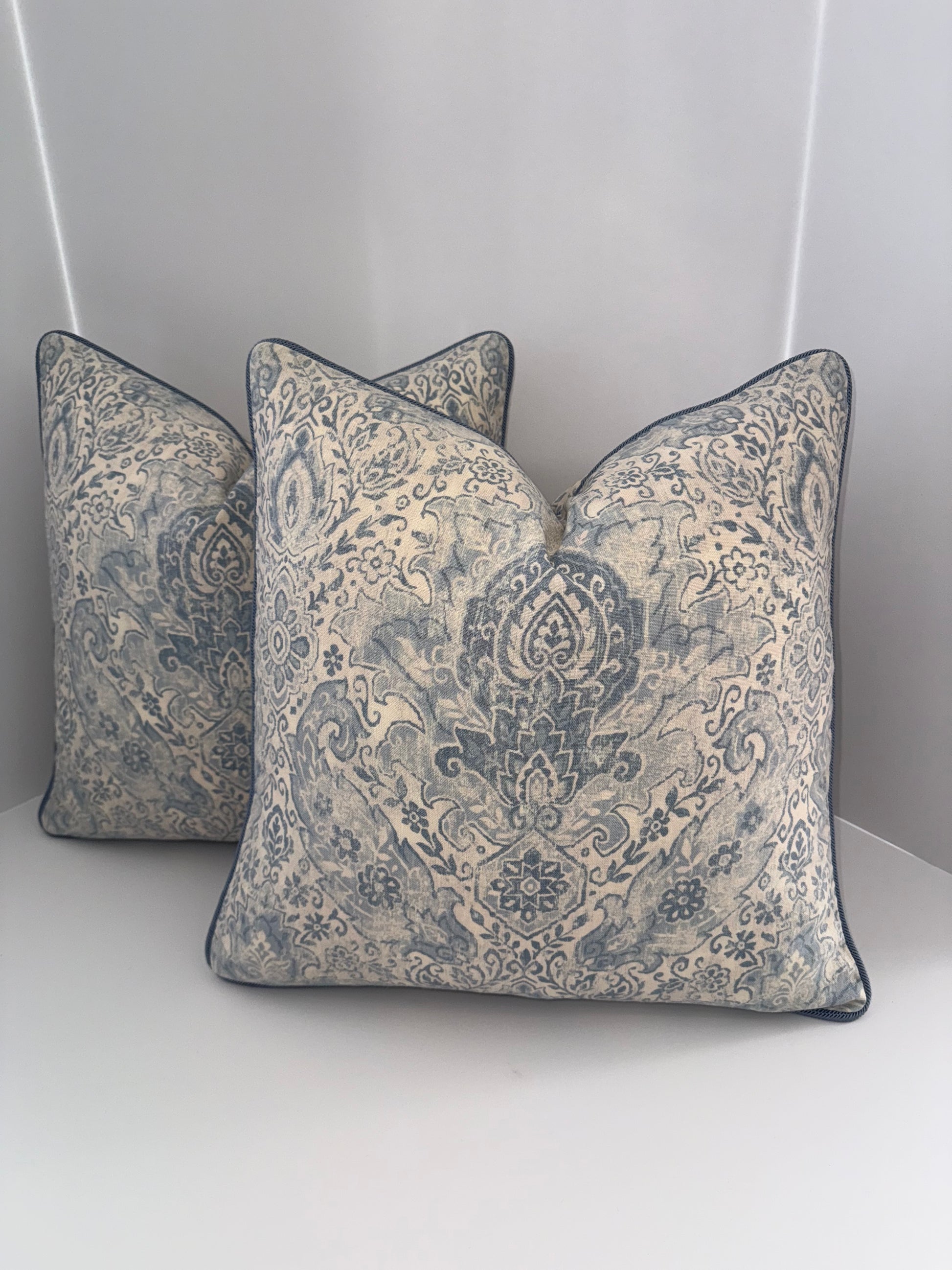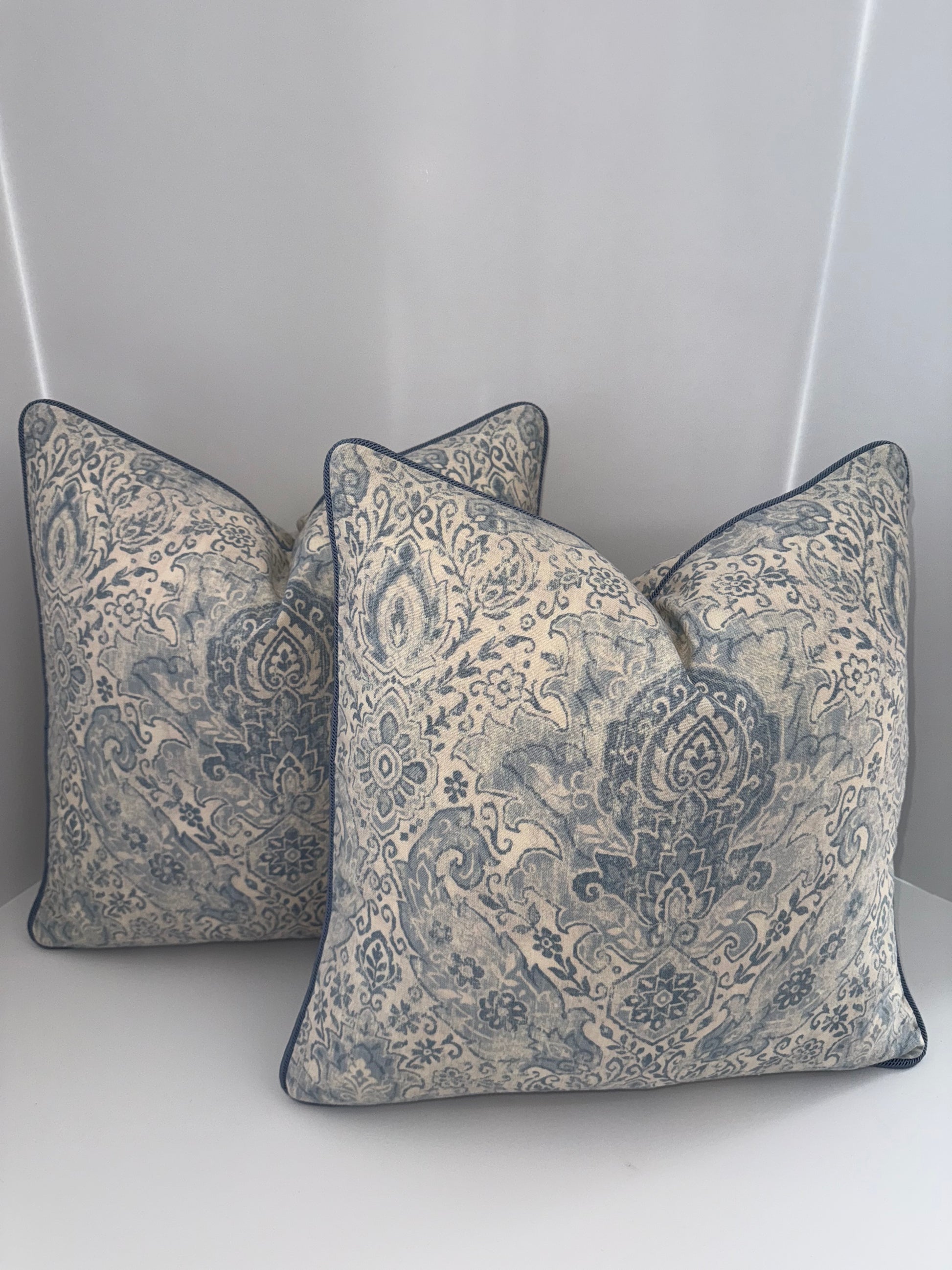 Two 18x18 White and Blue Decorative Pillow
