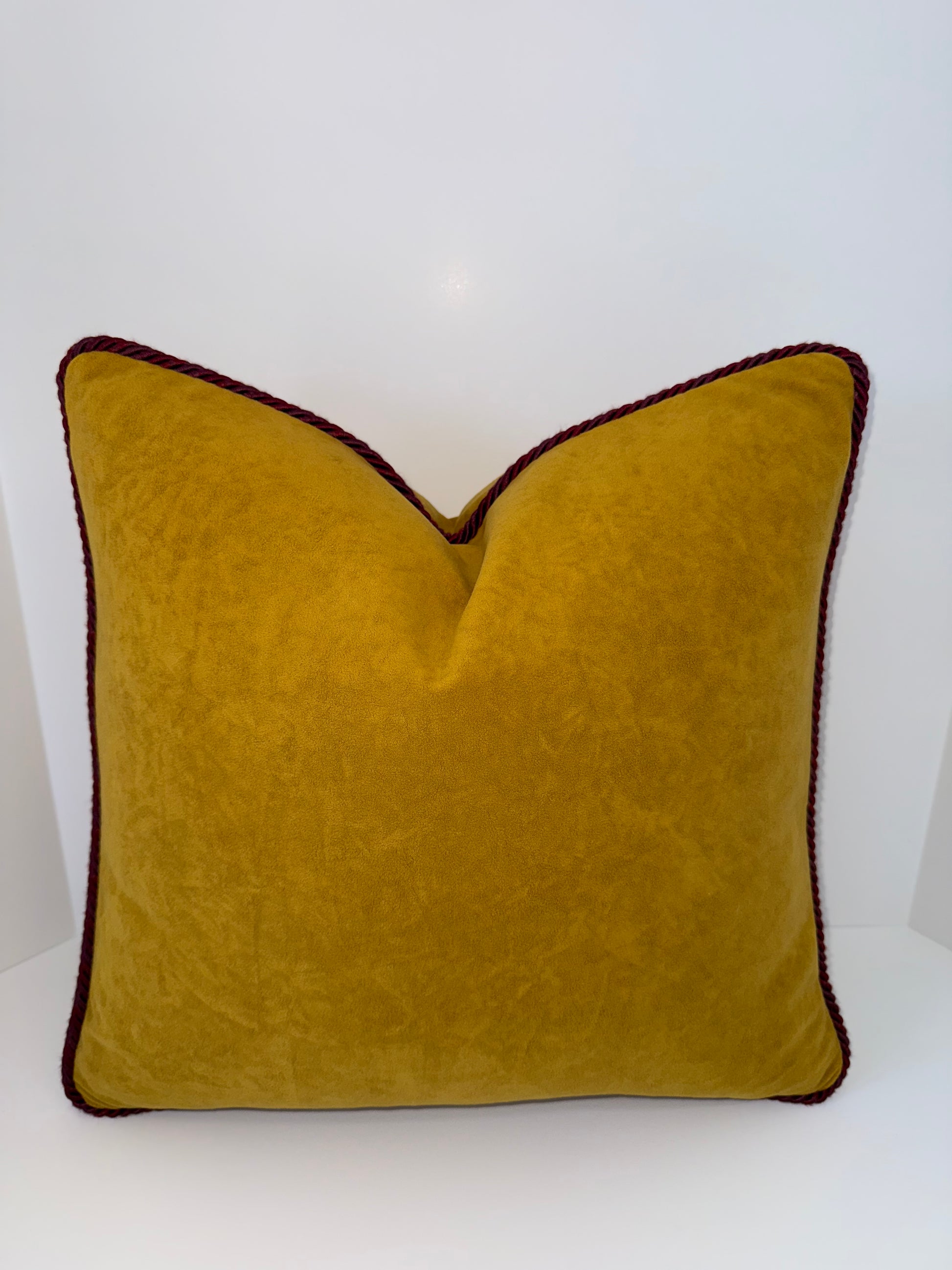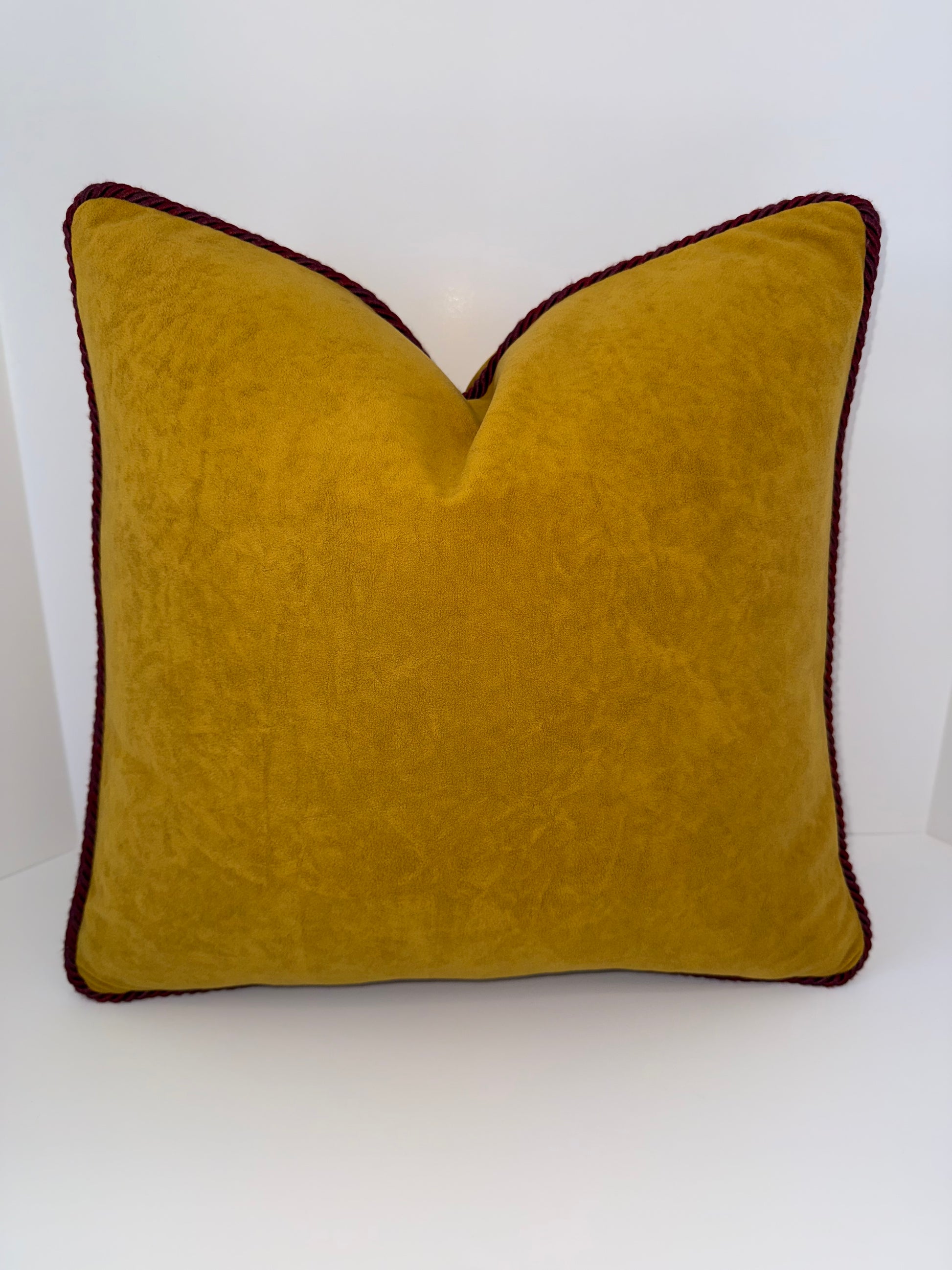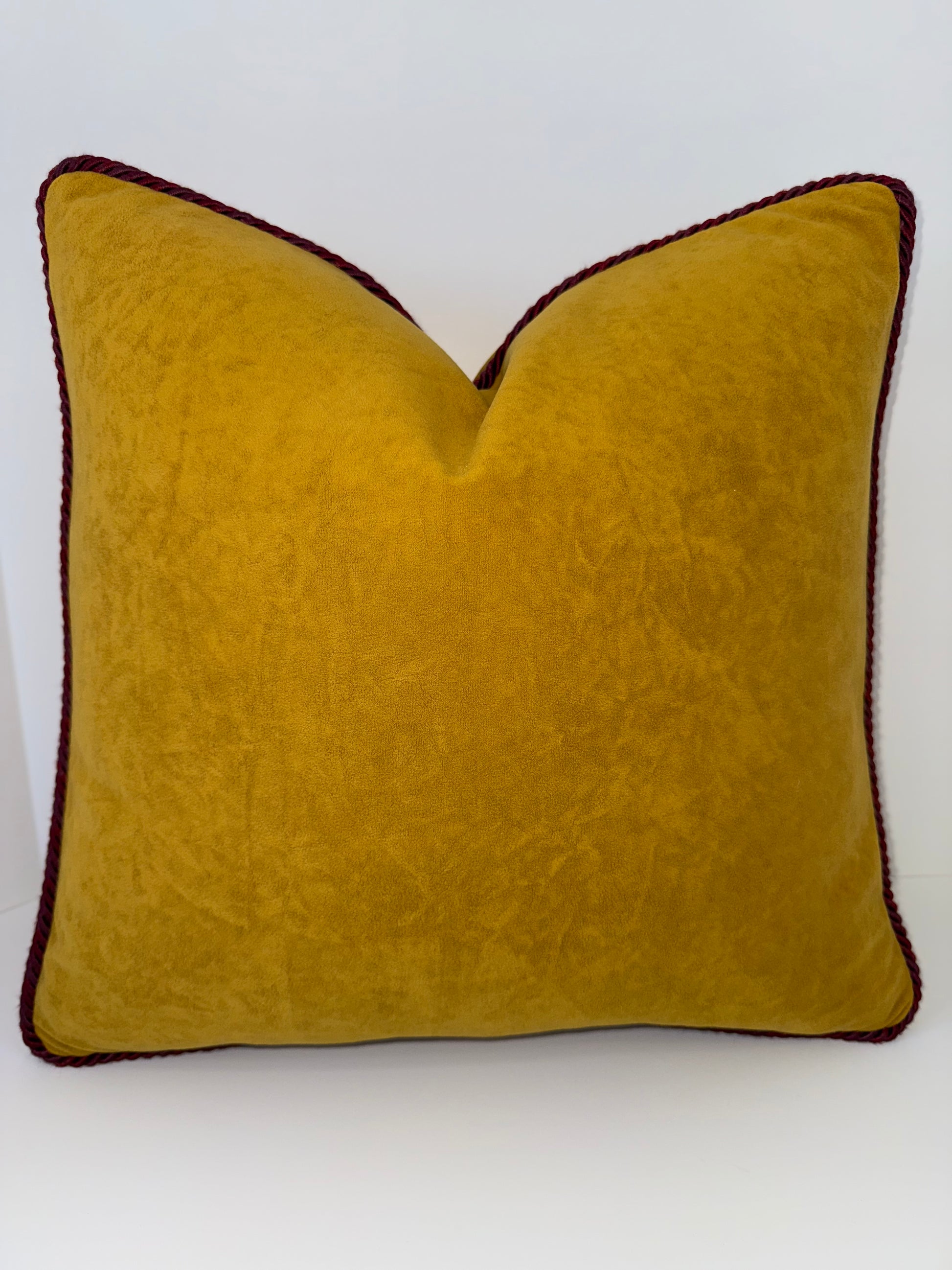 One 18x18 Red and Mustard Yellow Suede Decorative Pillow