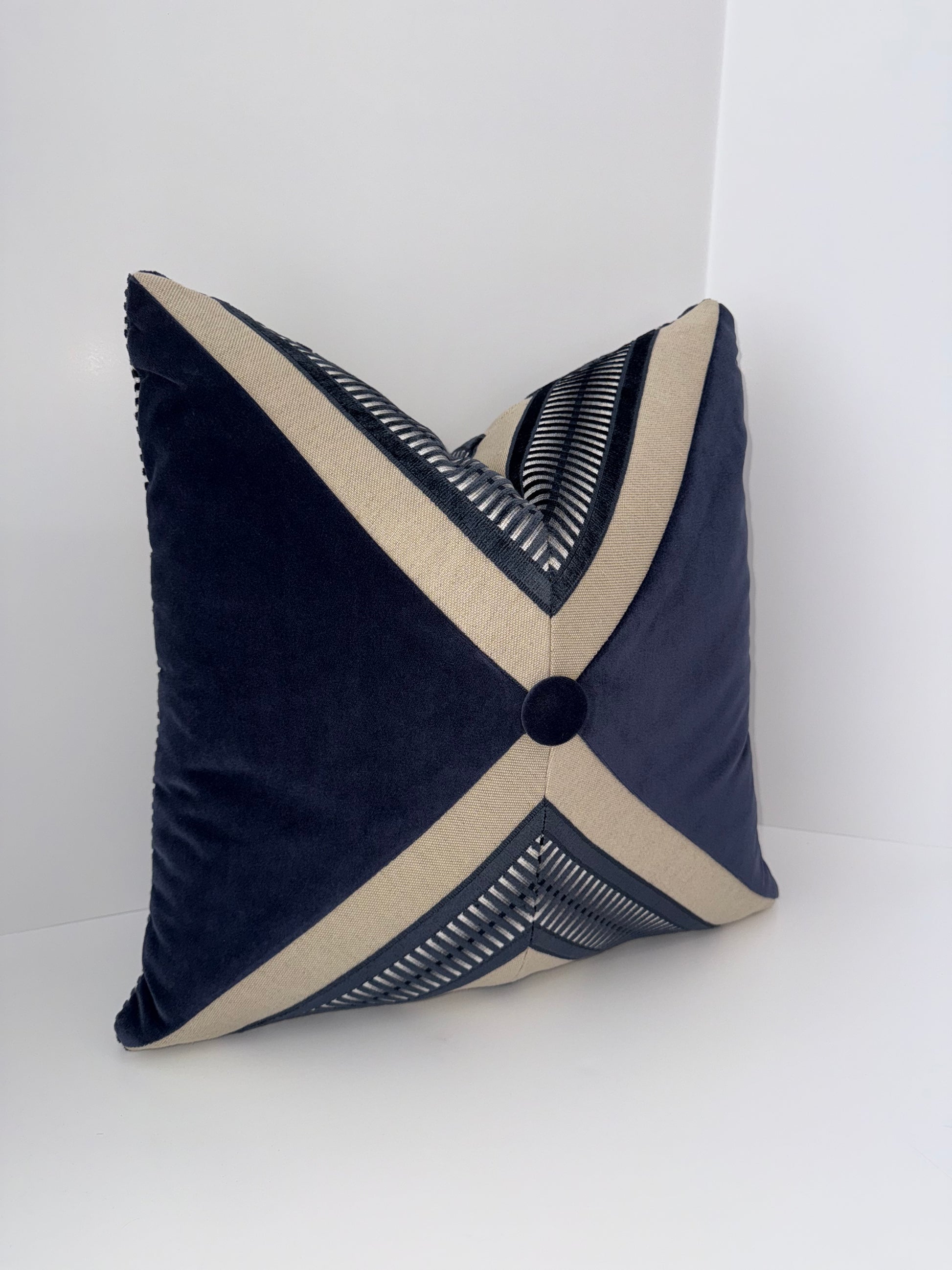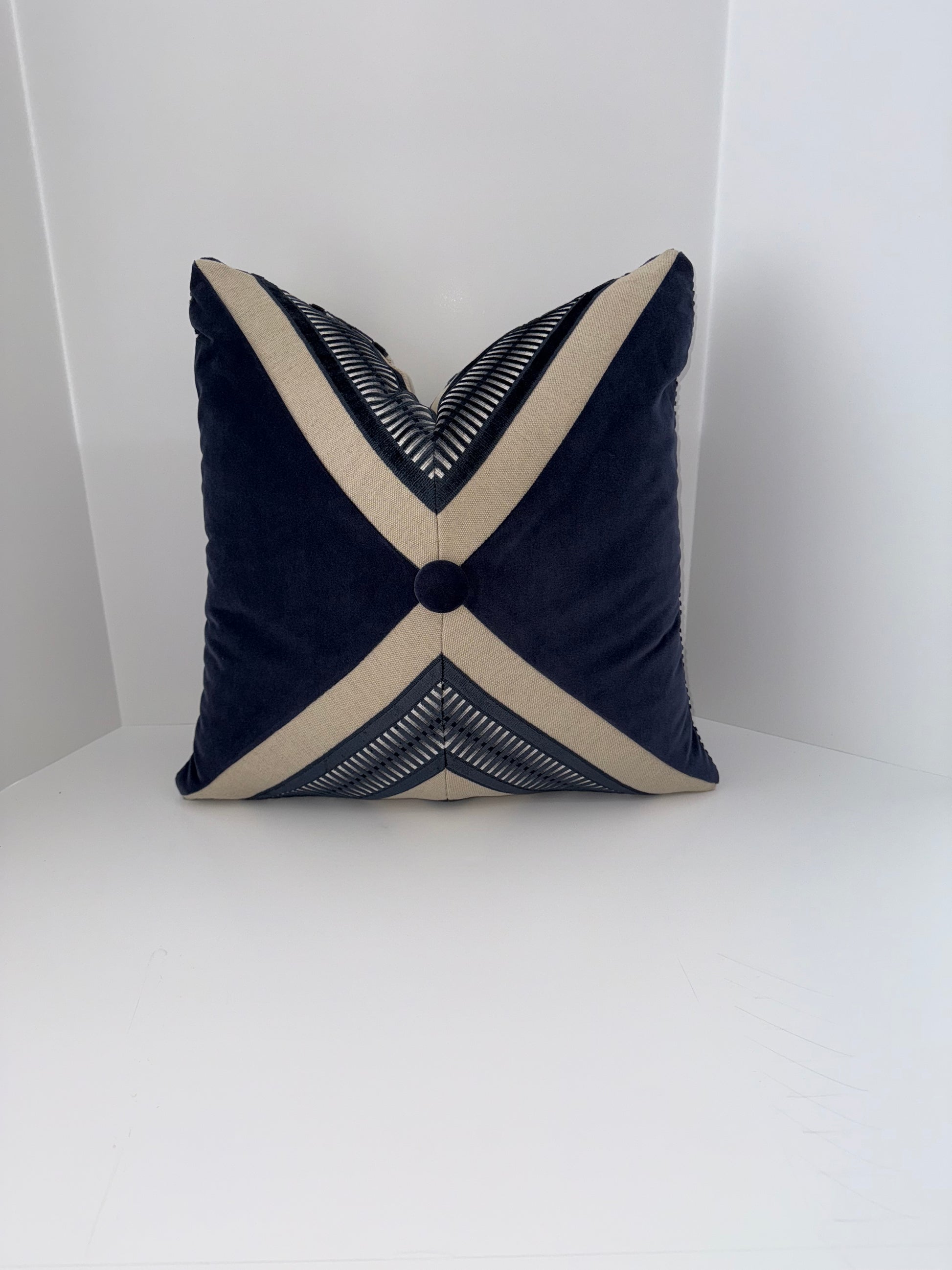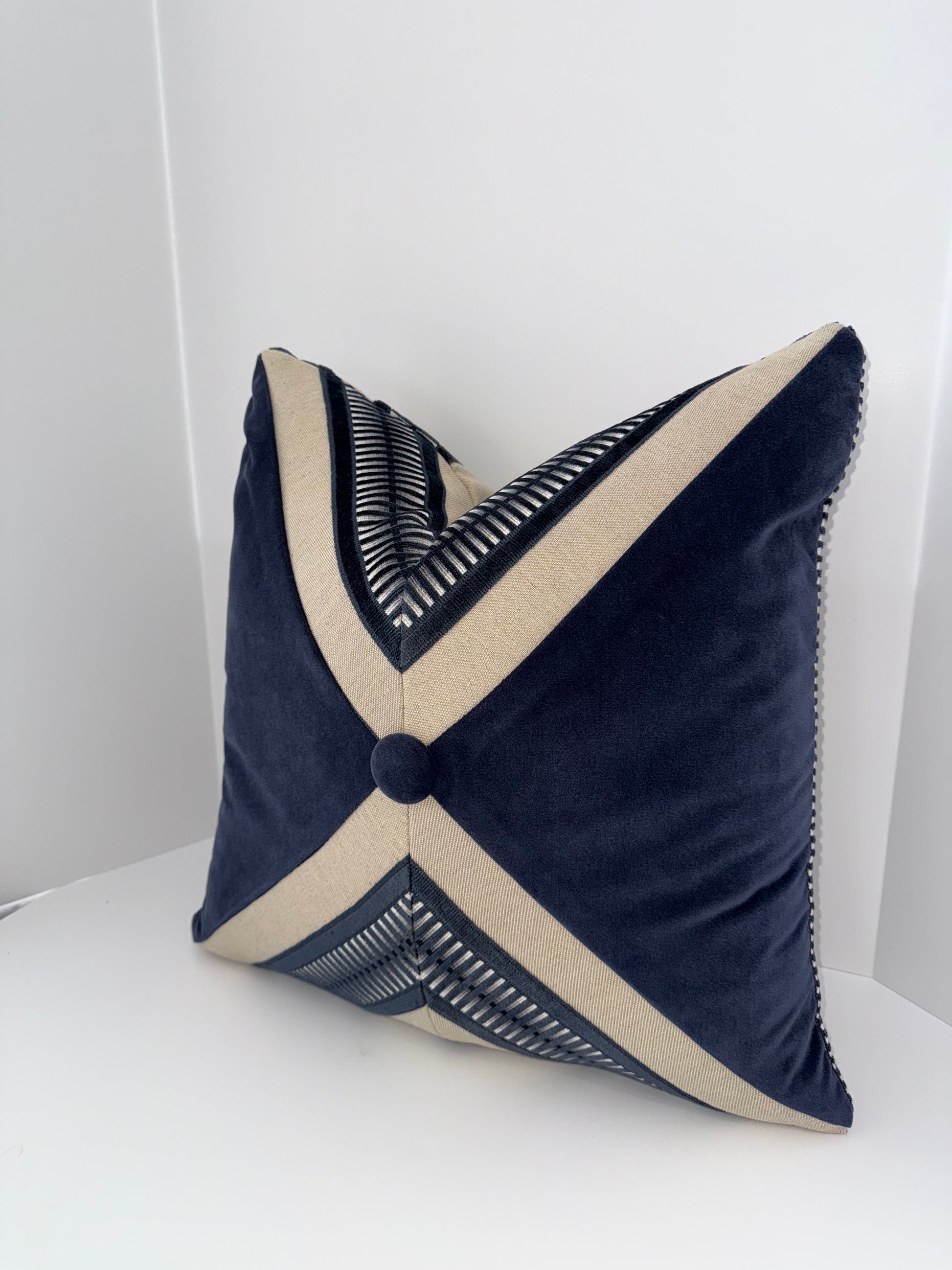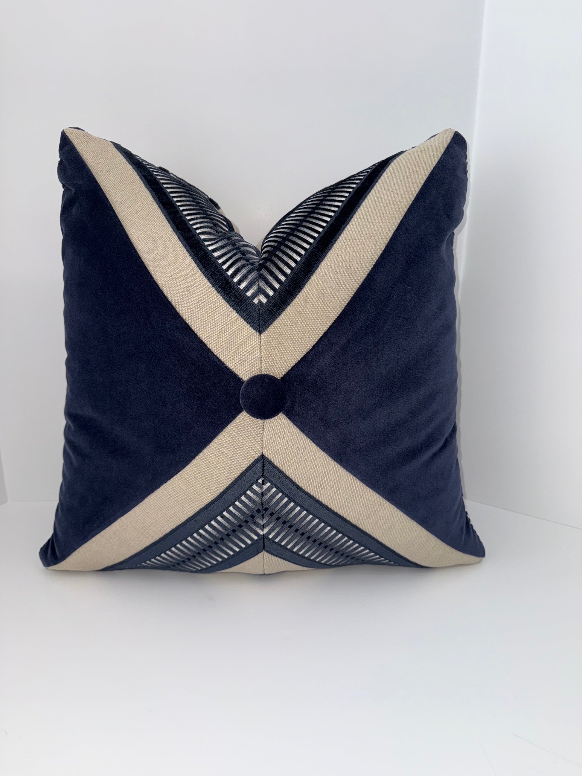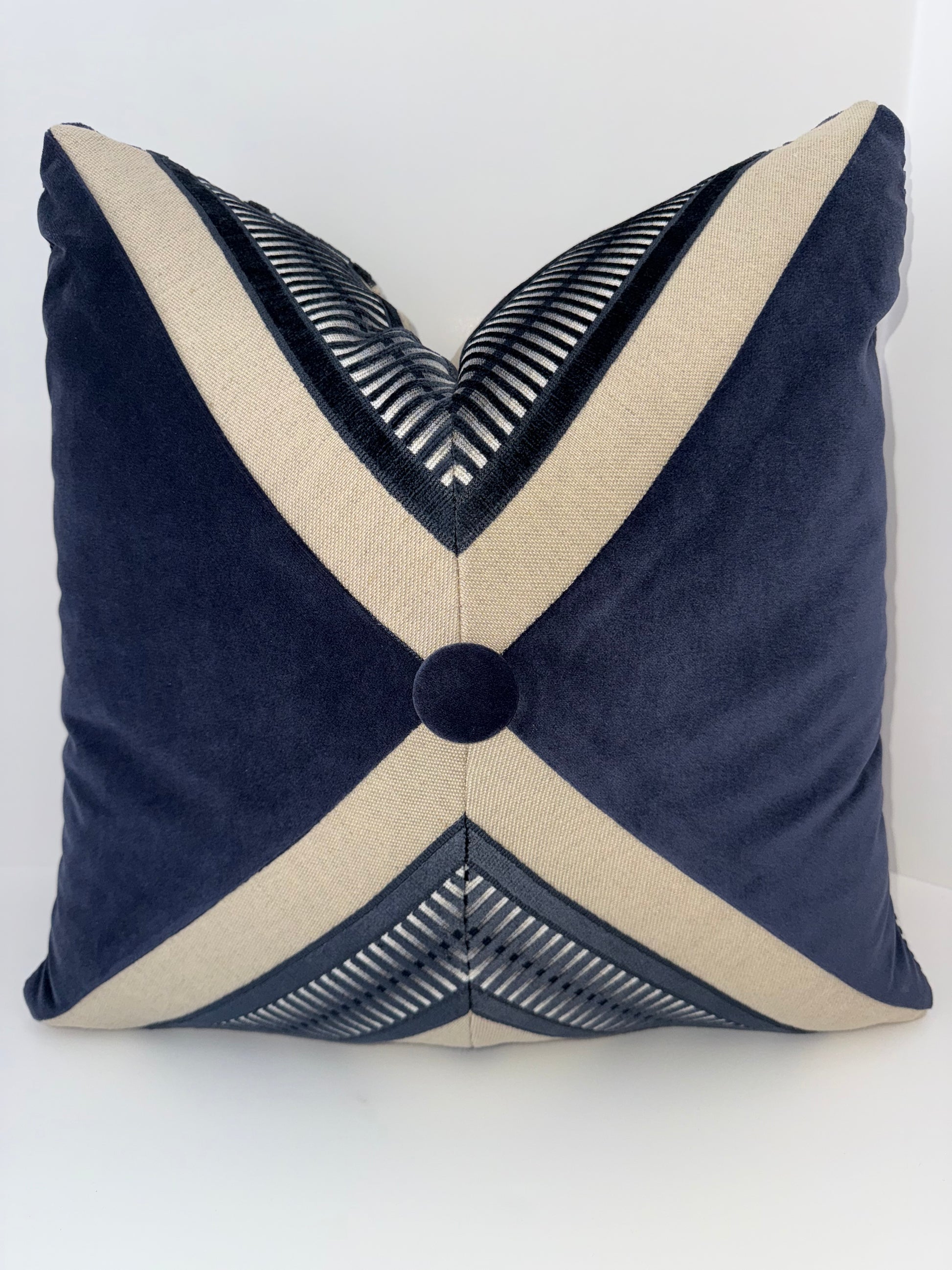 One 20x20 Blue Velvet, Beige, and White Decorative Pillow