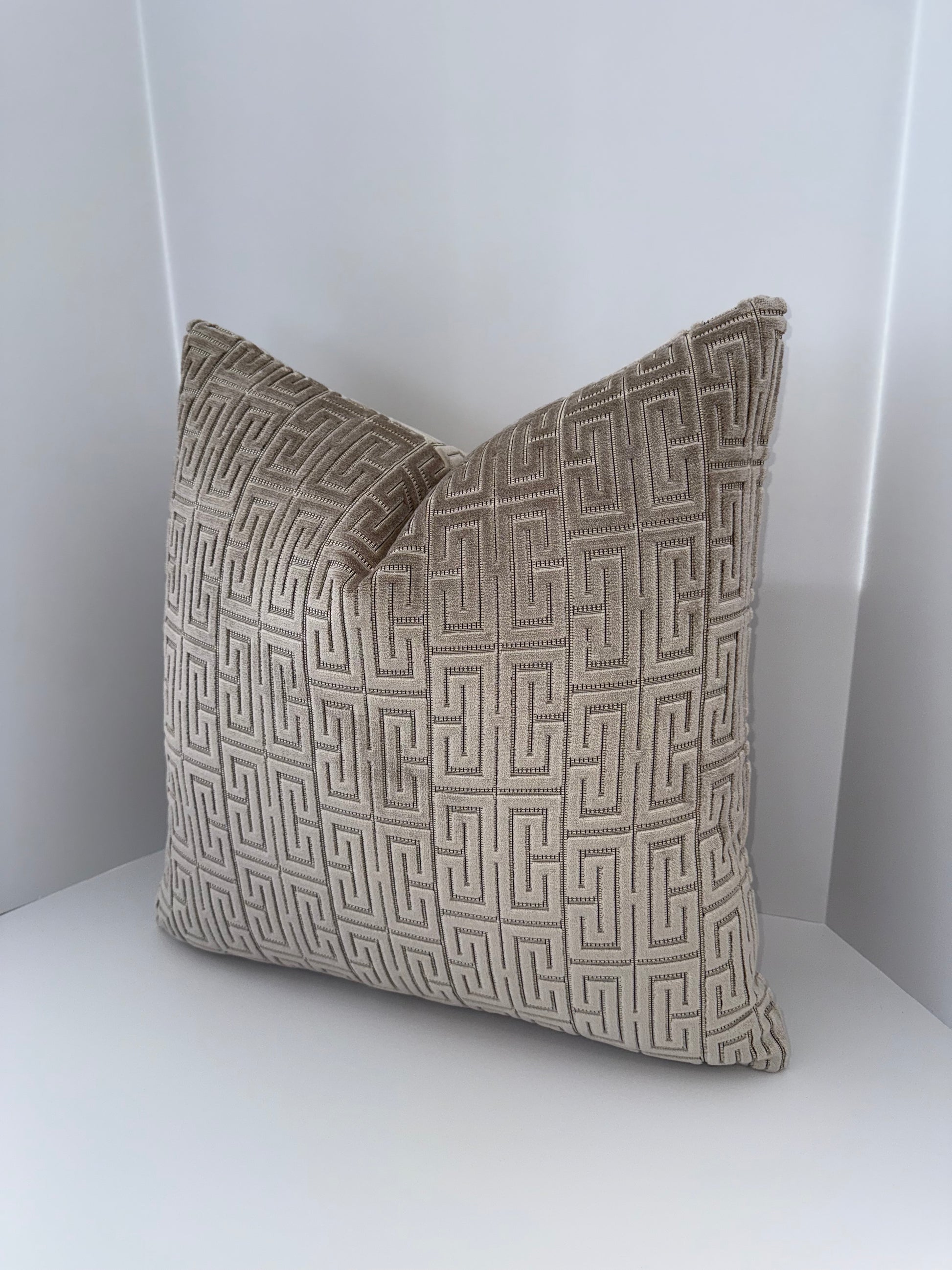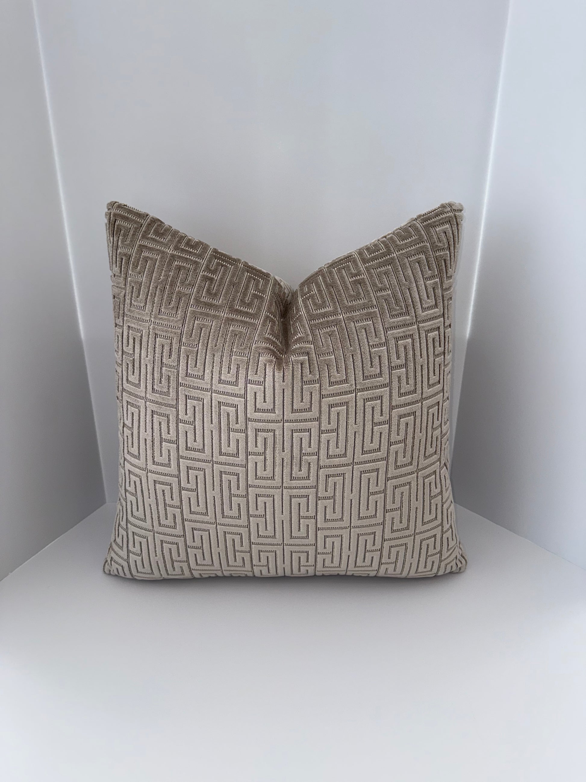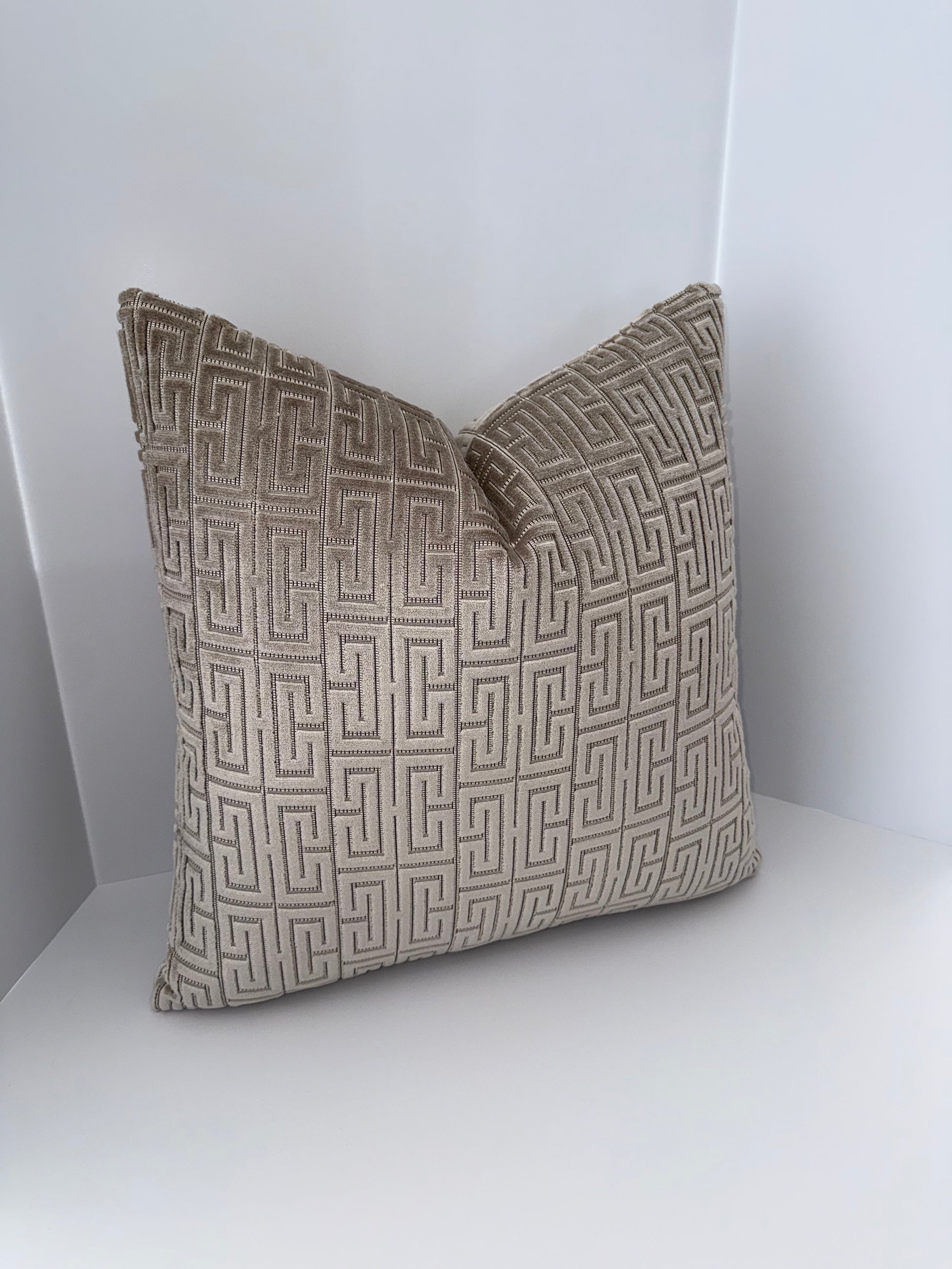 One 22x22 Beige Cut Velvet Decorative Pillow