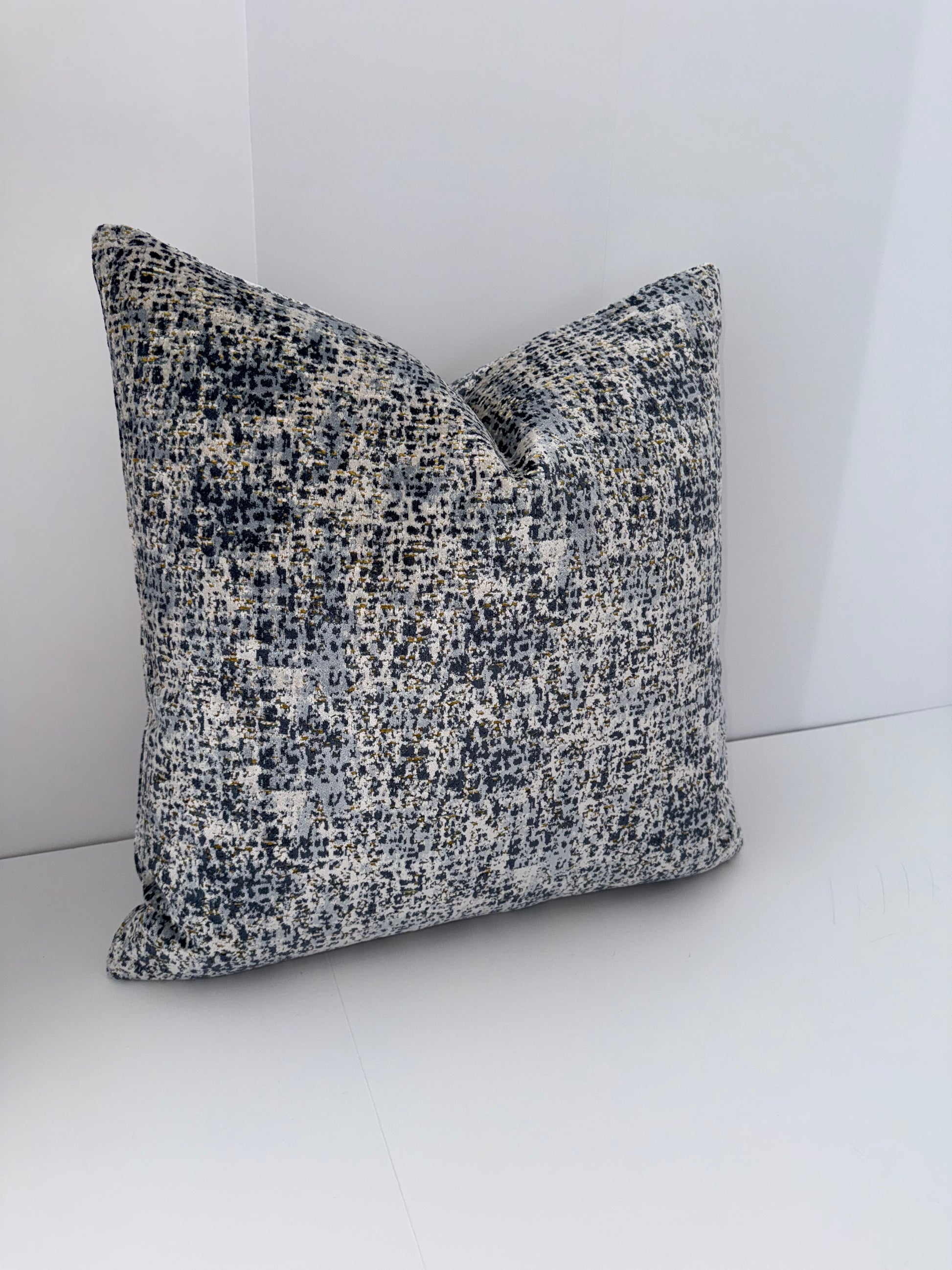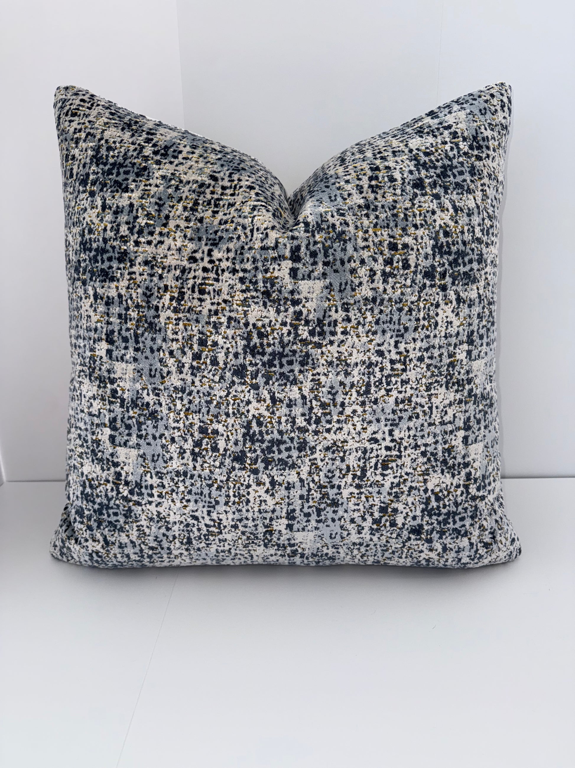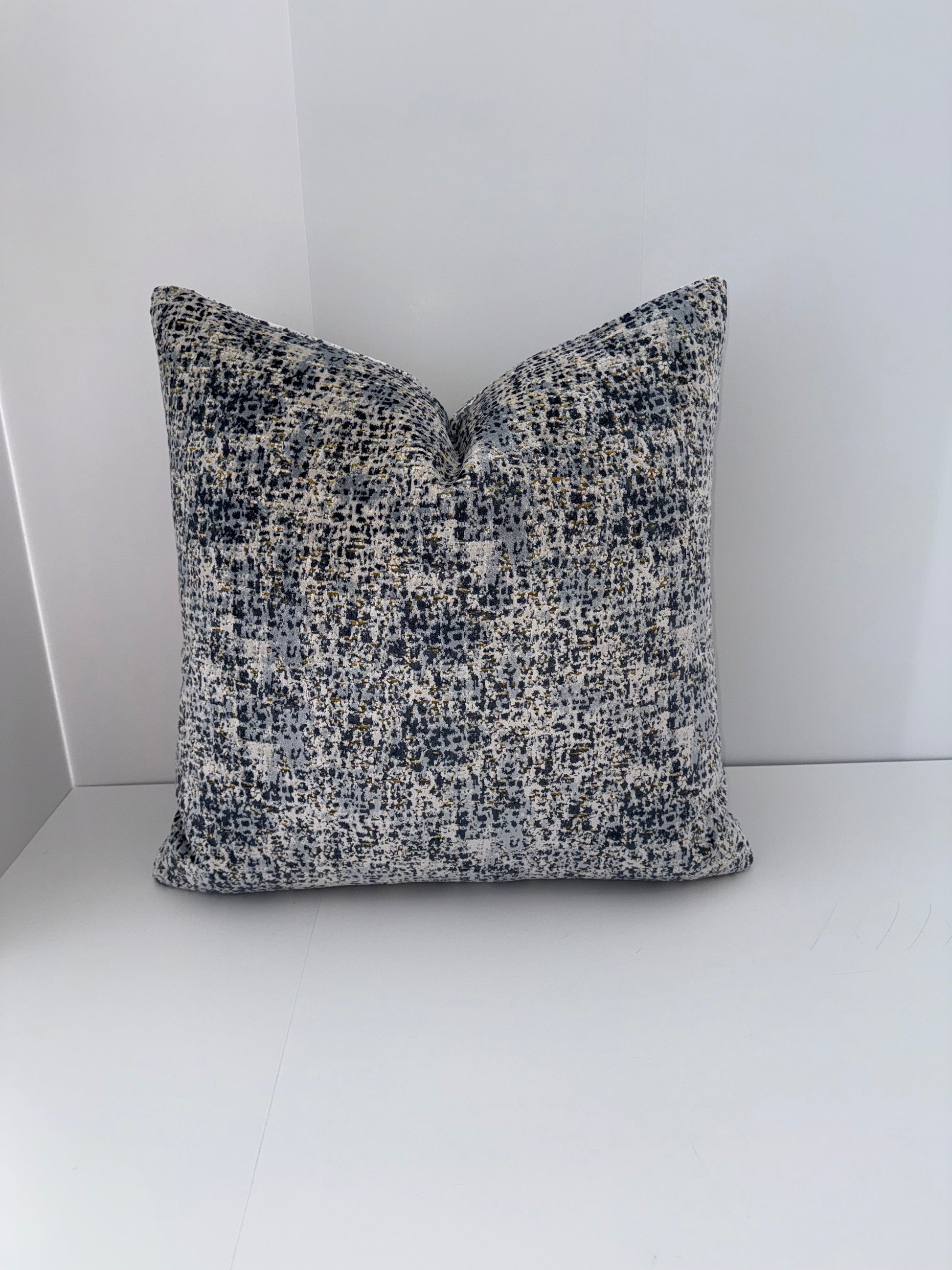 One 22x22 Blue, White, and Yellow Velvet Decorative Pillow