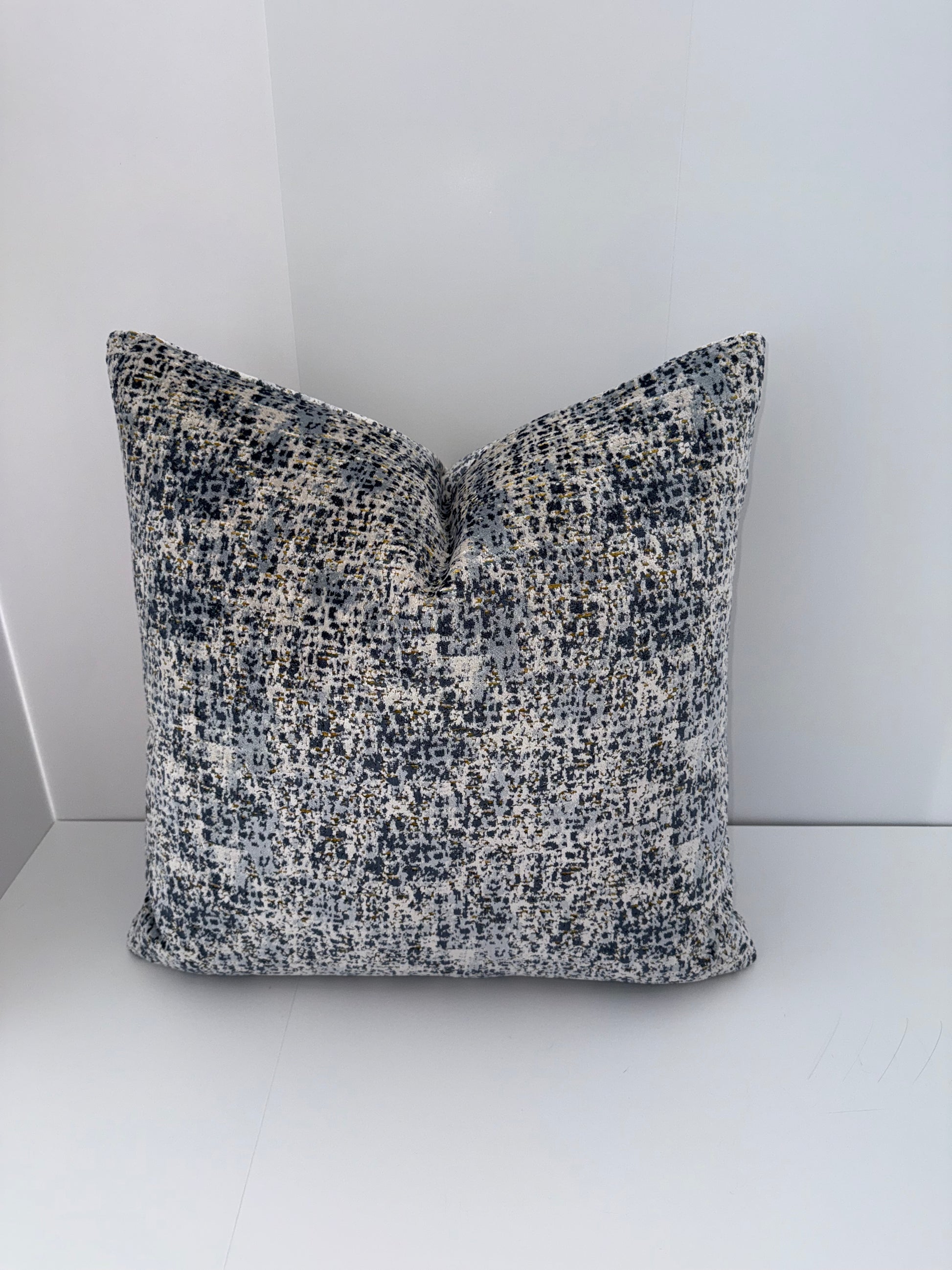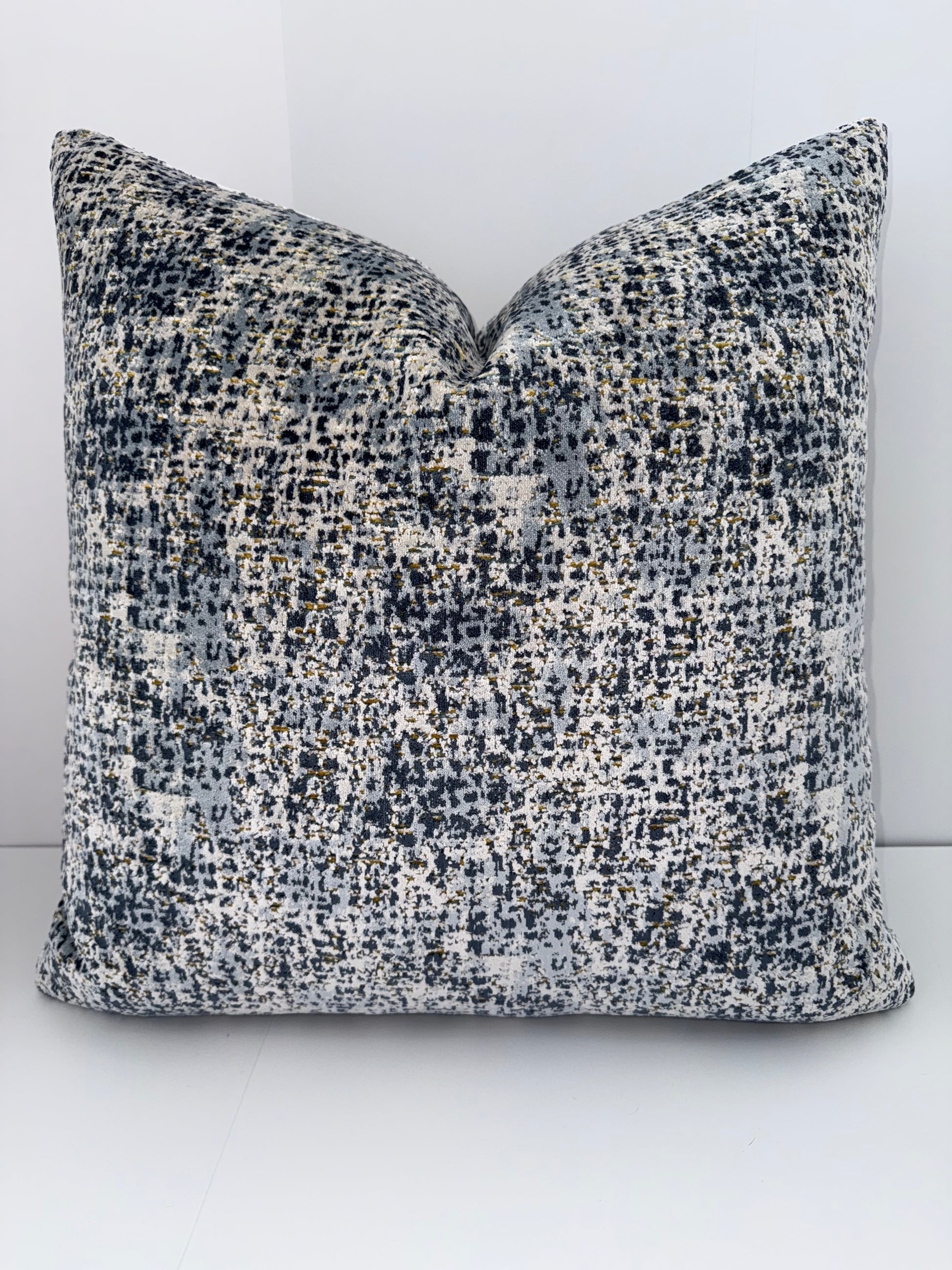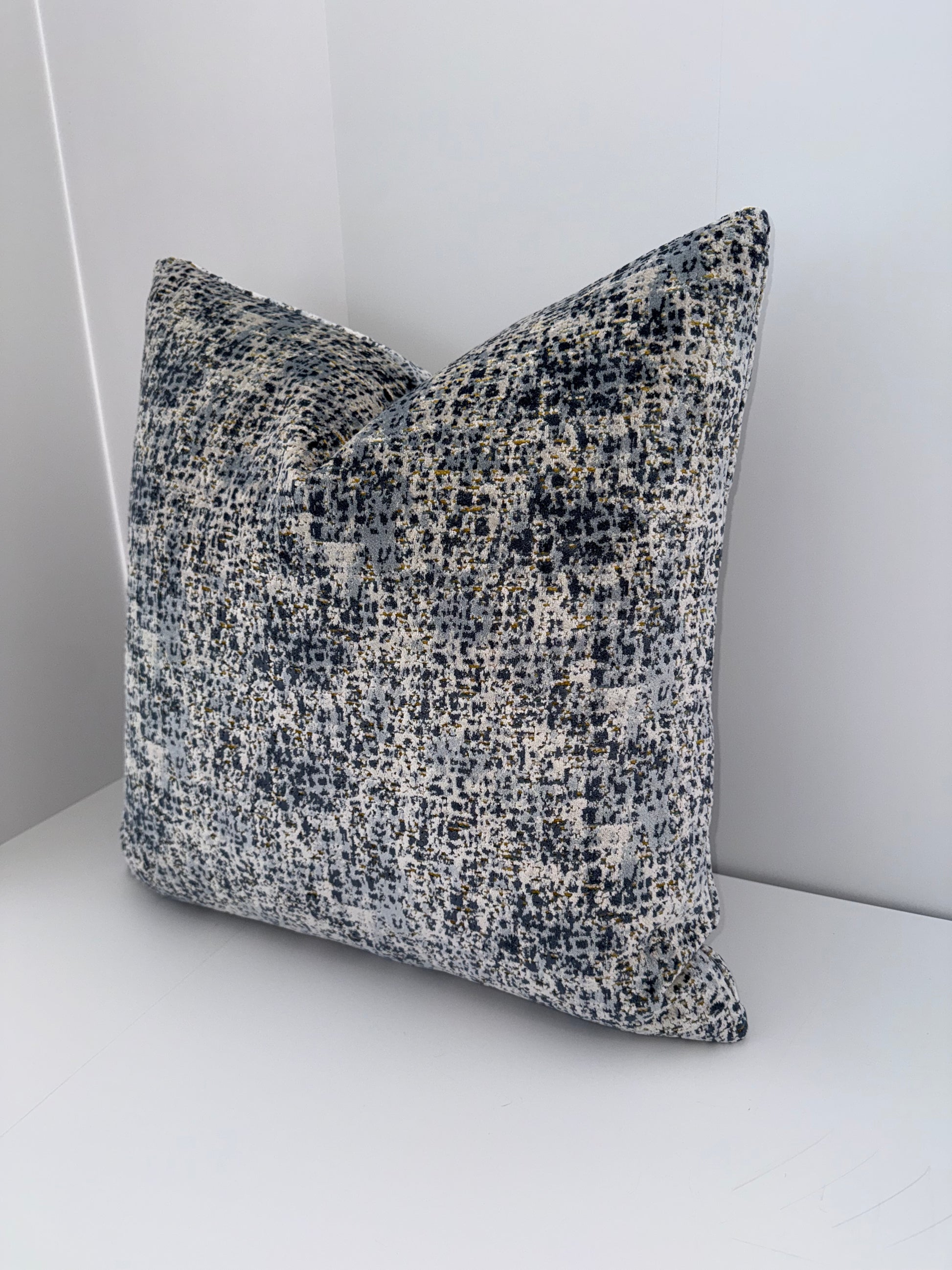 One 22x22 Blue, White, and Yellow Velvet Decorative Pillow