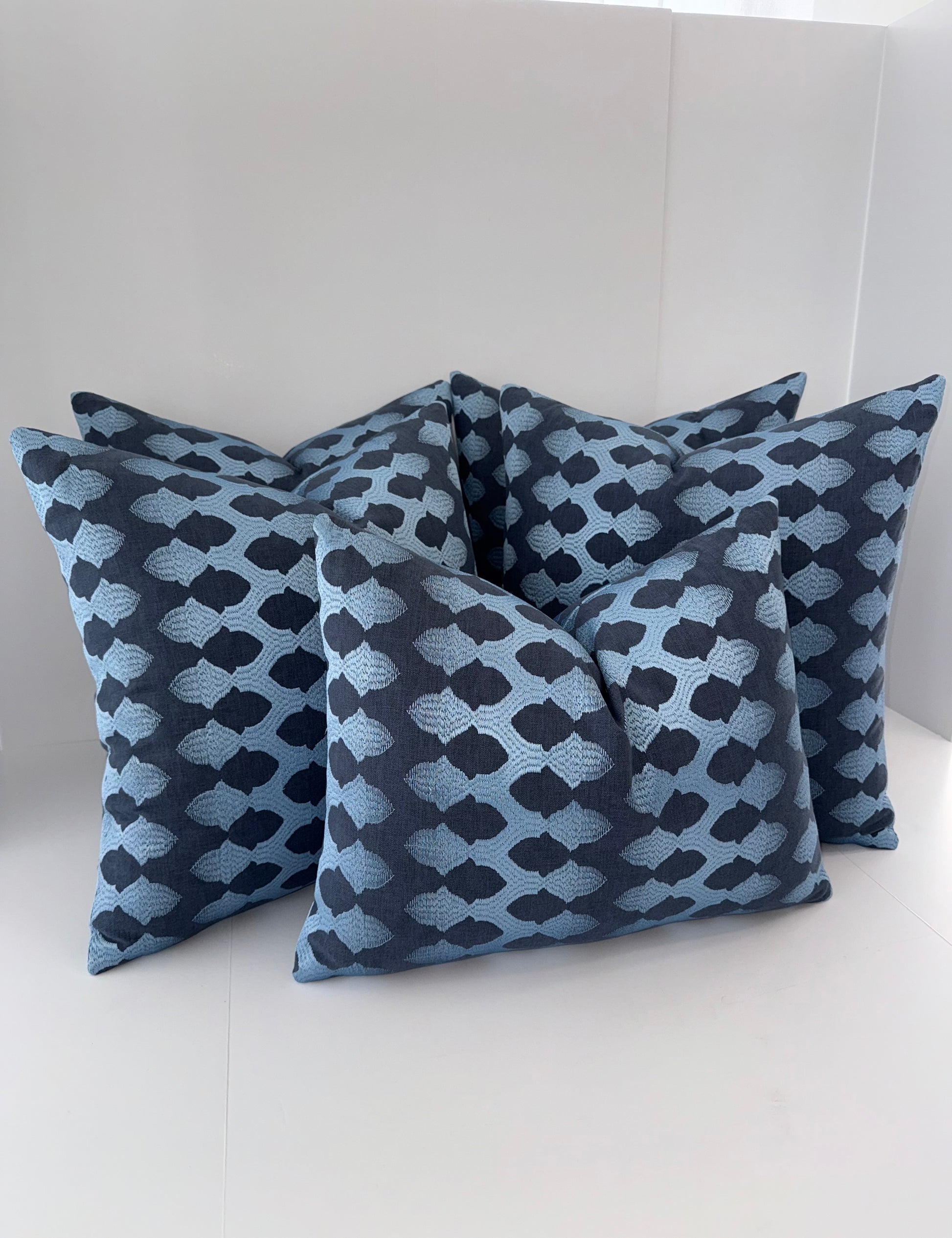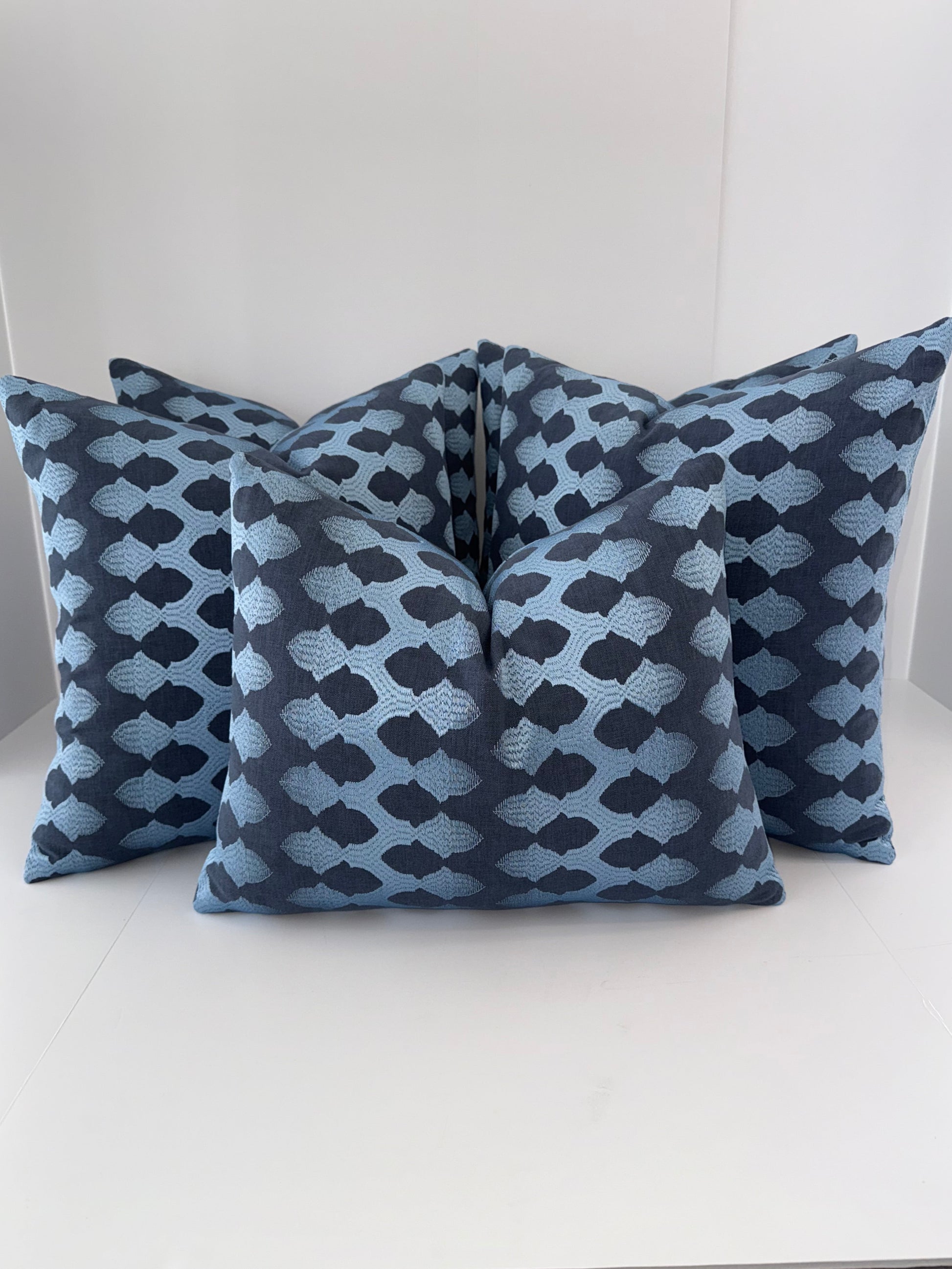 Four 20x20, One 16x20 Blue Linen Decorative Pillows