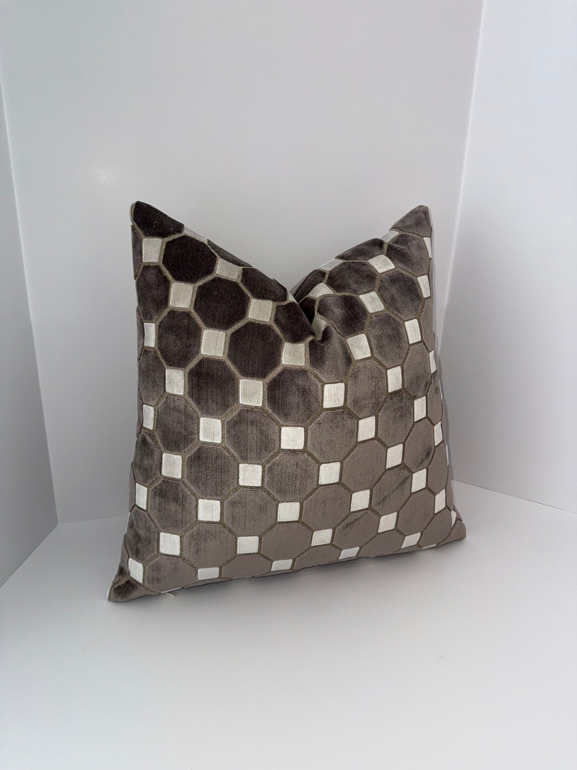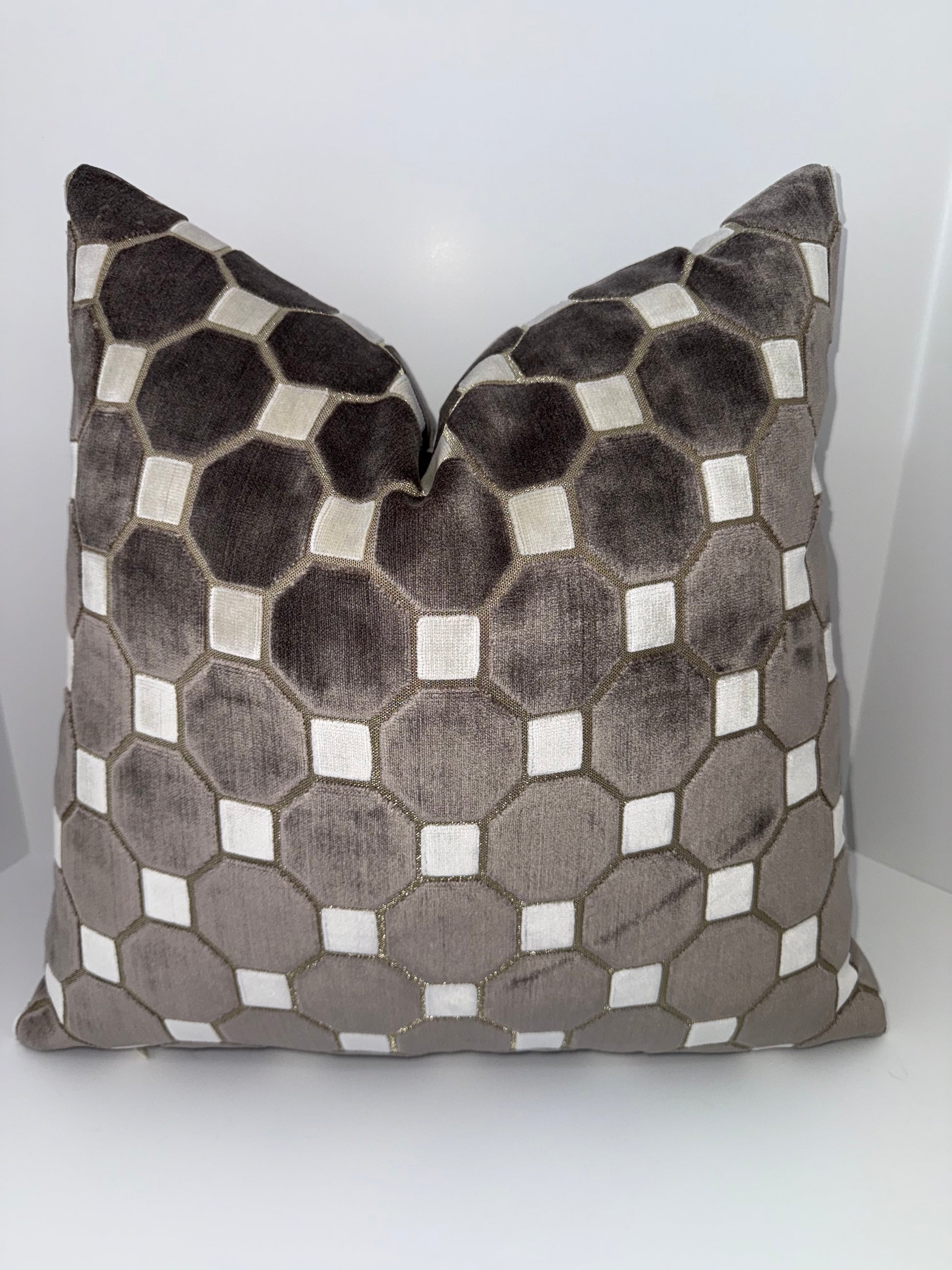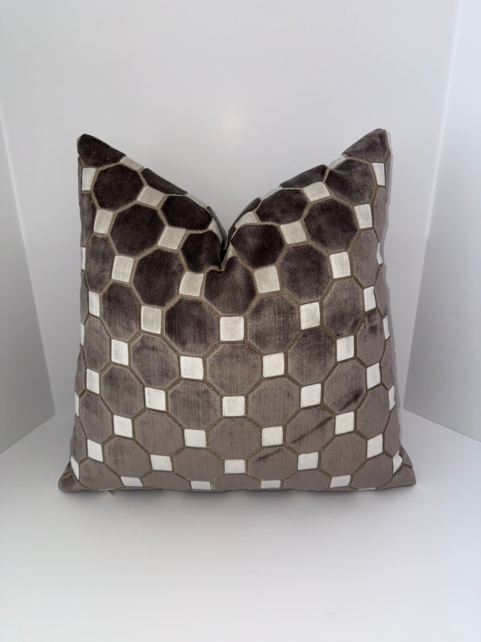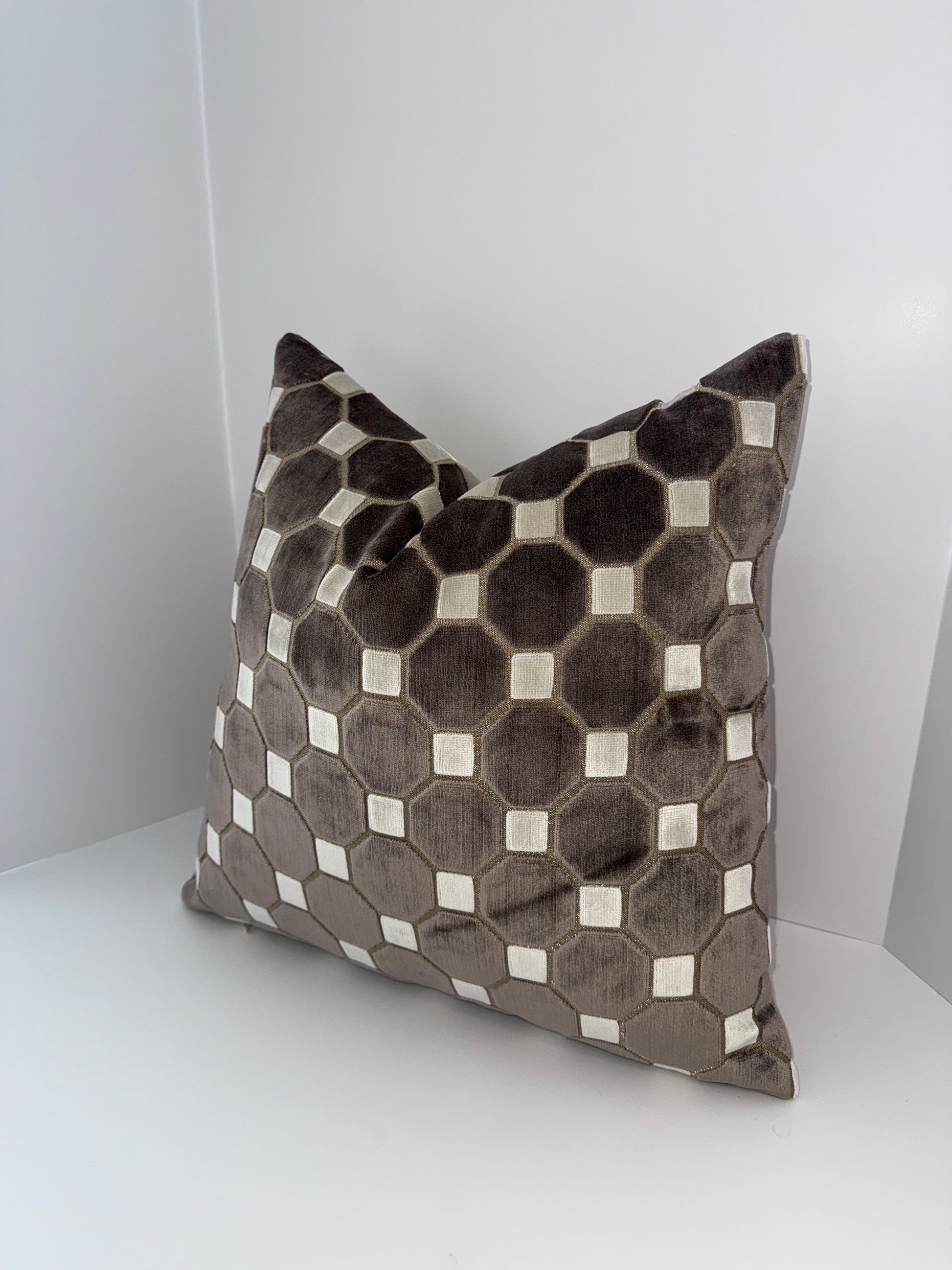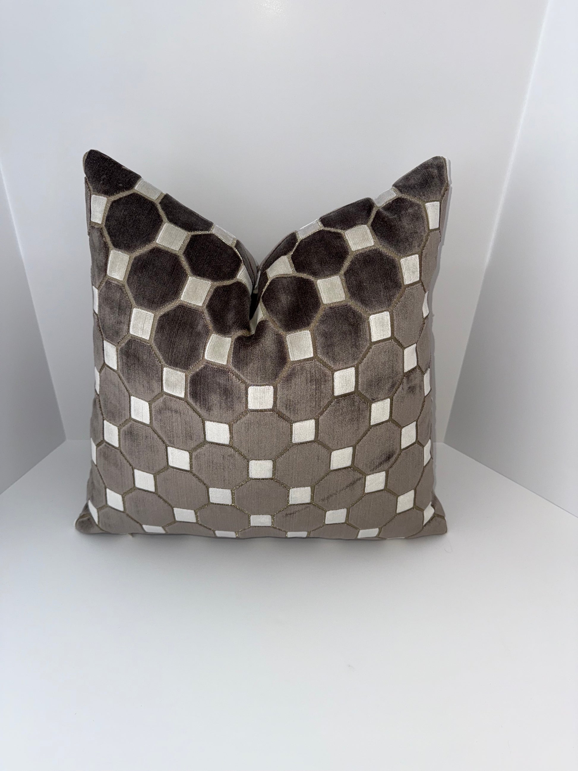 One 20x20 Brown and Beige Cut Velvet Decorative Pillow