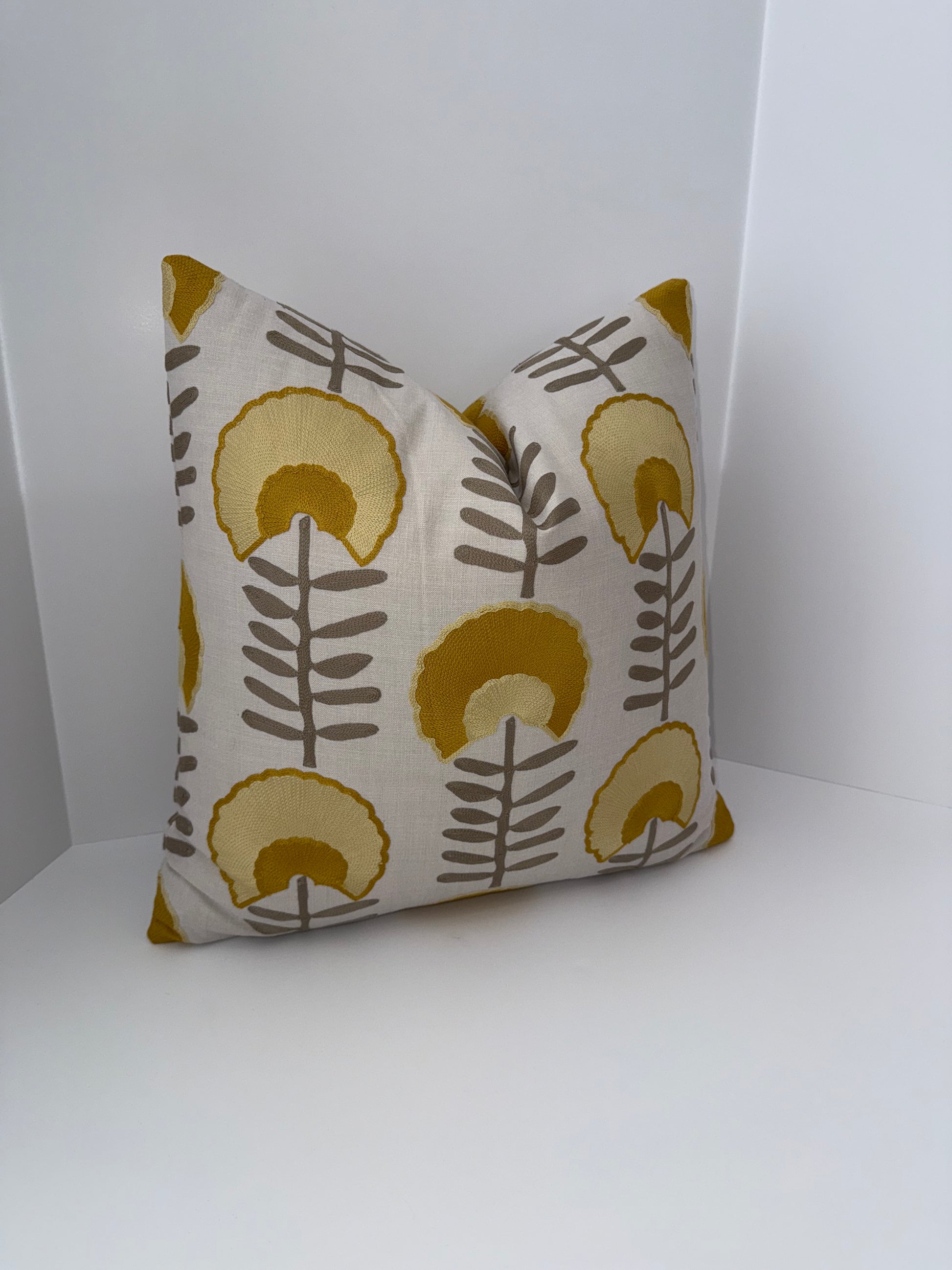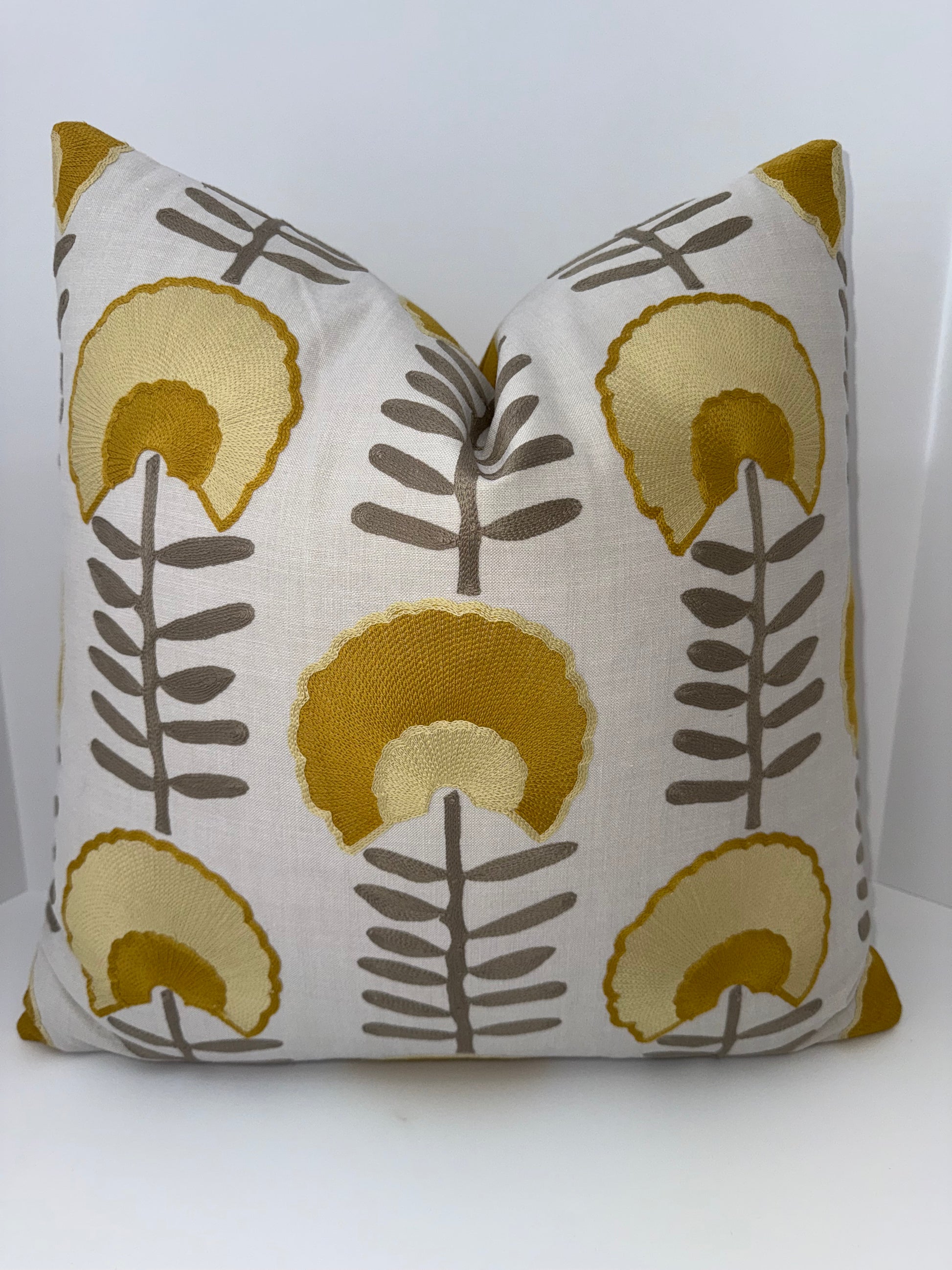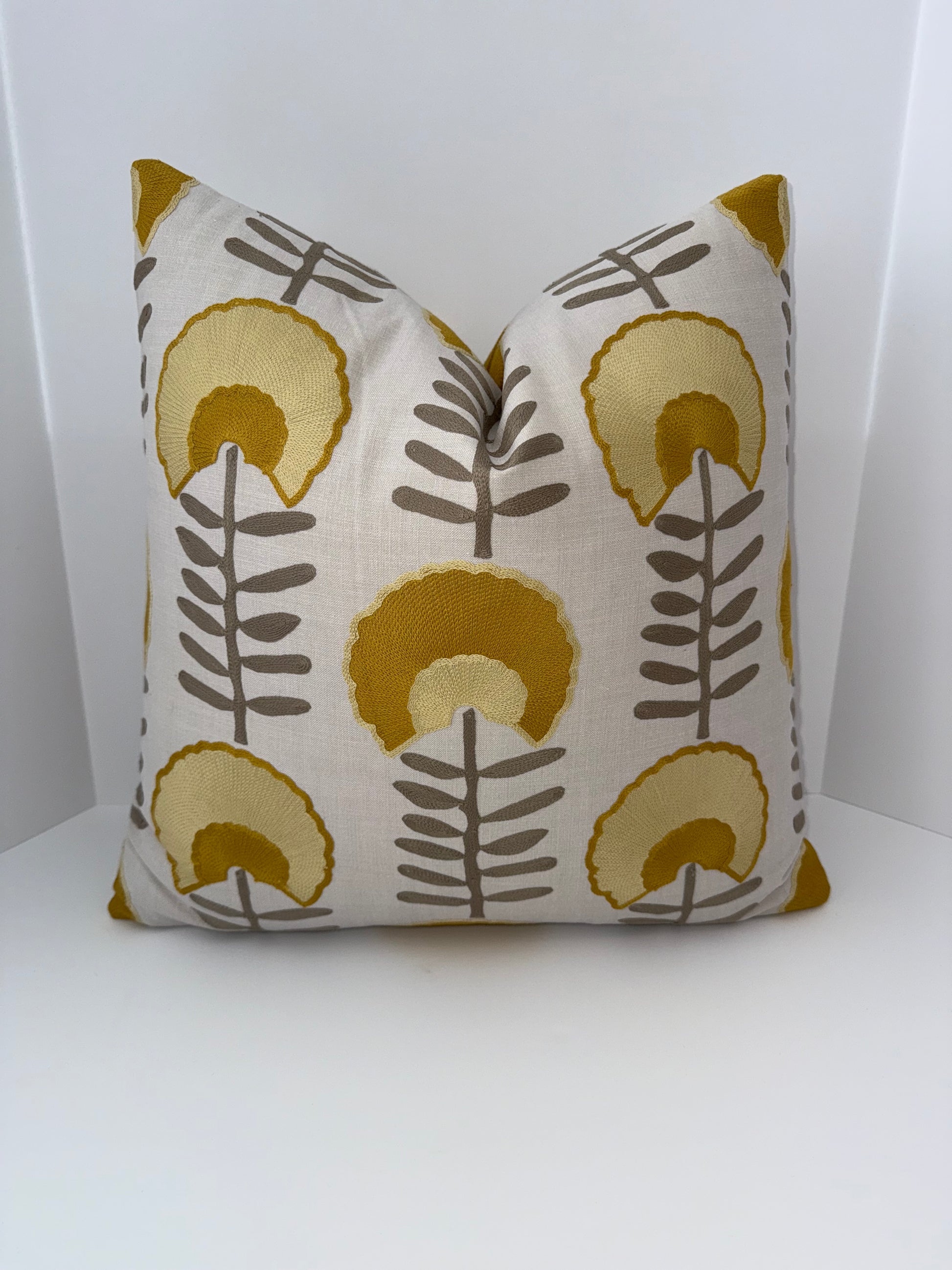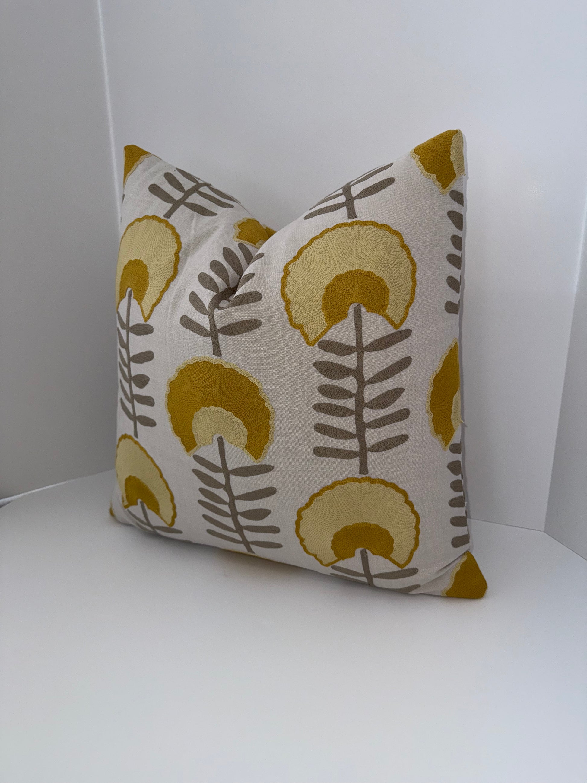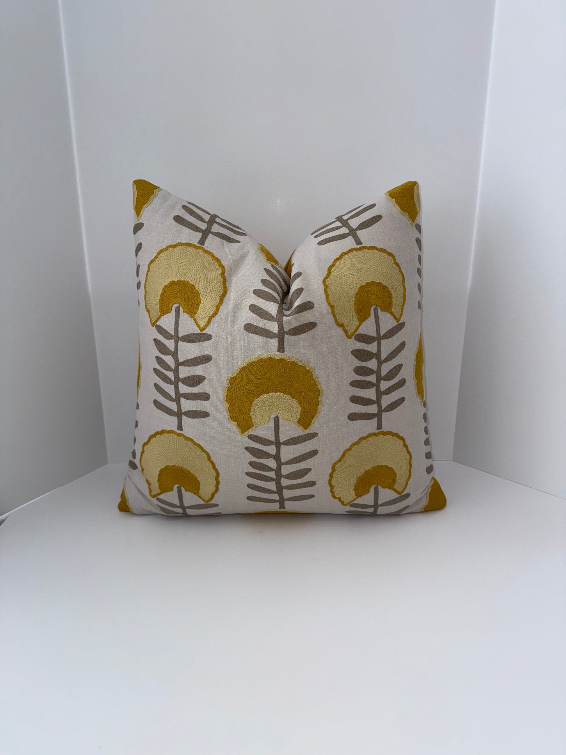 One 20x20 White, Yellow, and Gray Decorative Pillow