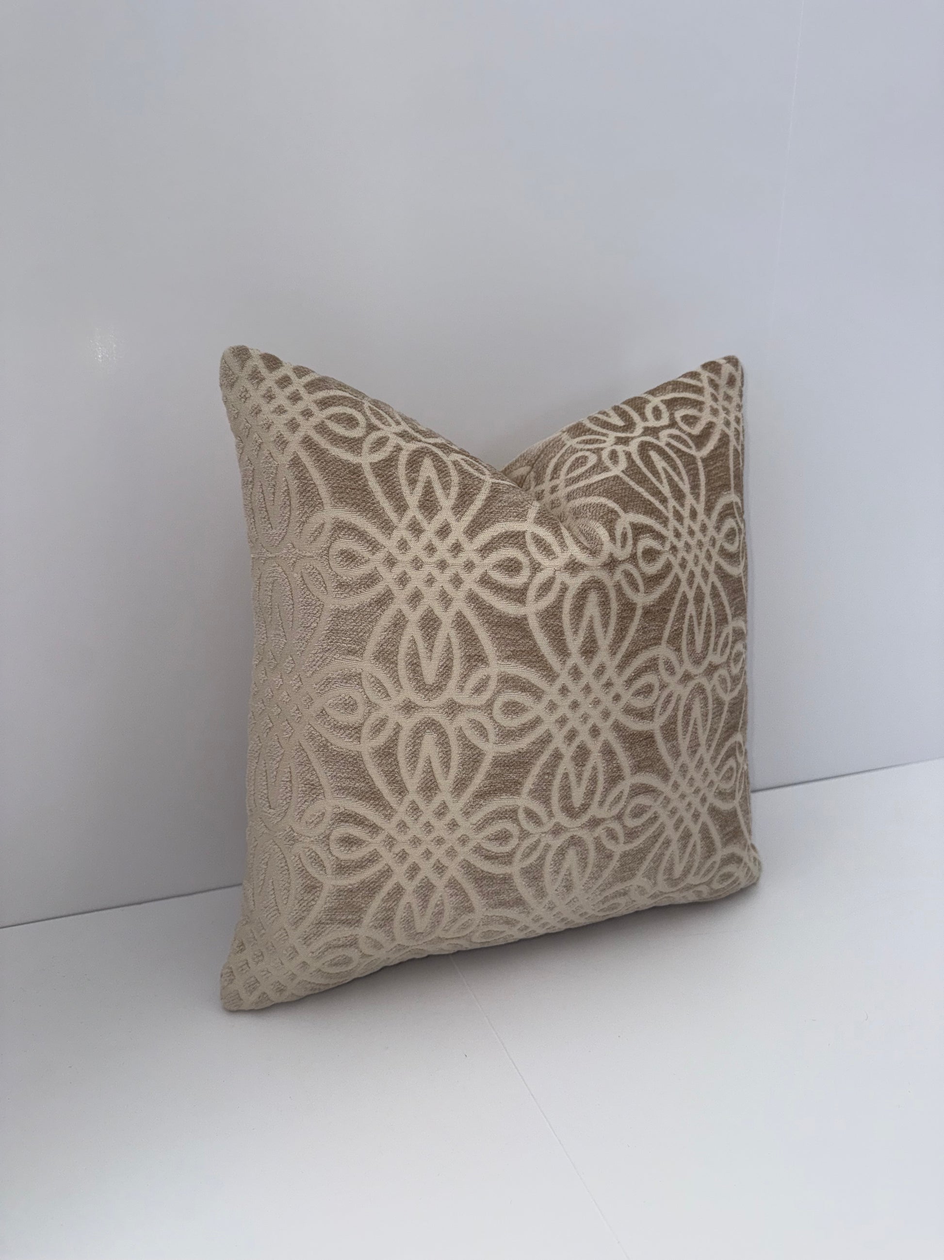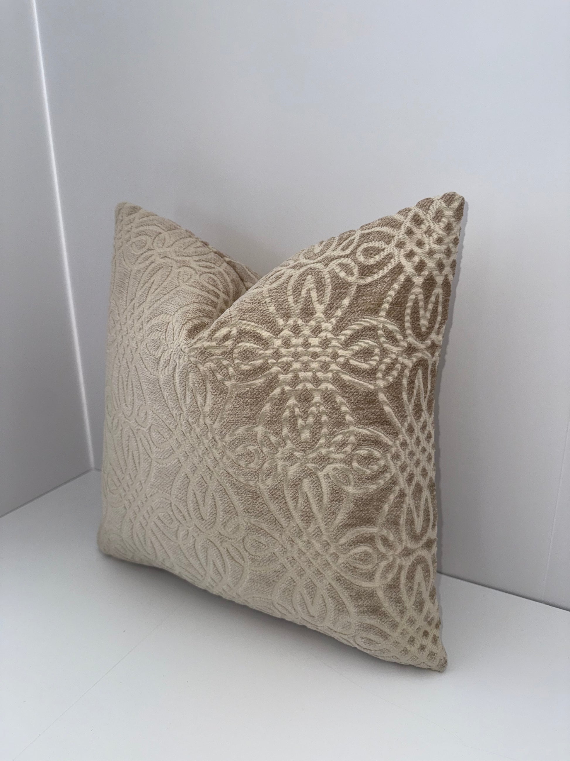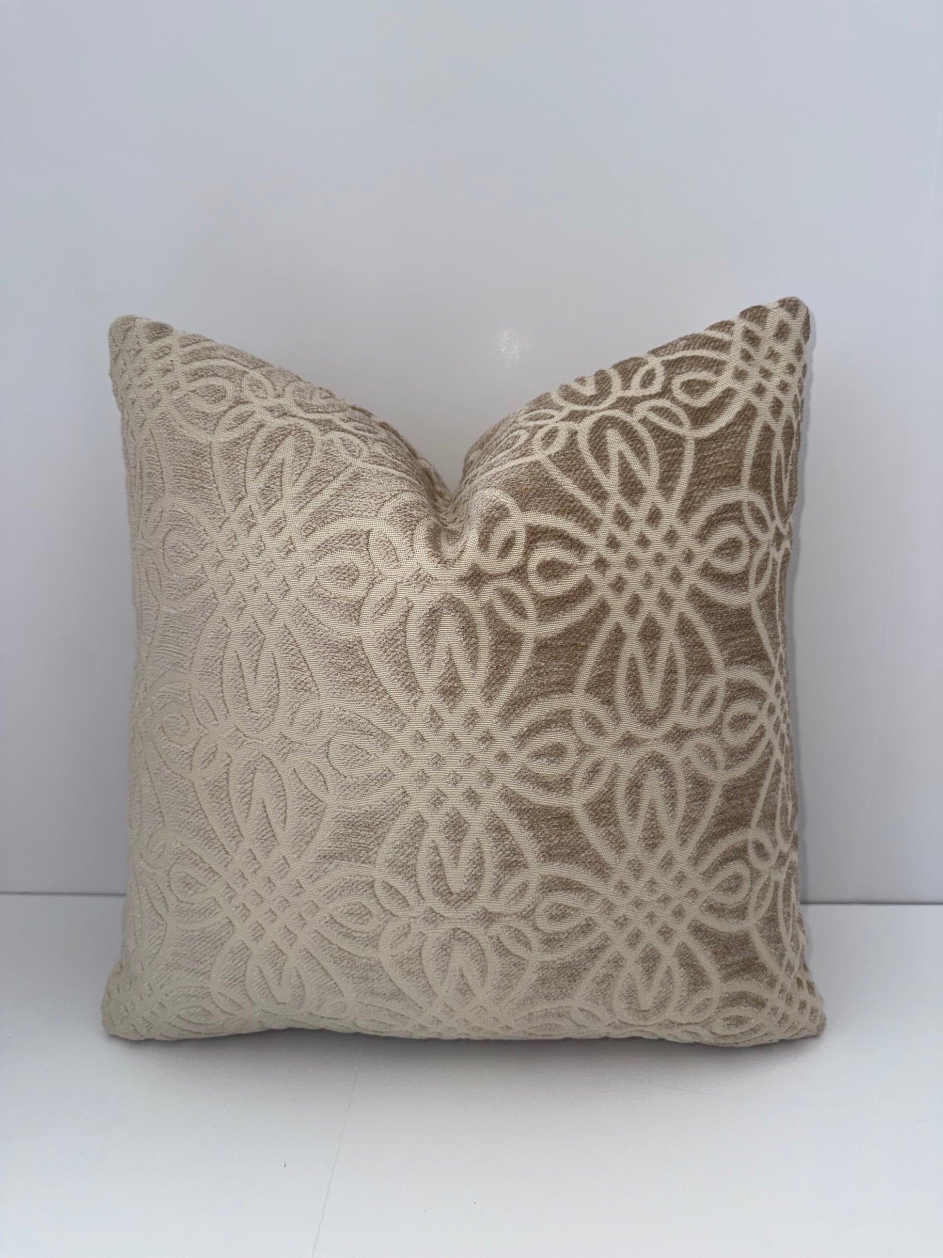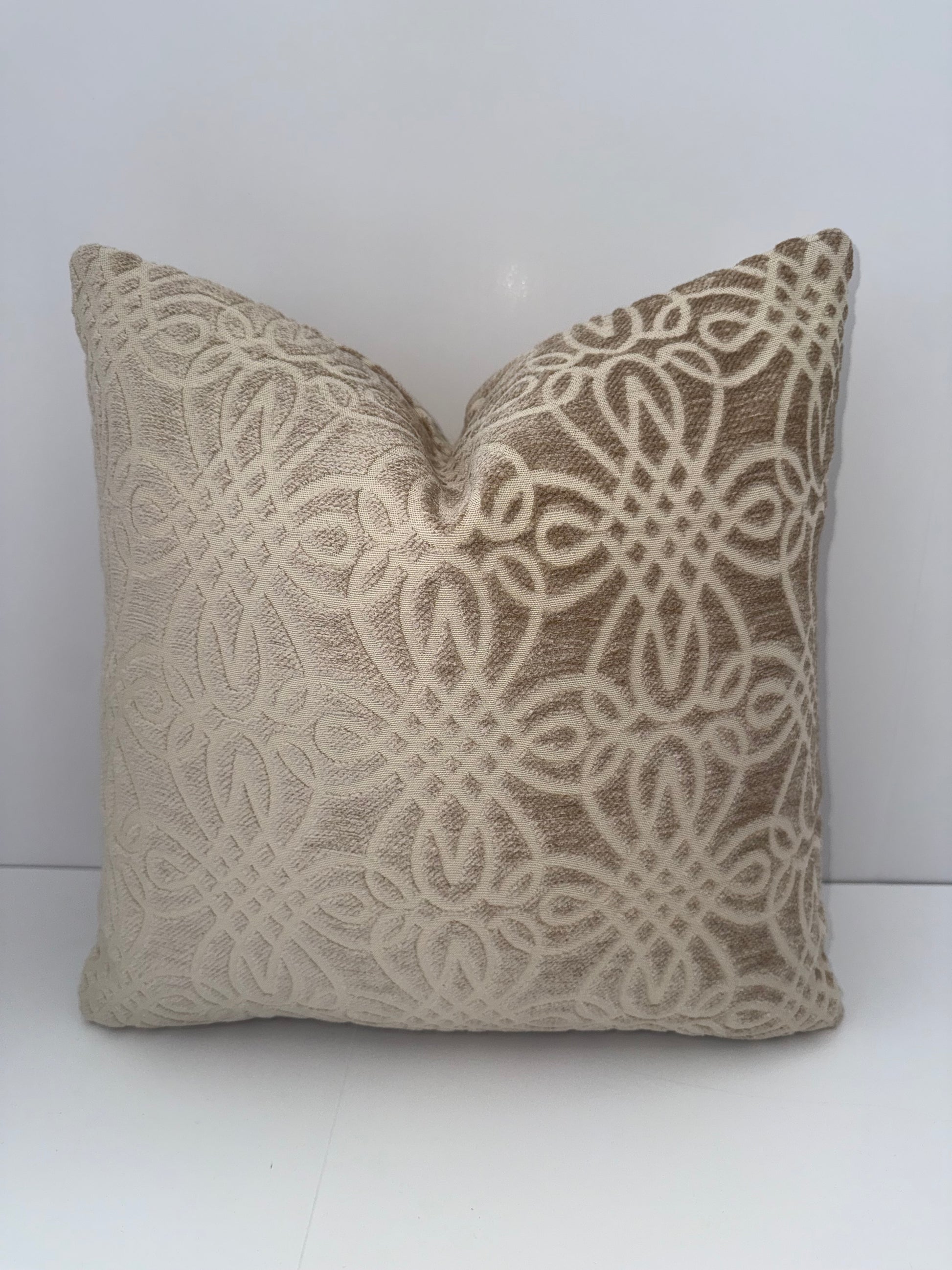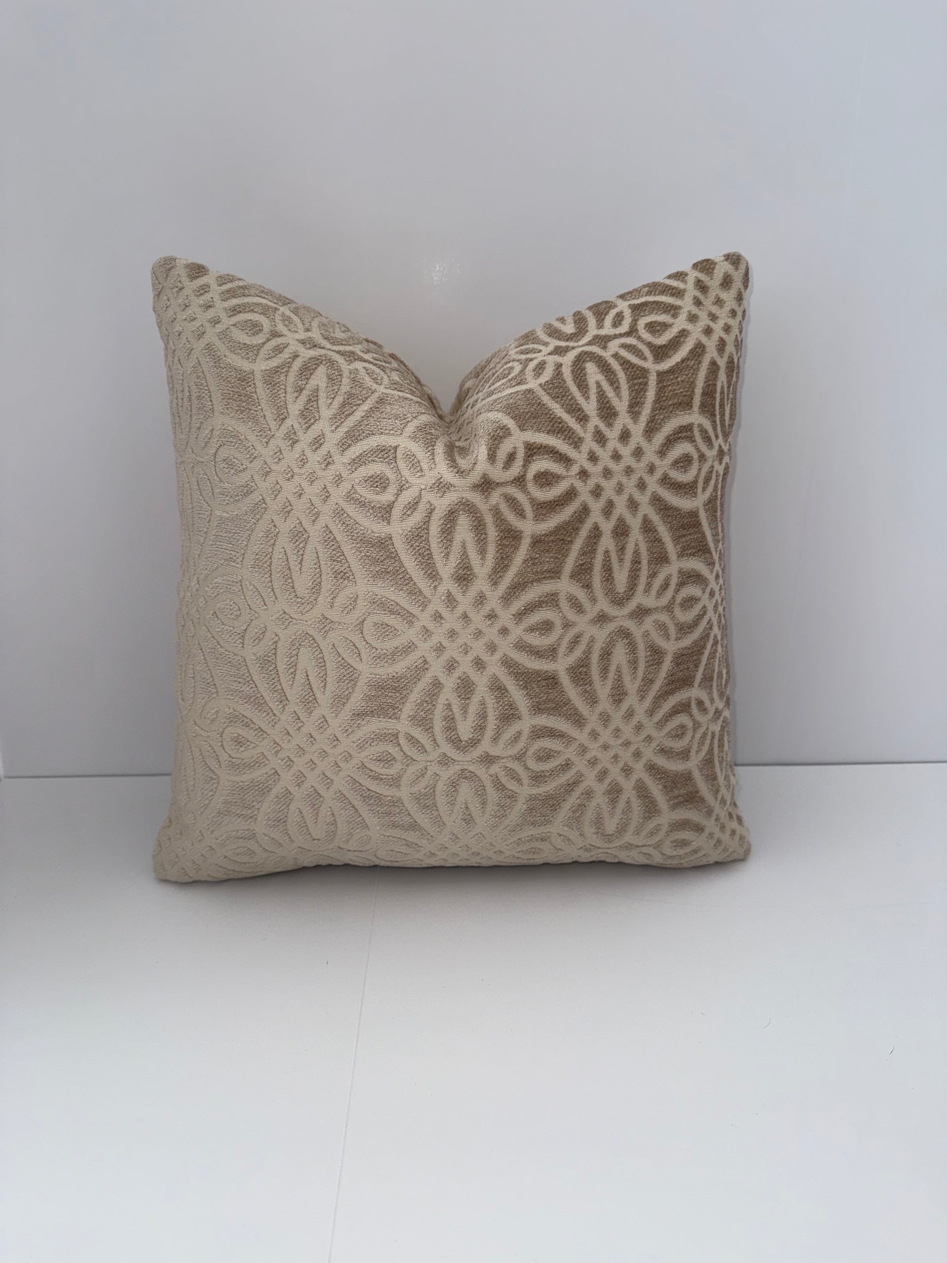 One 16x16 Beige Cut Velvet Decorative Pillow