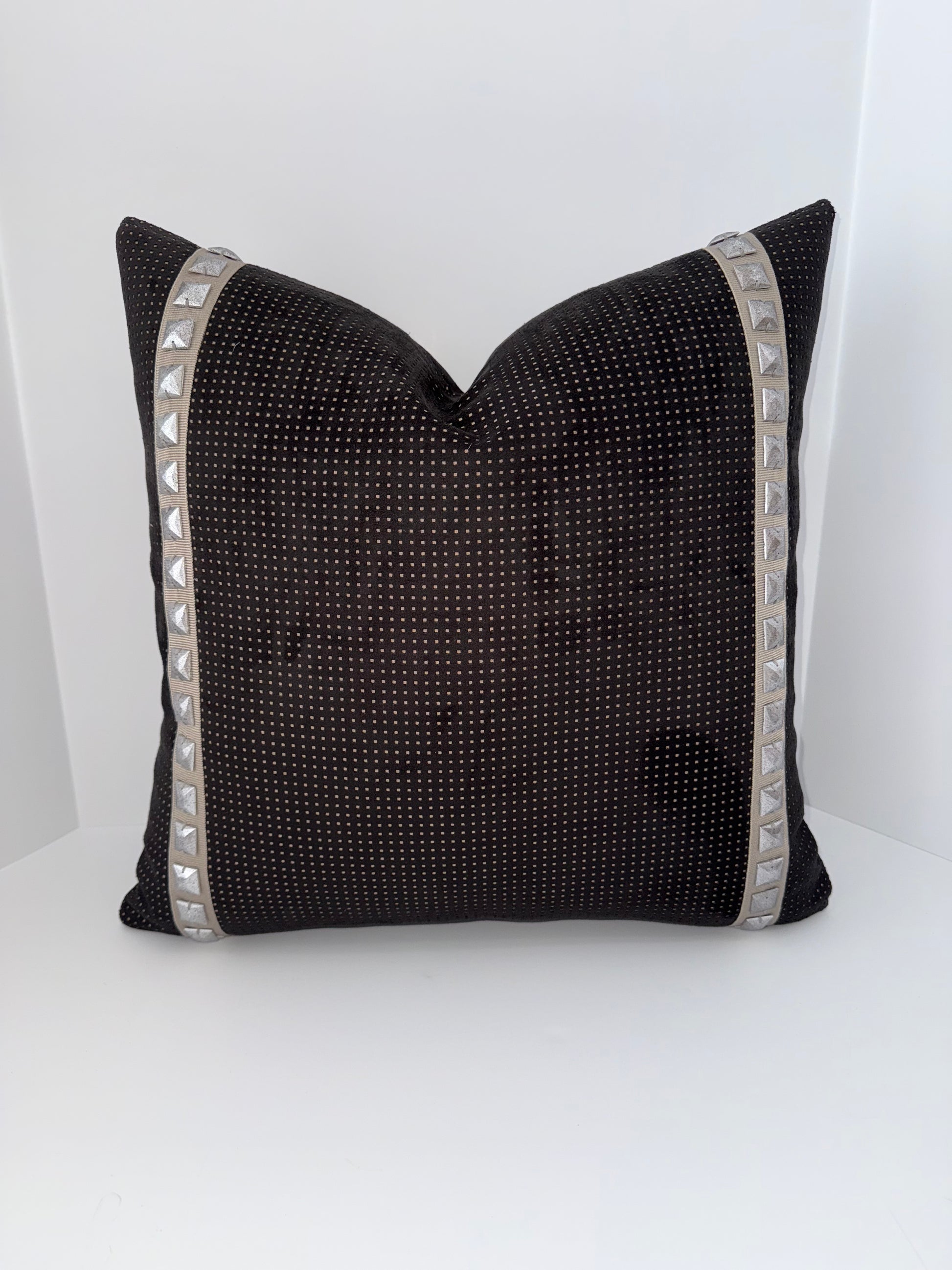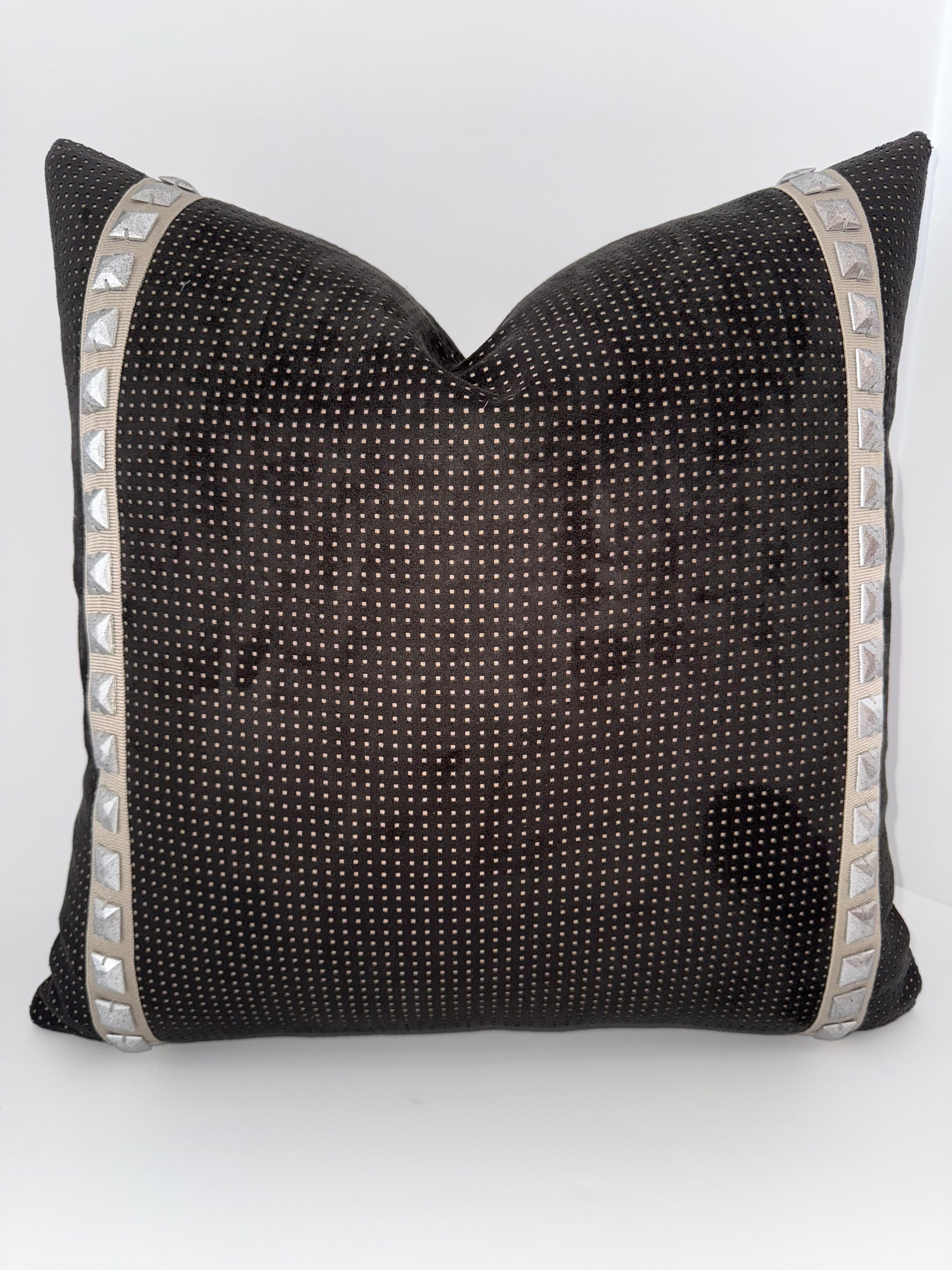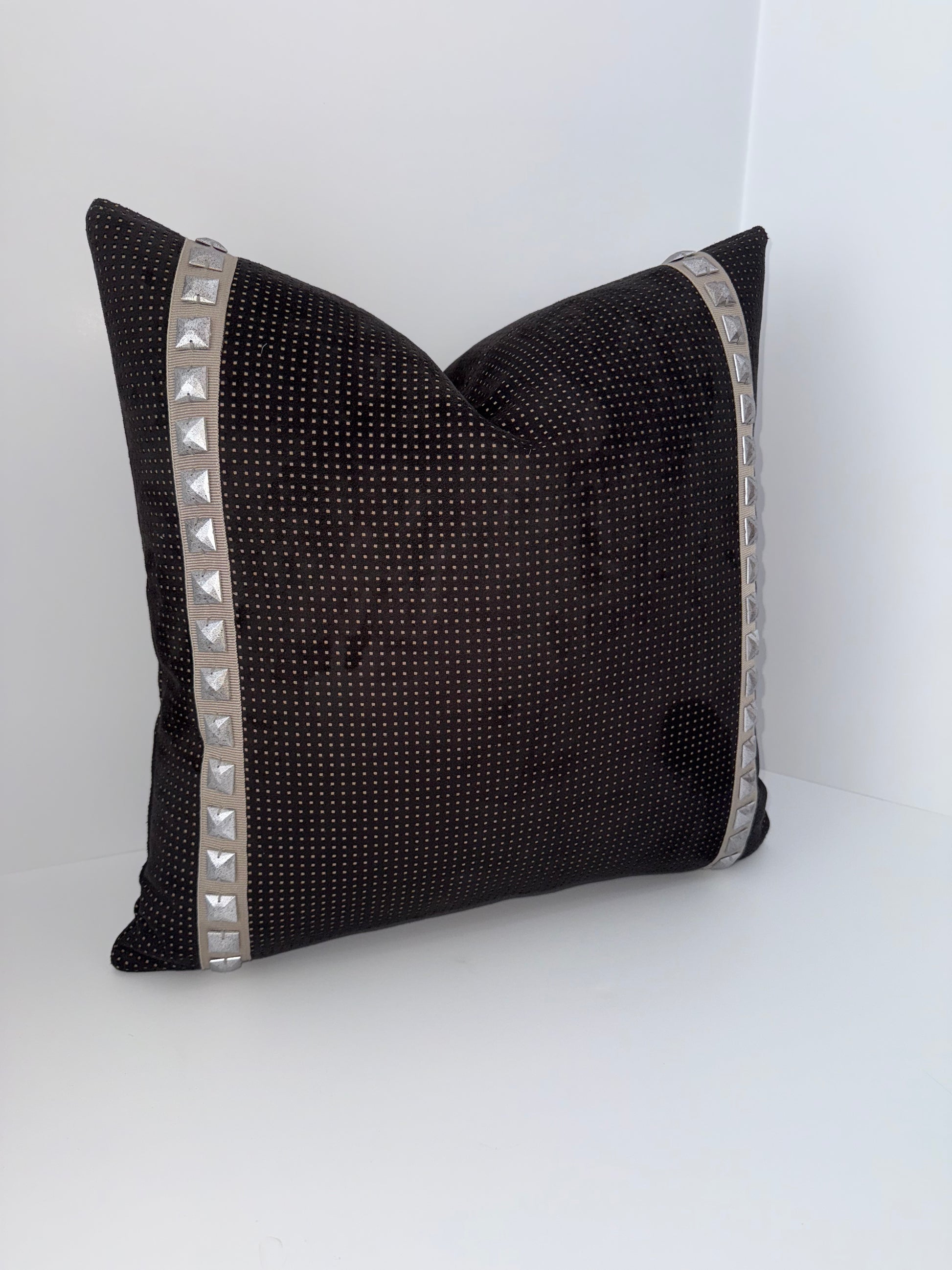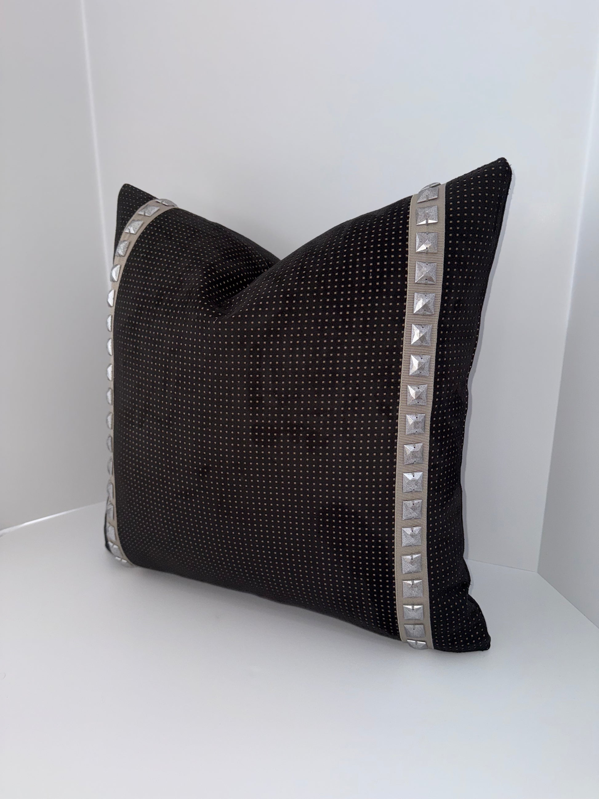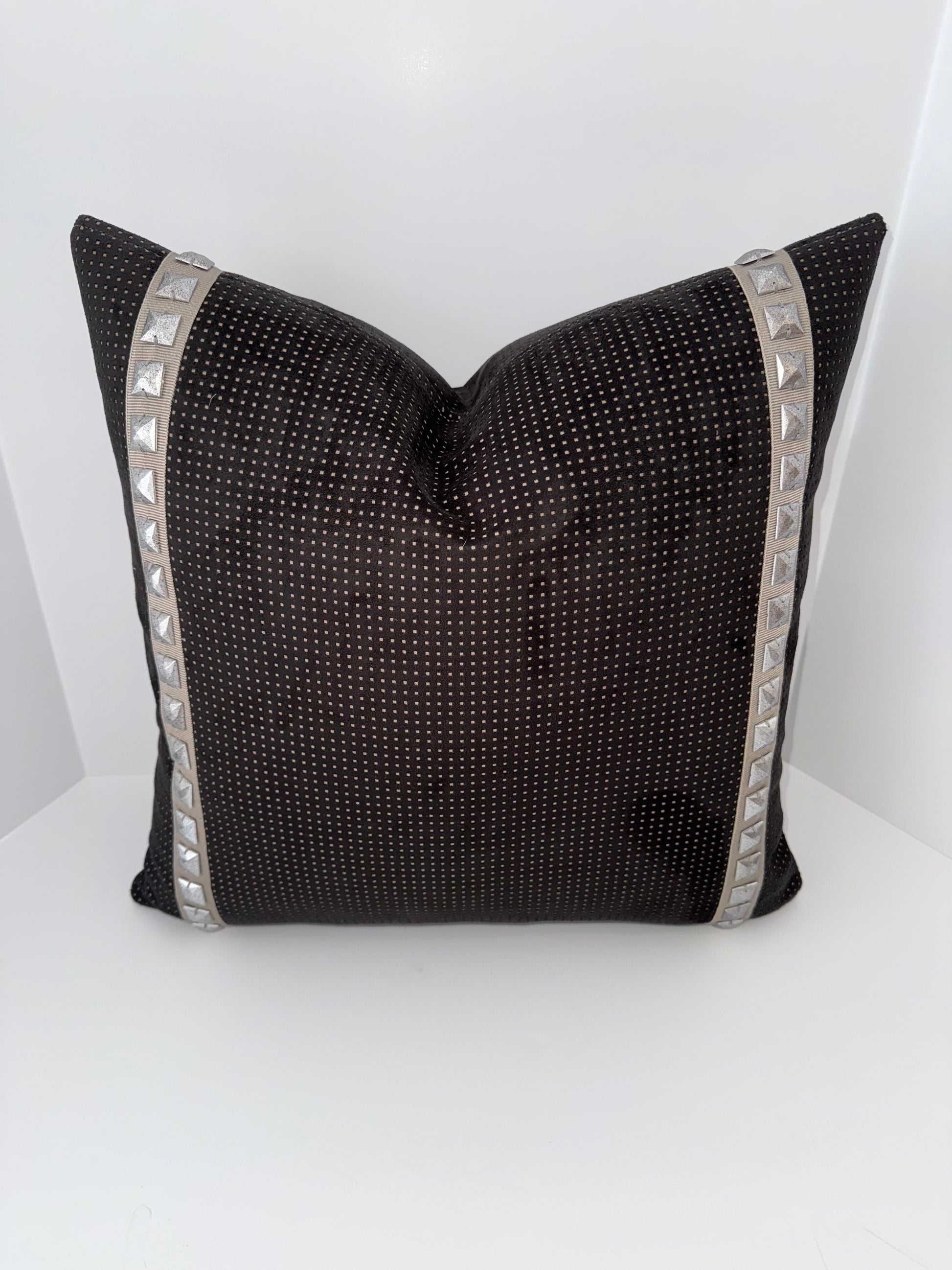 One 20x20 Black and Beige Suede Decorative Pillow with Silver Studs