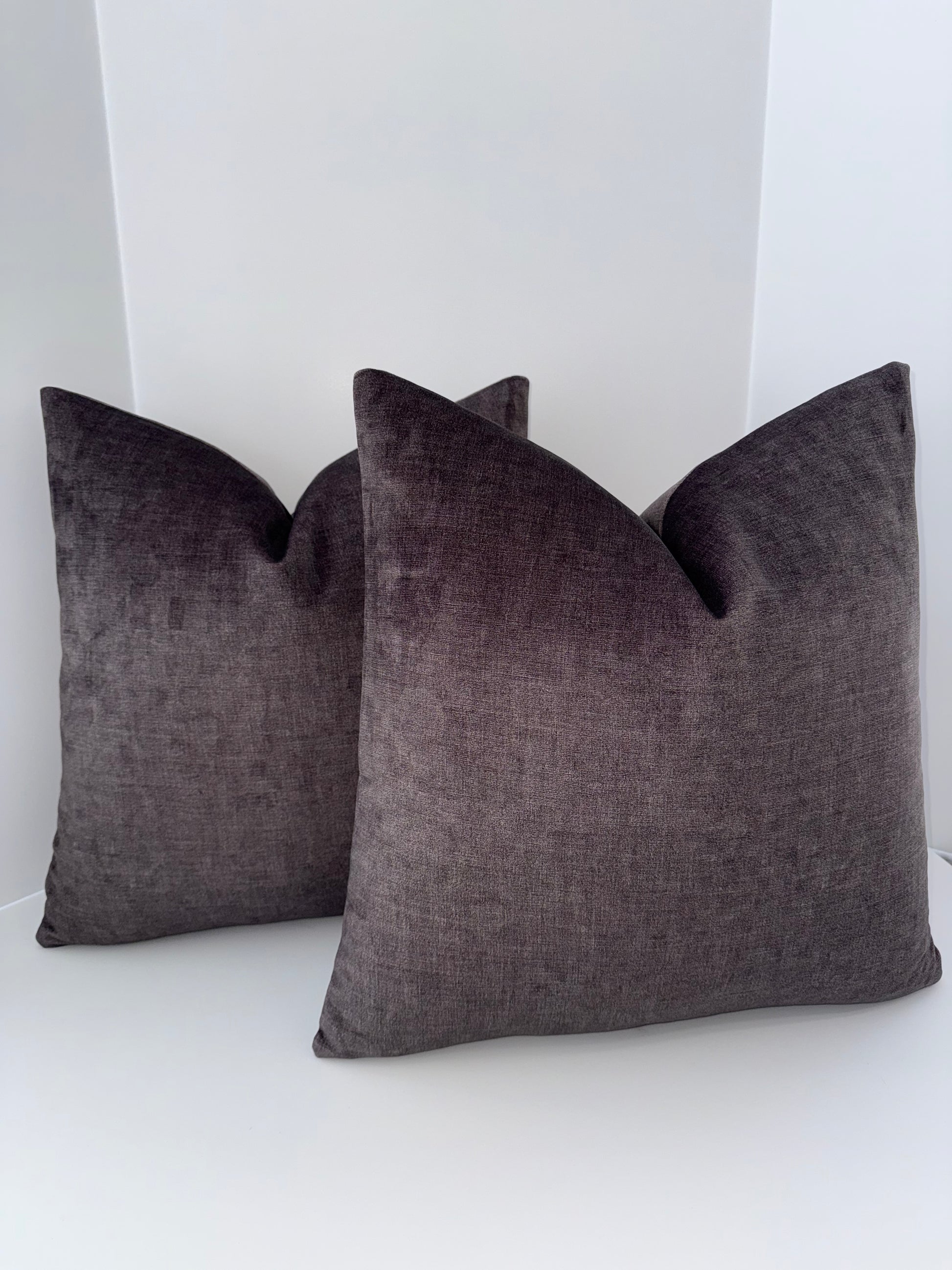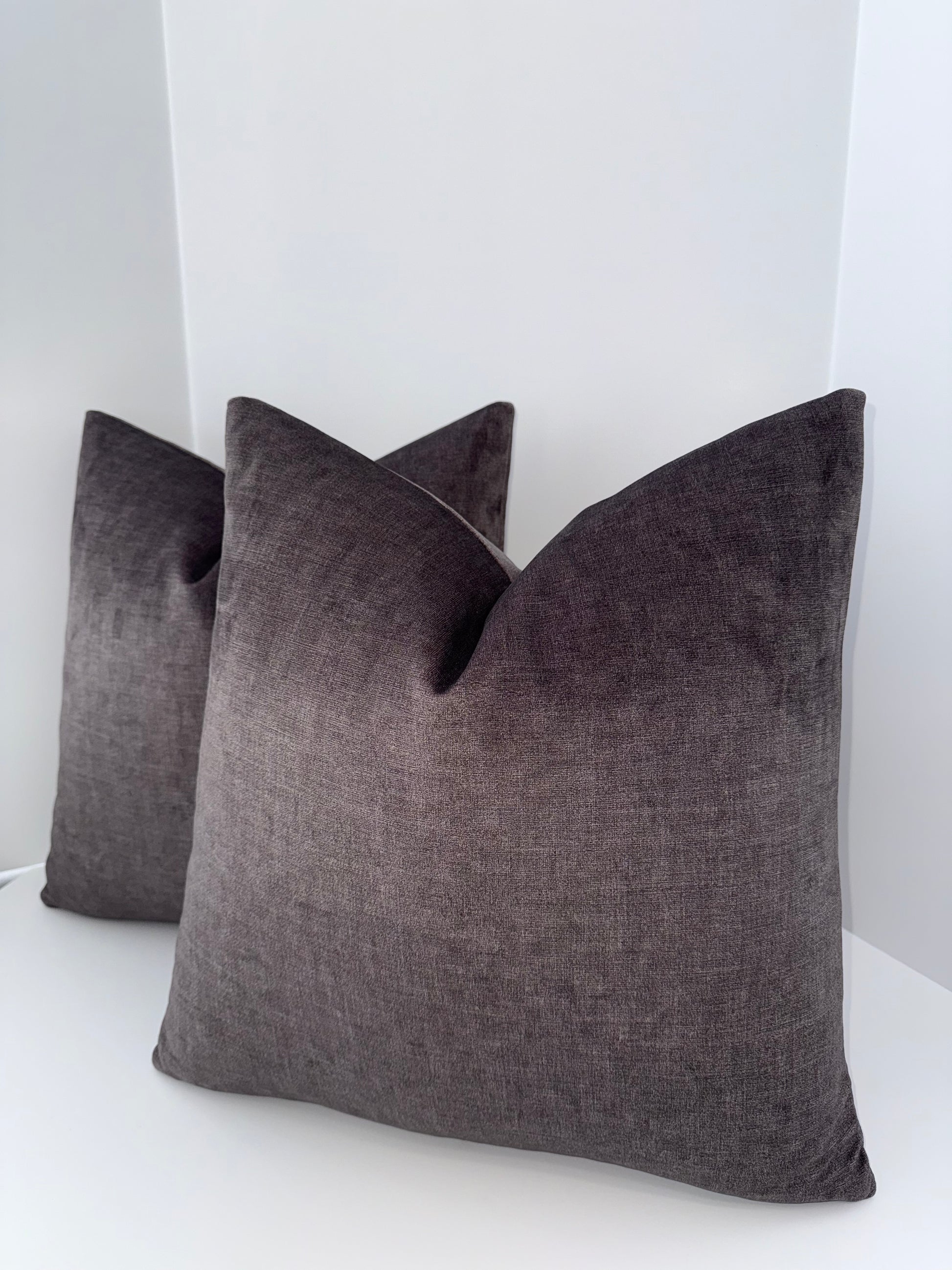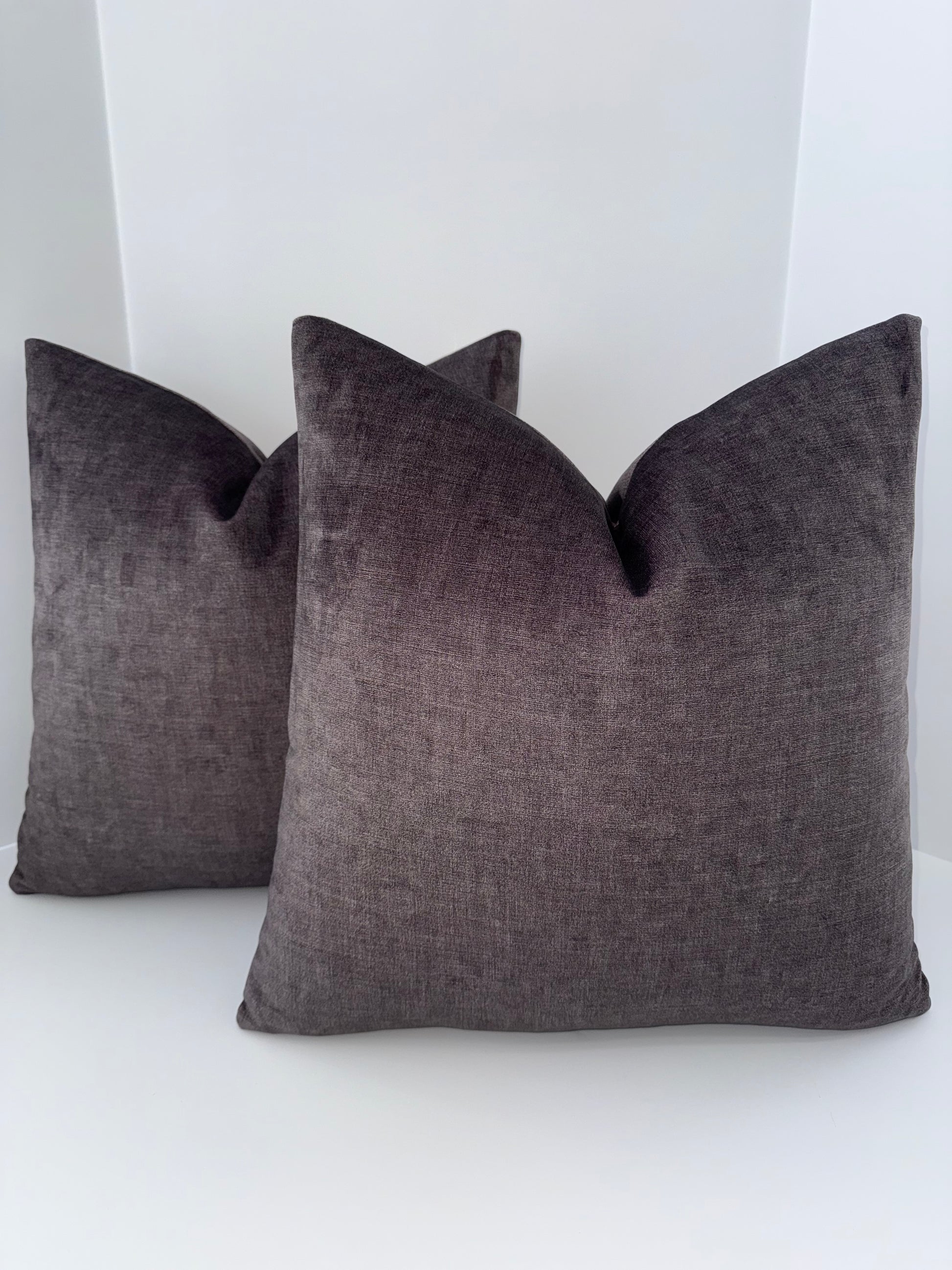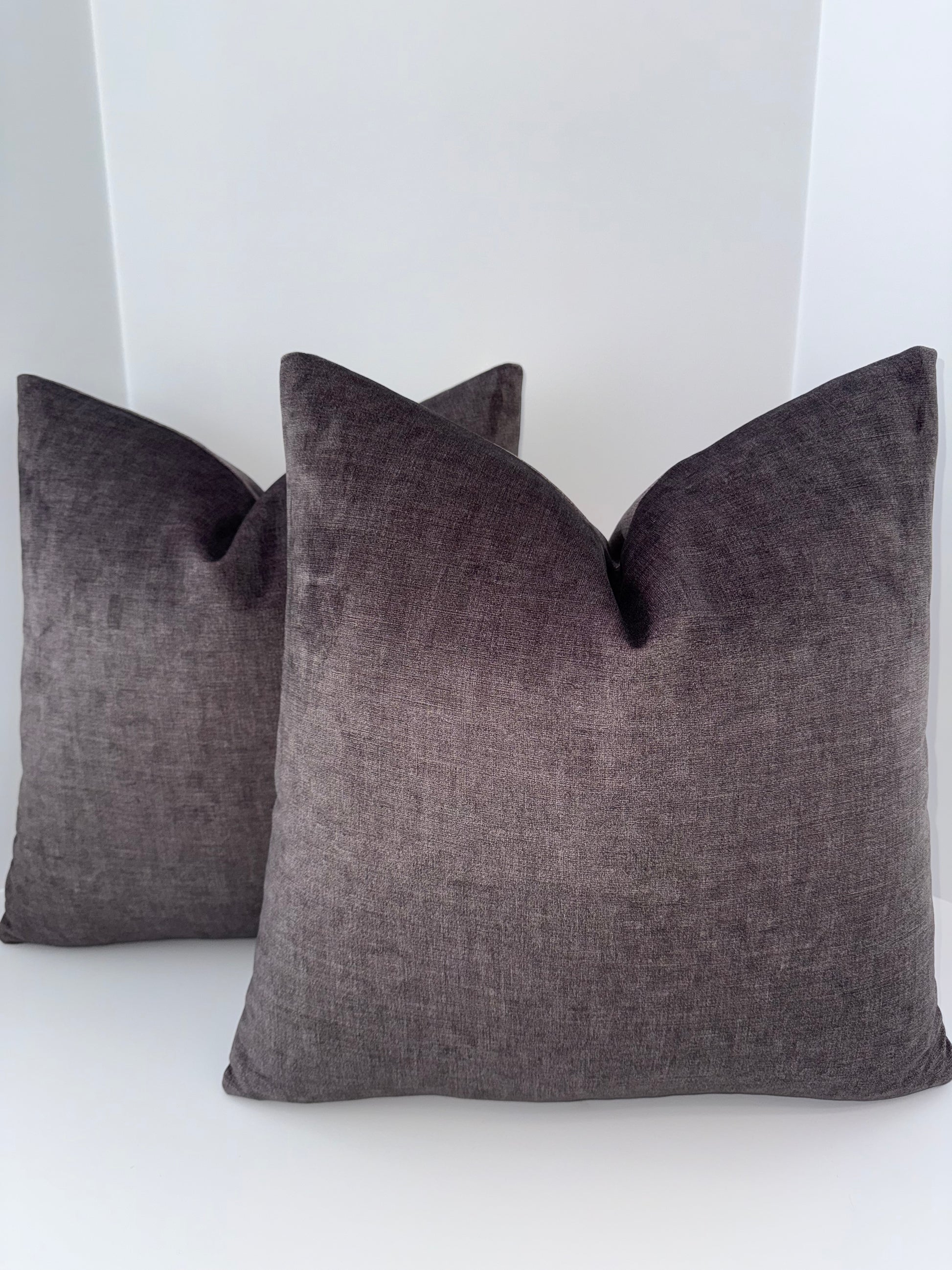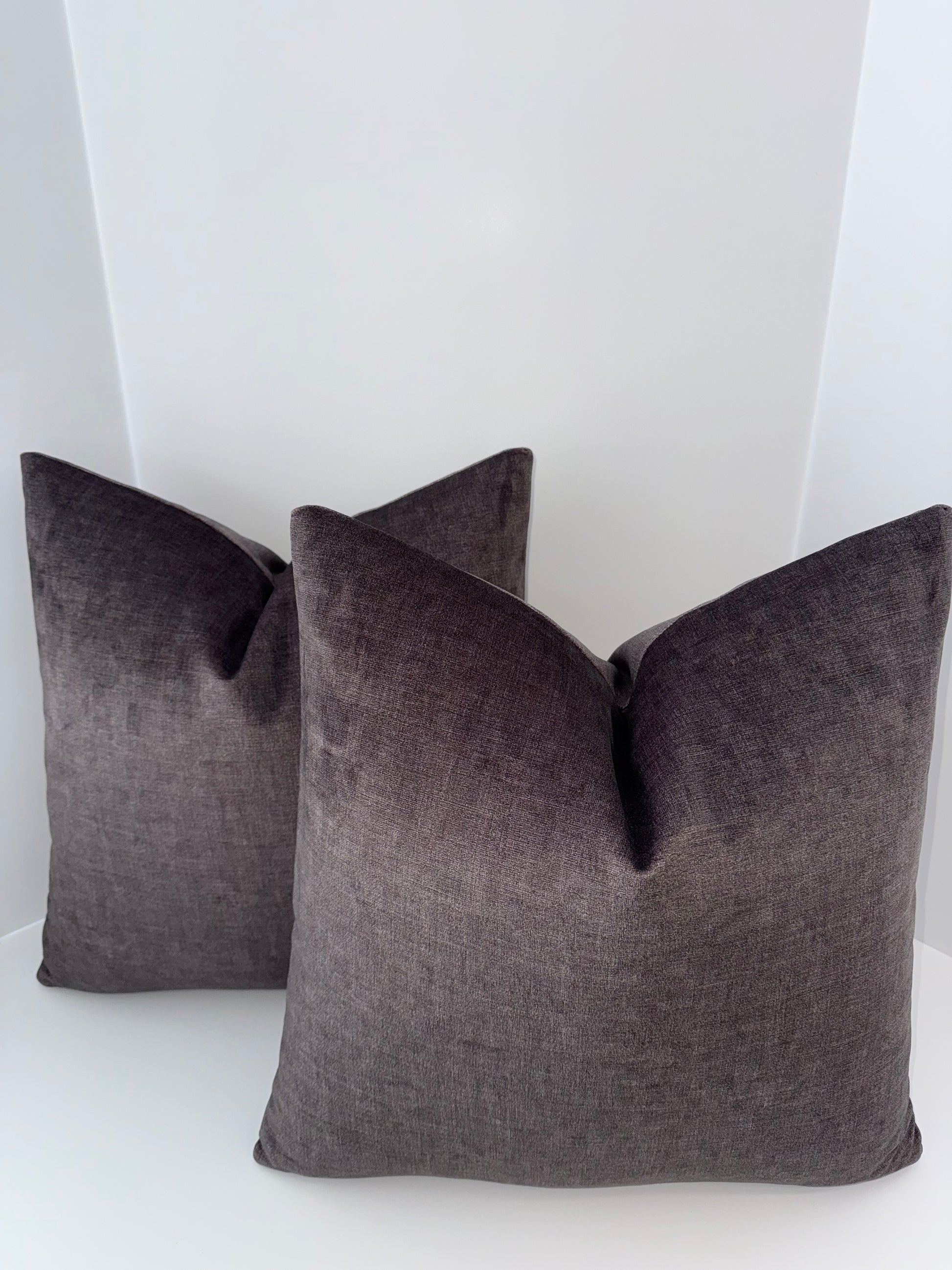 Two 20x20 Brown Silken Velvet Decorative Pillows
